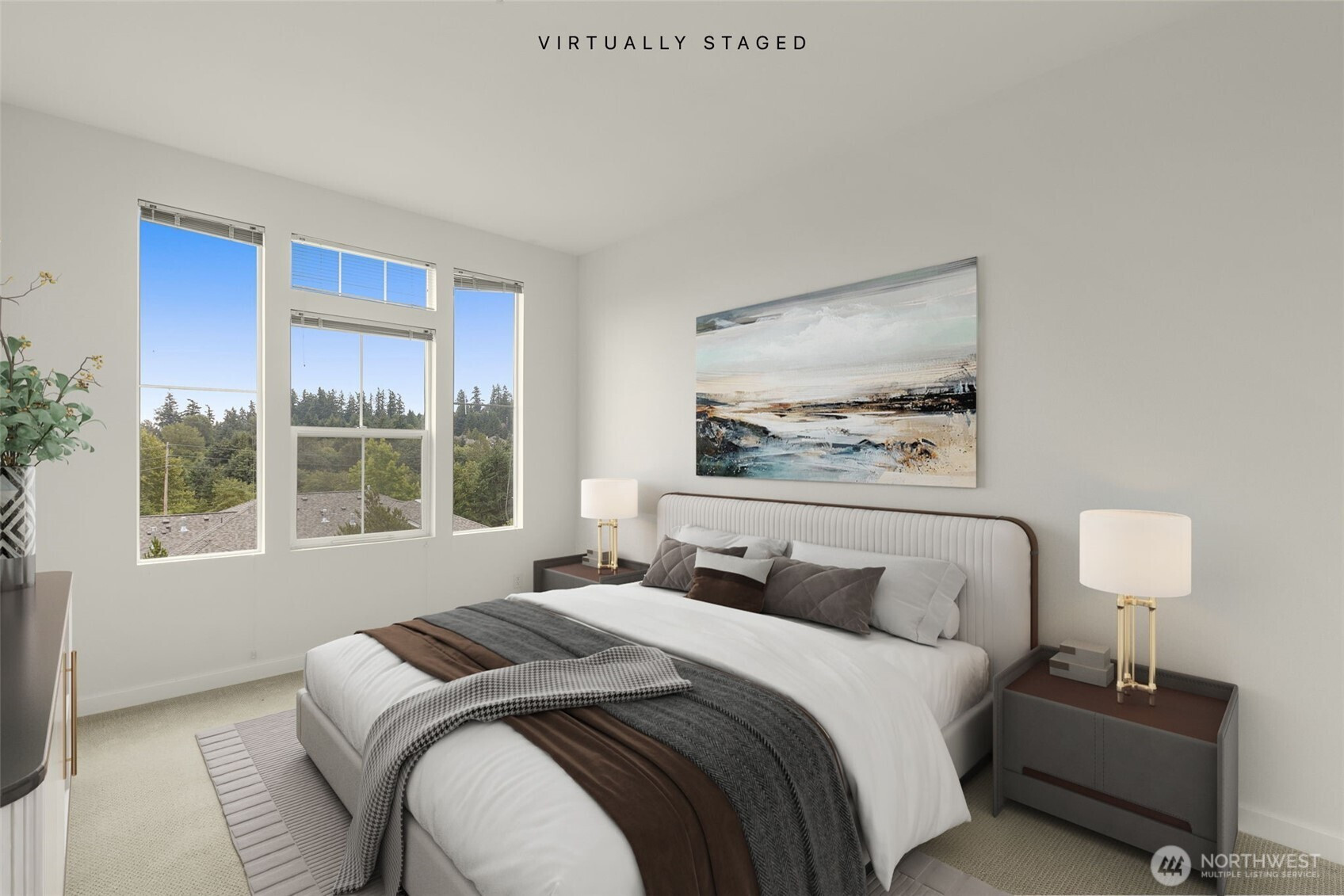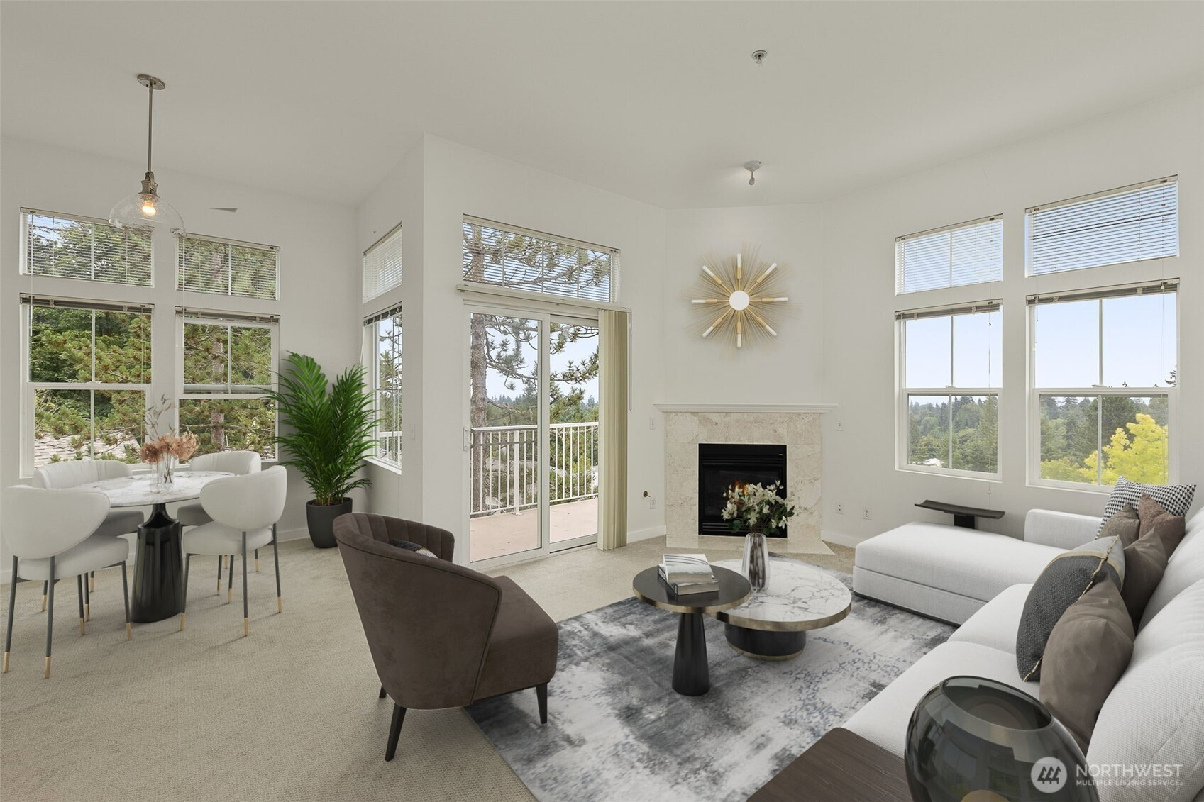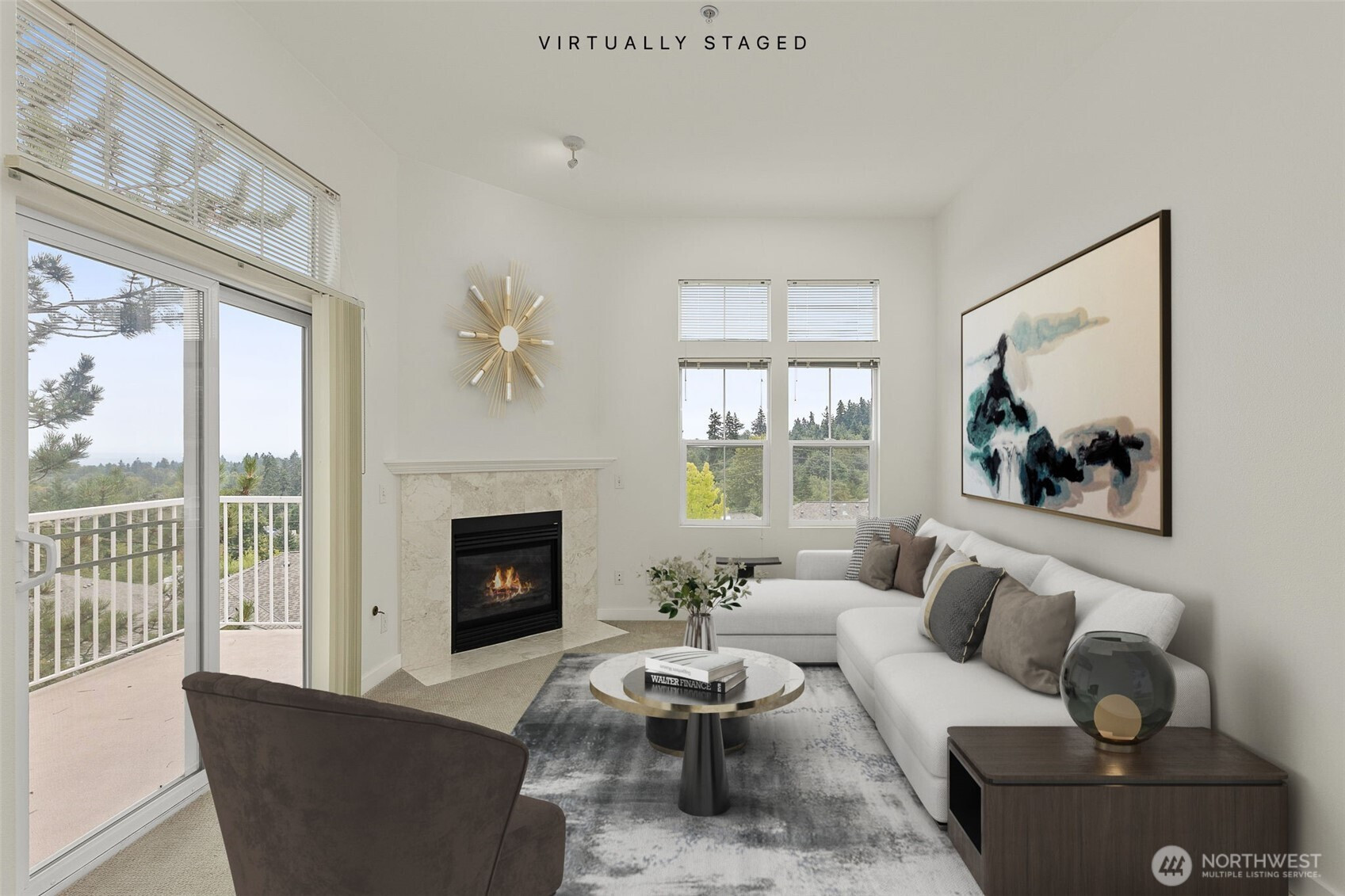 Unique top-floor corner residence with panoramic Cascade Mountain views in Bellevue’s desirable Lakemont neighborhood. Natural light fills every room, creating a bright and inviting living space. Recent community improvements include completed building envelope repairs funded through HOA reserves, along with a newer roof, updated piping, and a new hot water tank, offering buyers added confidence with no special assessment. The home features a two-level floor plan with an attached garage, fresh interior paint, a gas fireplace, newer carpet and baseboard trim, tall ~10-foot ceilings in the living and dining areas, and a primary suite with a large walk-in closet. The community is pet-friendly with no rental cap, offering exceptional flexibility for both homeowners and investors. A well-managed HOA keeps monthly dues lower than many comparable Eastside condo communities. Located in a highly desirable area with excellent schools, including Cougar Ridge Elementary, Cougar Mountain Middle School, and Issaquah High School, along with easy I-90 access, a short walk to Lewis Creek Park, and just minutes to Lakemont Village shops and dining.