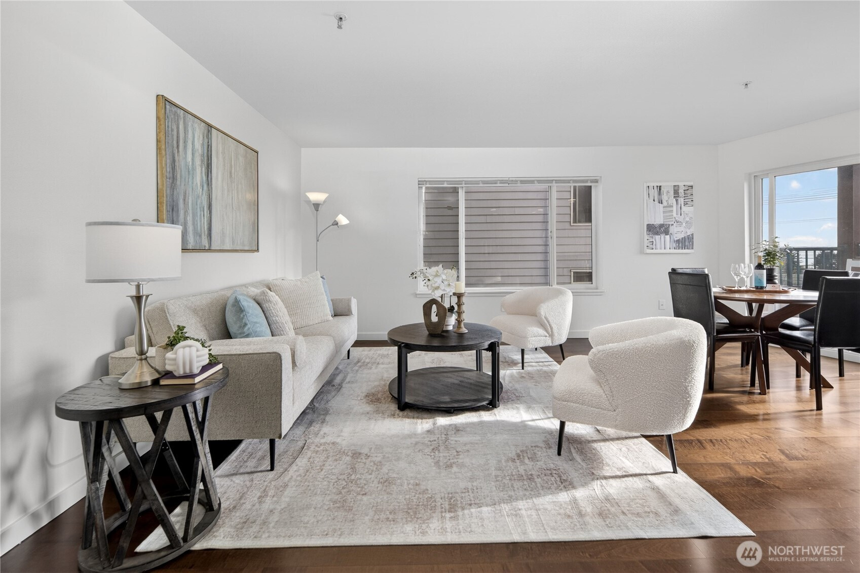 Bright, open-plan 2-bedroom, 2 bath condo in desirable Lower Queen Anne, your perfect Seattle retreat just minutes from downtown. New carpet and paint create a clean, inviting feel, while your private balcony delivers city, Sound, and mountain views. Secured garage parking and private storage unit. Conveniently located just minutes from Climate Pledge Arena and 0.1 miles from Centennial Hills Park, with easy access to open space, trails, and recreation. Quick commute to Amazon & Google, South Lake Union, Seattle Center, Myrtle Edwards waterfront, cafés, restaurants, stores, transit, and all Queen Anne has to offer. Ideal for professionals craving comfort, convenience, and that unbeatable Seattle lifestyle. No Rental cap!