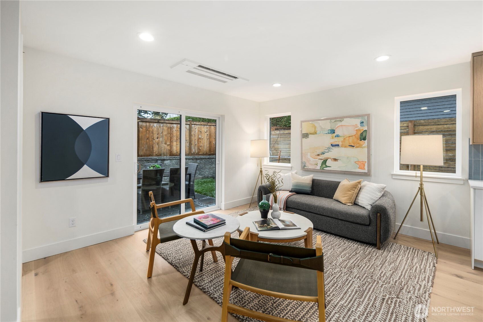 Welcome to this new collection of refined stand alone residences situated in the heart of this quiet Maple Leaf community featuring urban convenience and neighborhood charm. Easy walk to local cafe's, pubs, restaurants, parks and transit. Cool, modern 2 story home blending thoughtful design with fine craftsmanship. Features include light-open concept living with high ceilings, beautiful hardwood floors, quartz countertops and generous walls of tile. Main floor includes amazing kitchen including island with bar. The direct access from indoor to outdoor living is perfect for entertaining. Additional flex space provides room for home office or guests. Second floor includes vaulted ceilings, beautiful Primary suite with walk in closet and large shower with modern tiles. Additional guest suite up with adjoining full bath. Upper floor utility room for added convenience. Heating and cooling served by energy efficient mini splits. Private parking includes EV charging port.