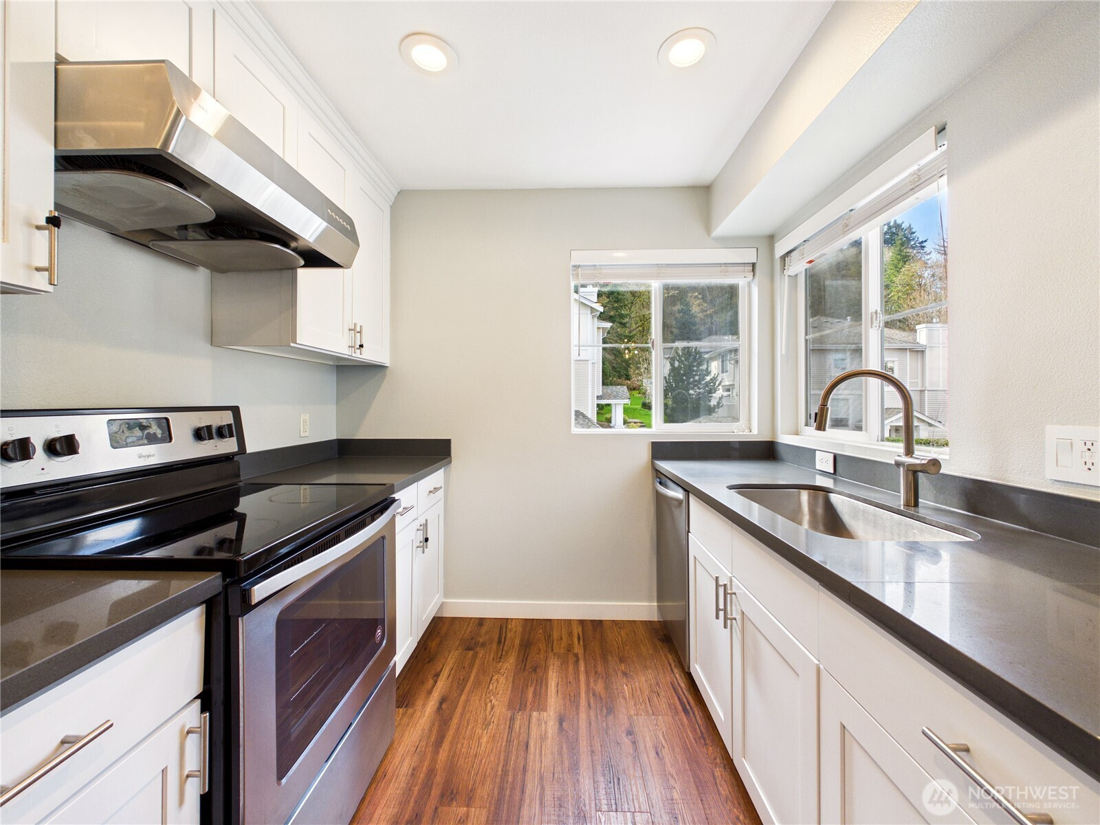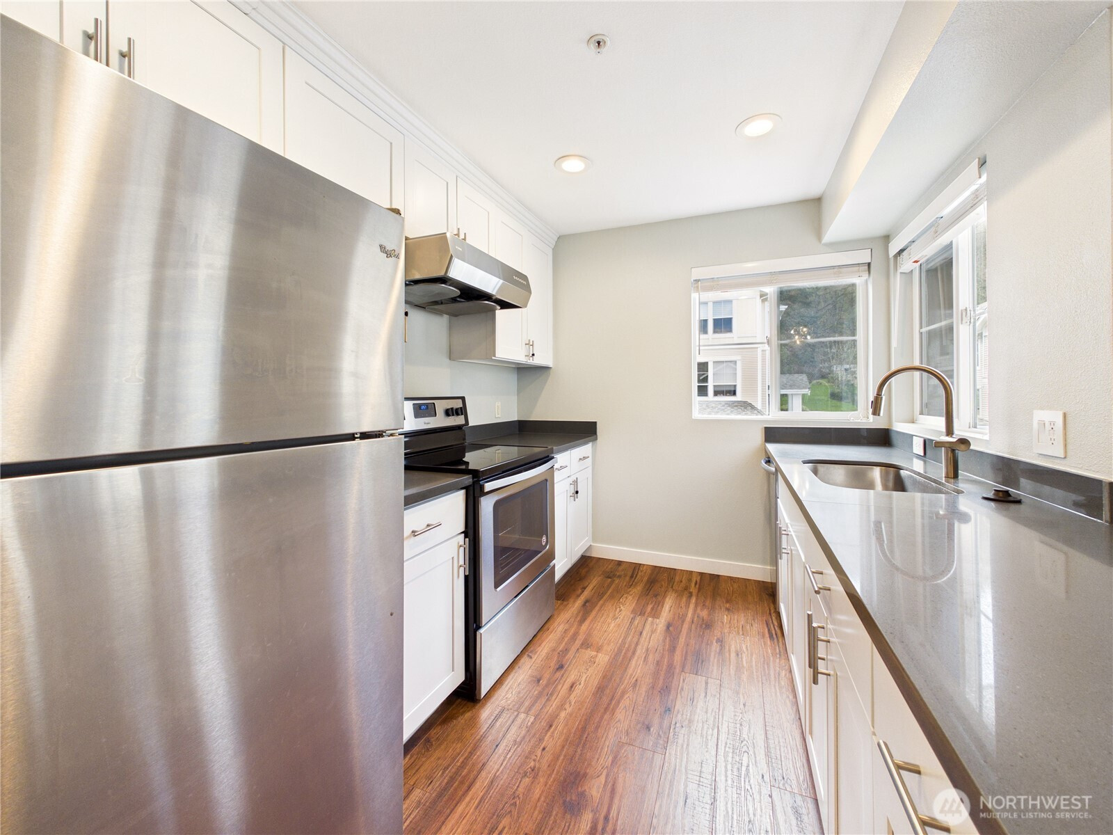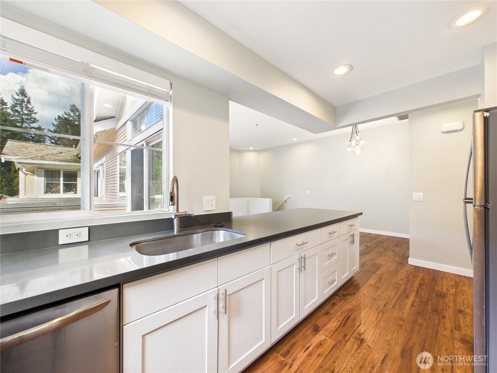 Welcome to this beautifully updated 1-bedroom, 1-bath condo in the highly desirable Lakemont View community. Ideally located in the heart of Lakemont, this move-in ready home offers the perfect blend of comfort, convenience, and investment potential—with no rental cap and a pet-friendly setting. Step inside to a bright, inviting two-level floor plan filled with natural light, laminate flooring throughout the upper level. The updated kitchen and bathroom feature sleek quartz countertops and stainless steel appliances, while the cozy living room is anchored by a gas fireplace and soaring 10-foot ceilings. A west-facing deck provides the perfect spot to unwind and take in warm afternoon sun. Additional highlights include an attached one-car garage, a spacious primary bedroom with a large walk-in closet. The well-managed HOA has completed major community upgrades, and no special assessments, offering peace of mind and strong long-term value. Enjoy unbeatable convenience with easy access to I-90, just minutes to shopping at Lakemont Village, scenic trails, and a short walk to Lewis Creek Park. Located within award-winning schools including Cougar Ridge Elementary, Cougar Mountain Middle, and Issaquah High.
