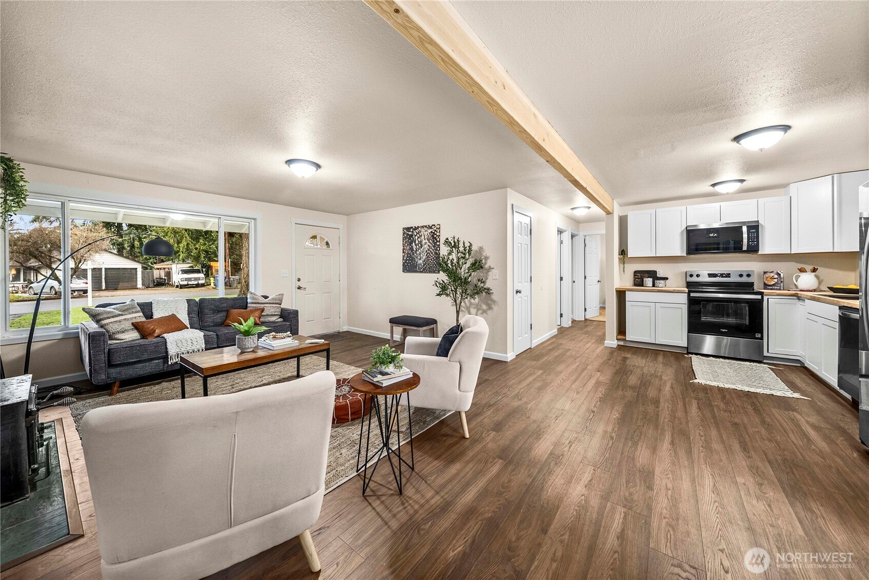 Stunning, fully remodeled rambler in sought-after Federal Way location! This turn-key home shines w/ all-new int & ext paint, BRAND NEW roof, refreshed landscaping, new LVP flooring & plush carpet throughout. Inviting living rm filled w/ natural light flows seamlessly into the open kitchen & dining—ideal for entertaining or cozy nights in. 3 bdrms share a beautifully updated full bath. Seller pre-inspected for added confidence! Expansive, fully fenced backyard offers space for play, pets, gardening & summer BBQs. Attached 2-car garage adds convenience. Unbeatable location just mins to Dash Point State Park, beaches, trails, shopping ctrs, dining, transit & easy commuter access. A rare blend of style, comfort & location—don’t miss this one!