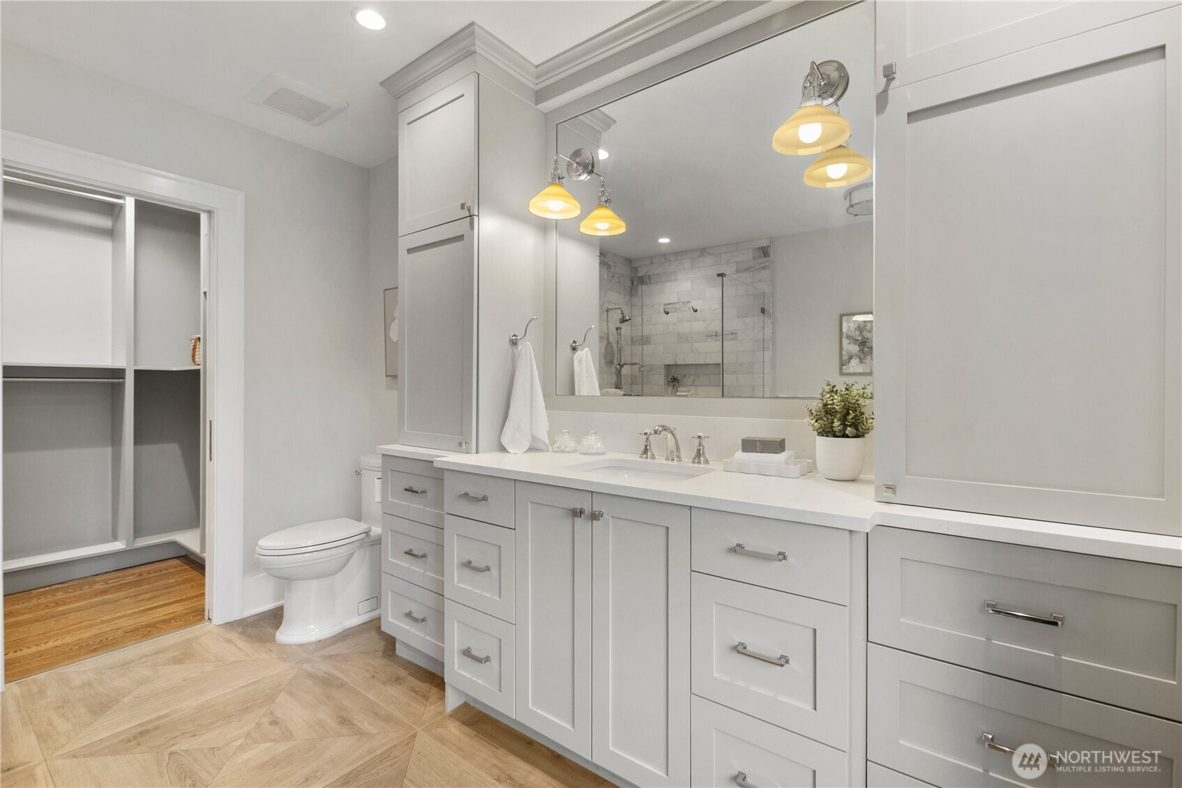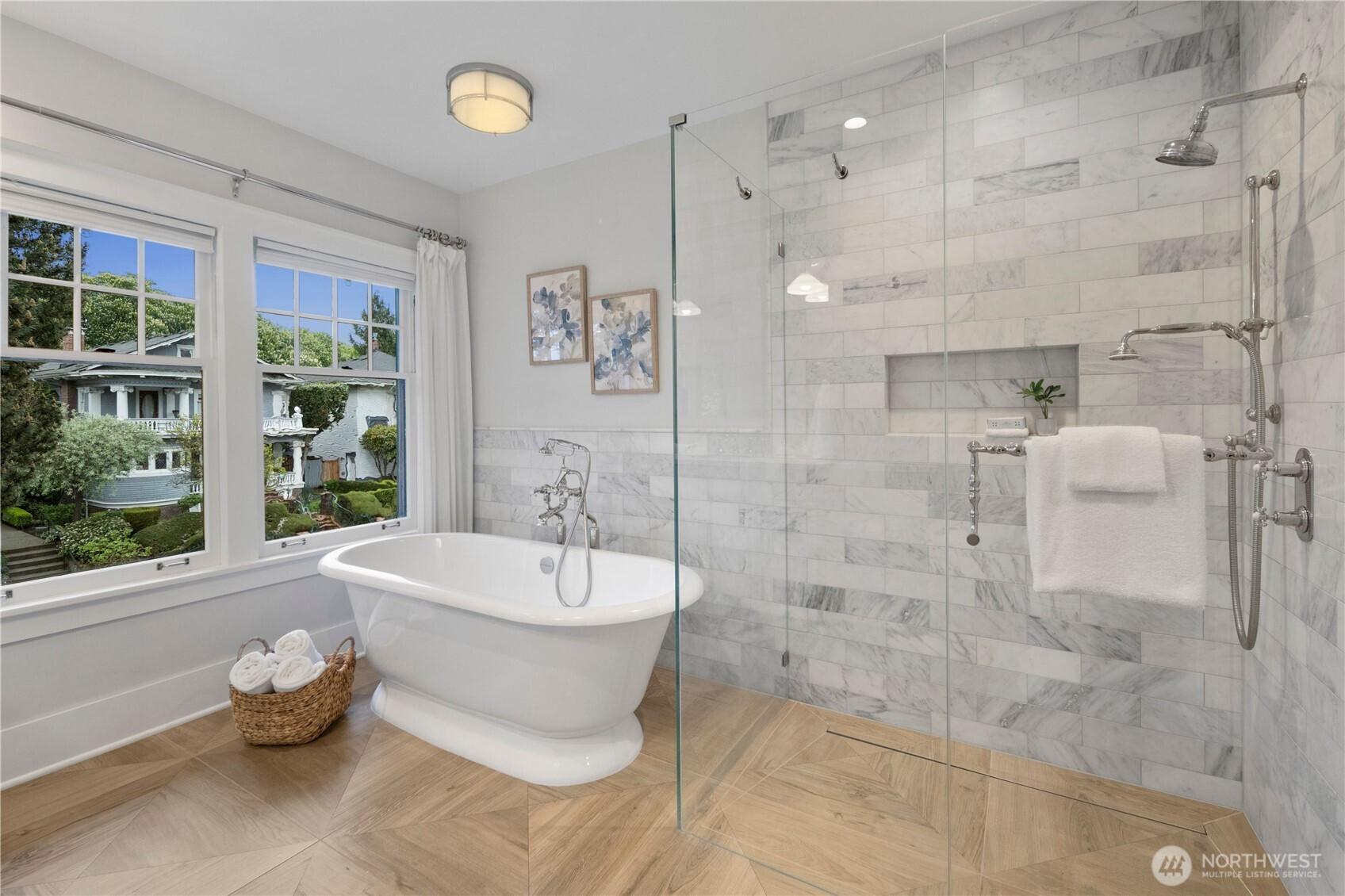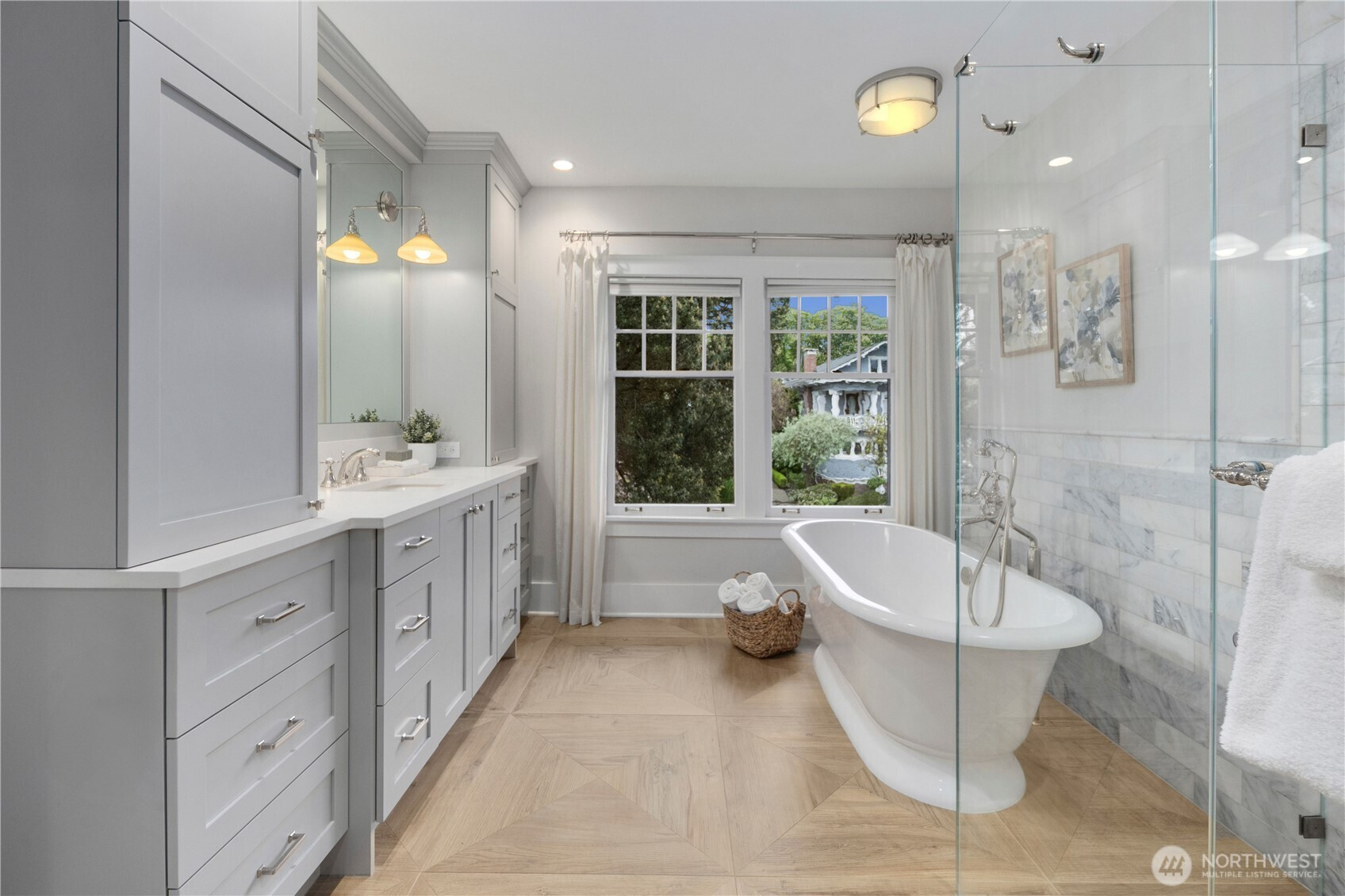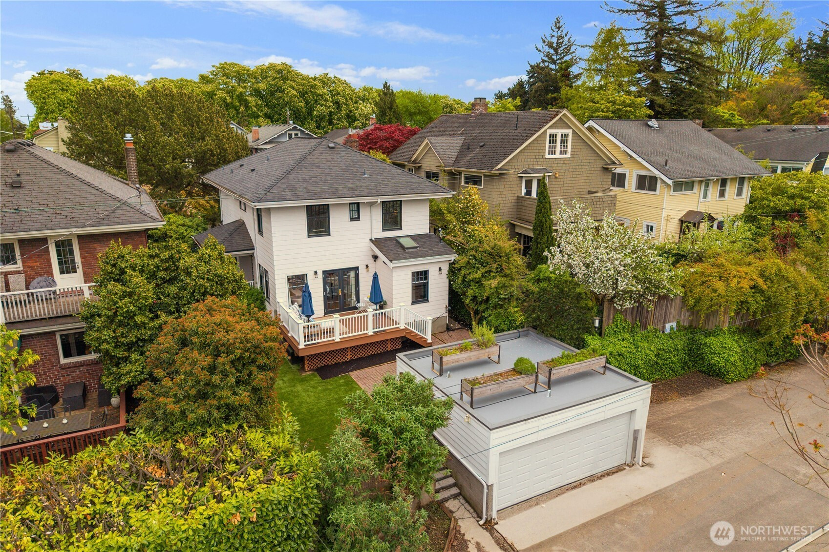 Discover the rare architectural achievement of this 1920’s Colonial meticulously reborn with of-the-moment finishes. This University Heights masterpiece underwent a comprehensive studs-out remodel in 2020 executed with a singular vision: to preserve the home’s storied exterior presence while recreating its original craftsmanship using the finest modern materials for the interior. The renovation blends period-accurate and high-end millwork and fixtures throughout. The heart of the home is a chef-designed kitchen featuring custom inset cabinetry, Carrara marble and state-of-the-art appliances. French doors off the dining room lead to a sun-drenched, west-facing composite deck overlooking a private, fenced backyard with turfed lawn. Upstairs is an ideal layout with two bedrooms sharing a full bathroom plus a large ensuite primary bedroom with walk-in closet. The fully finished basement features custom built-ins, a spacious living and play area, an additional bedroom, three-quarter bathroom, utility room and tons of storage. The detached garage can park two large cars or offer additional flex space or storage. While the aesthetic is classic, the construction, systems and fixtures are cutting-edge. Prime location blocks from the University of Washington as well as walkable parks, coffee shops, restaurants and grocery stores. This home offers the timeless presence of a classic Seattle estate with the peace of mind of new construction infrastructure and finishes.