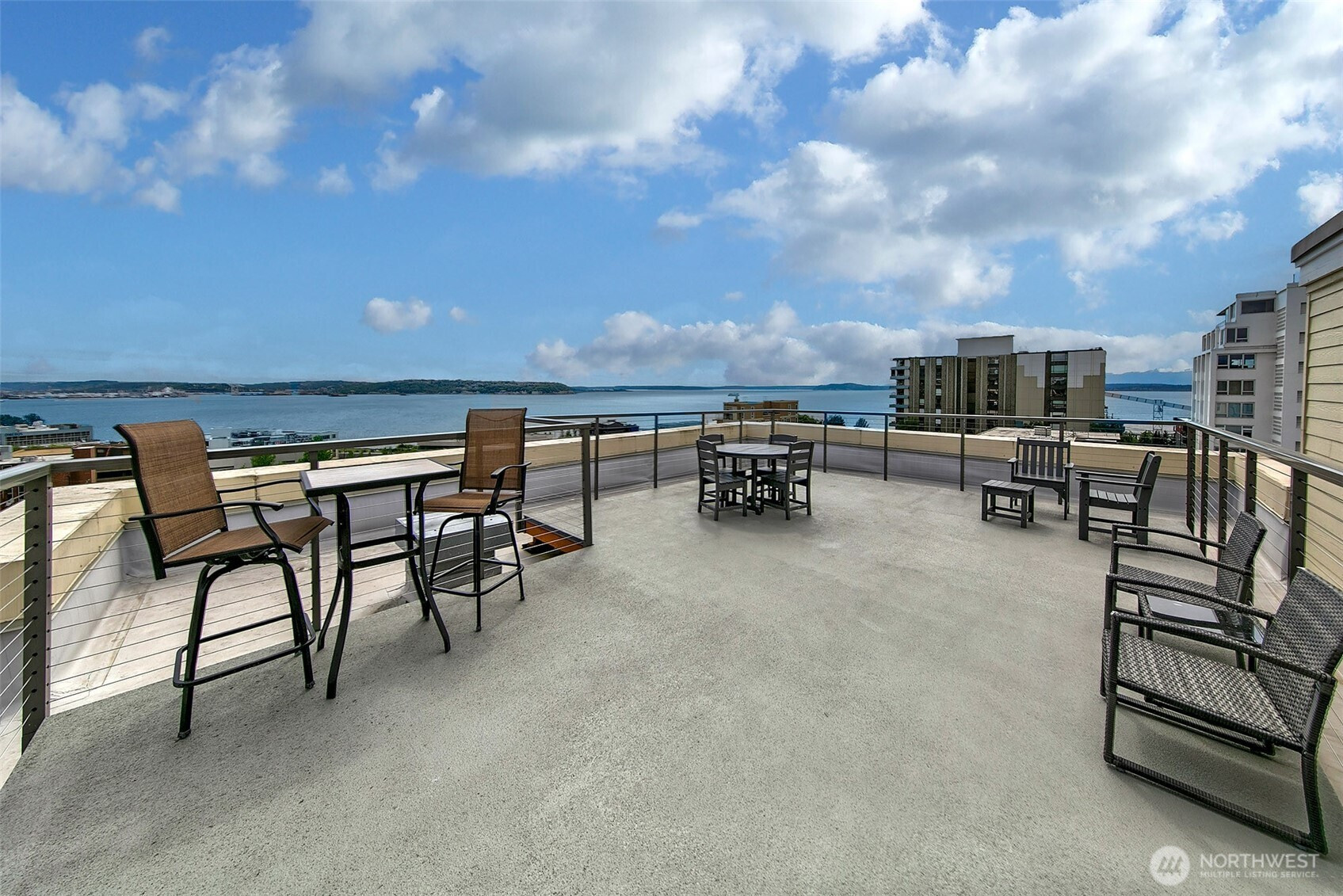 Unobstructed view, top floor corner condo at the desirable IV West in Lower Queen Anne. West facing windows and a private balcony showcase views of Puget Sound and the Olympics. Penthouse worthy high ceilings frame this updated spacious floorplan. The large living space features a gas fireplace, open kitchen with newer appliances, hardwood floors, eating bar, and additional dining space. Large bedroom, walk-in closet and huge laundry room. Primarily owner occupied with a strong HOA and low dues include water, sewer, garbage, gas & earthquake insurance. 2 garage parking spaces and additional storage included. Centrally located to Seattle’s favorite fun - Climate Pledge Arena, theaters, food & drink, festivals, amenities & services nearby.