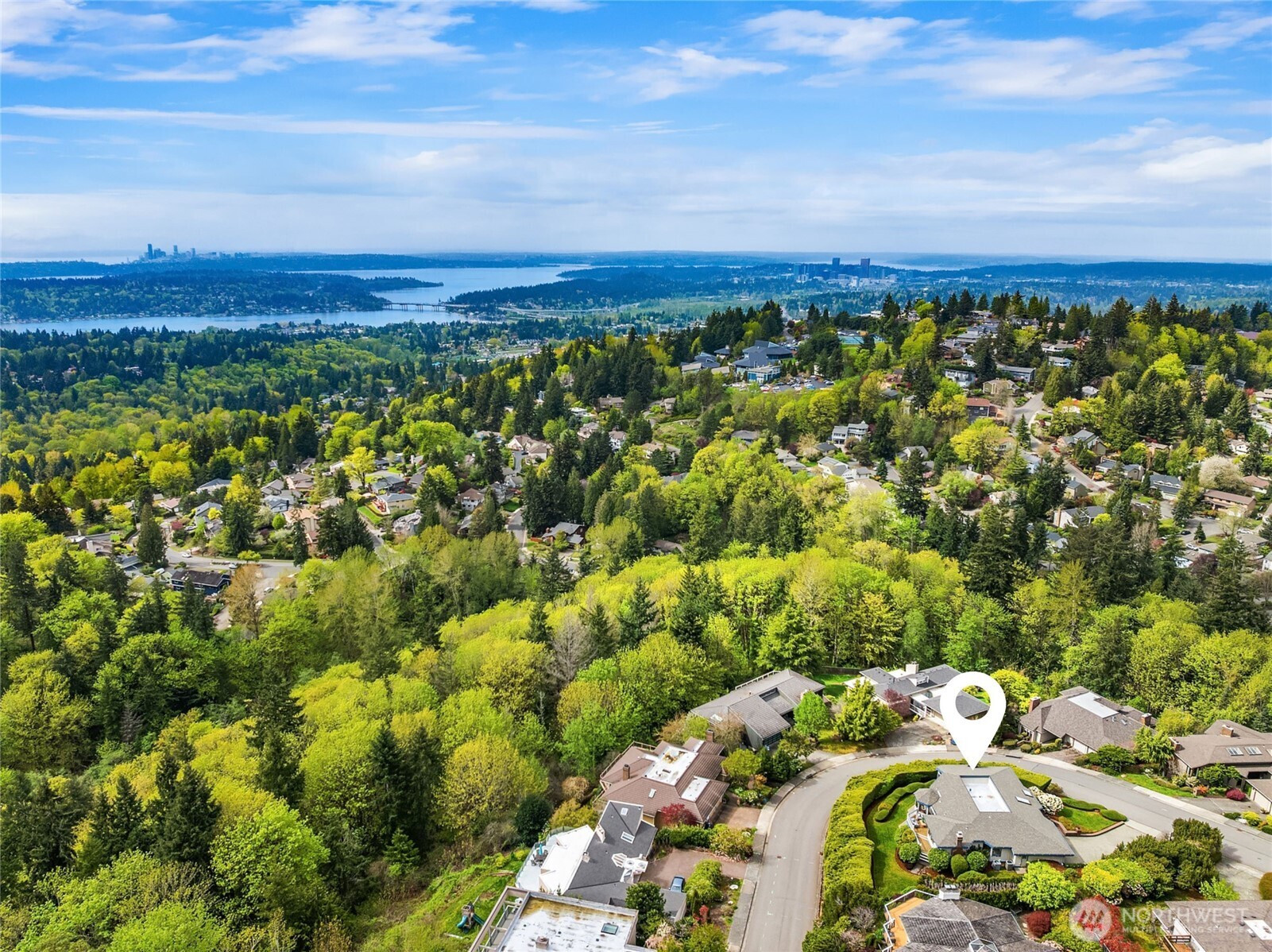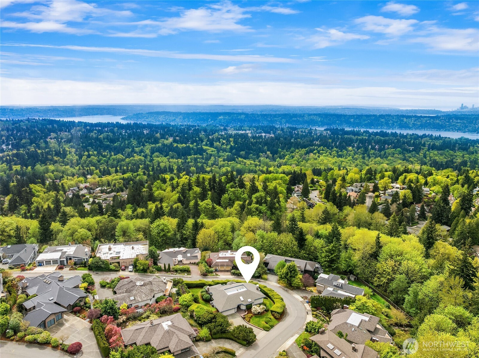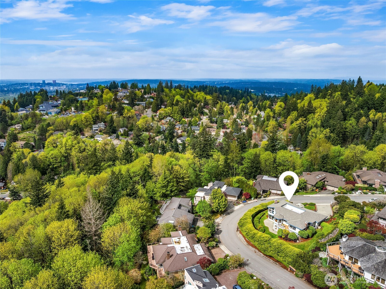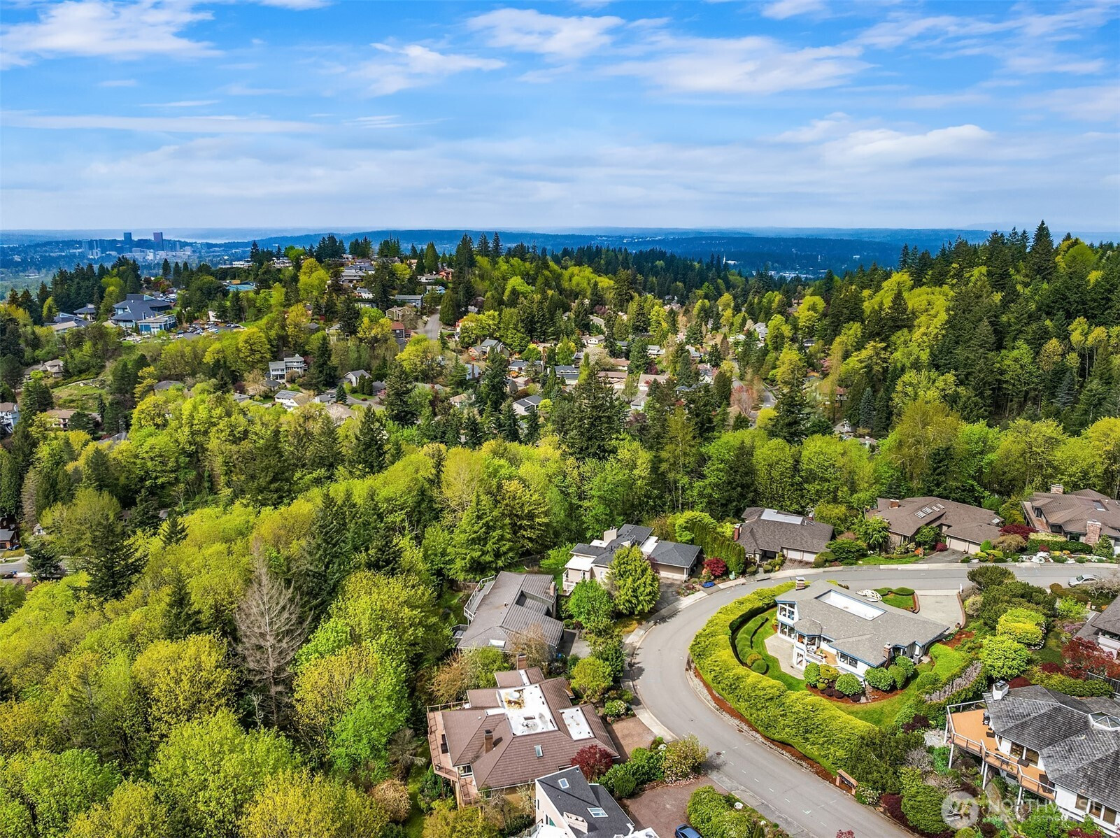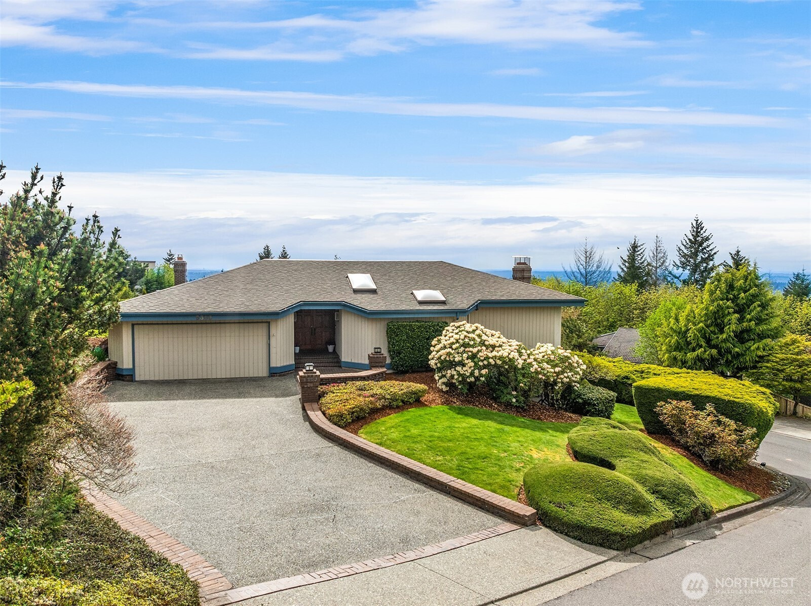 Perfectly positioned on a corner lot in Somerset, this refreshed Northwest Contemporary home offers enviable privacy, abundant natural light, and sweeping views of the Olympics, Seattle skyline, Puget Sound, and Lake Washington. Vaulted ceilings and expansive windows bring the outdoors in, providing amazing vistas at any time of day or night. Designed both for everyday comfort and effortless entertaining, the main level features inviting gathering spaces, including a family room and a kitchen with casual dining that enjoy the views, along with formal living and dining rooms that do the same. Warm wood detailing along the vaulted ceilings enhances the home’s distinctive style. A generous main floor primary suite captures a lovely outlook, while an additional bedroom / office adds flexibility. Downstairs, two additional bedrooms, a bonus room, and a den provide versatile spaces to live, work, and unwind. New interior paint and carpet complement the home’s timeless architectural appeal. Set on a manicured 13,417 square foot lot in the desirable Forest Highlands community, this home presents a rare opportunity to enjoy signature views, top Bellevue schools, and a coveted Somerset setting.