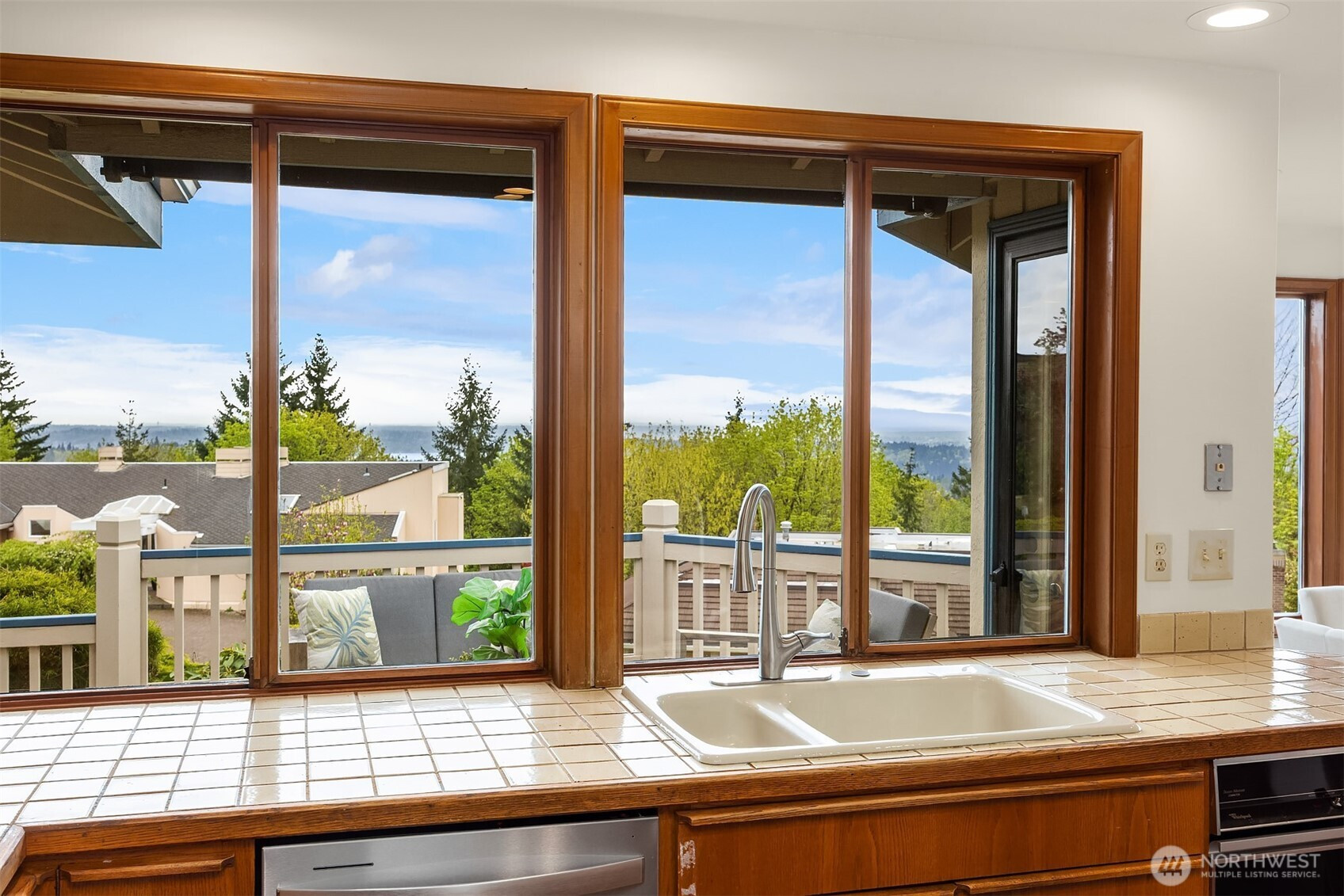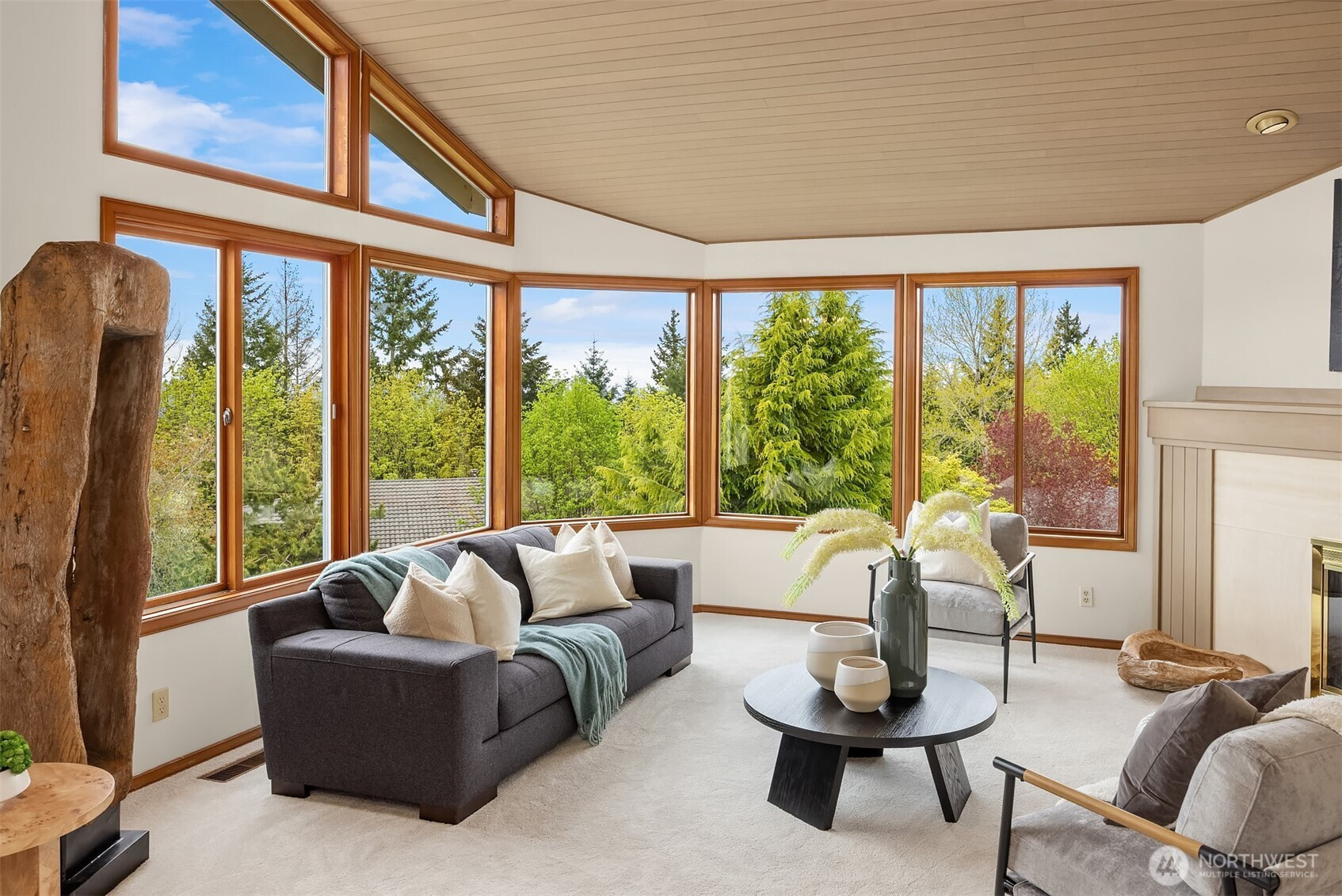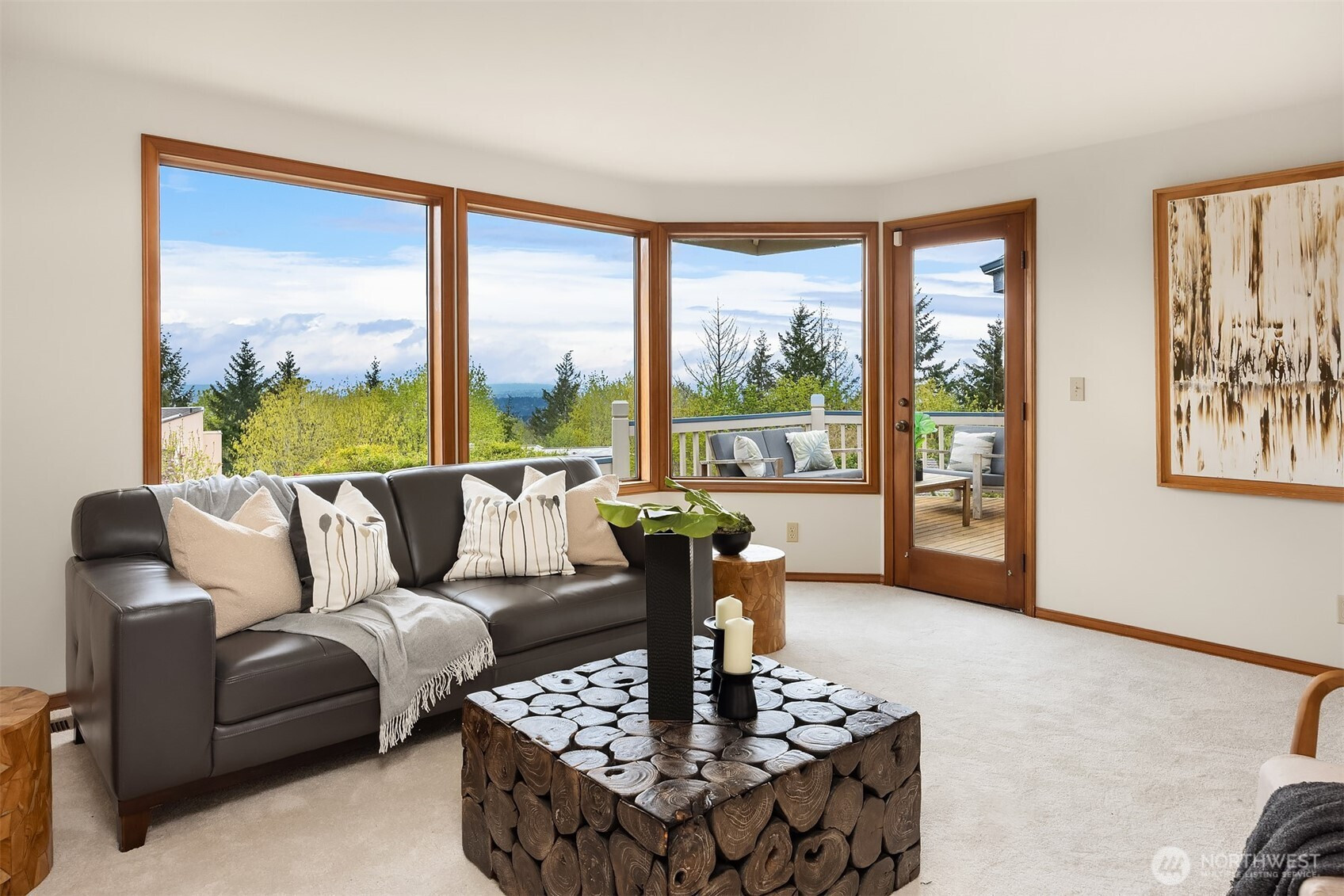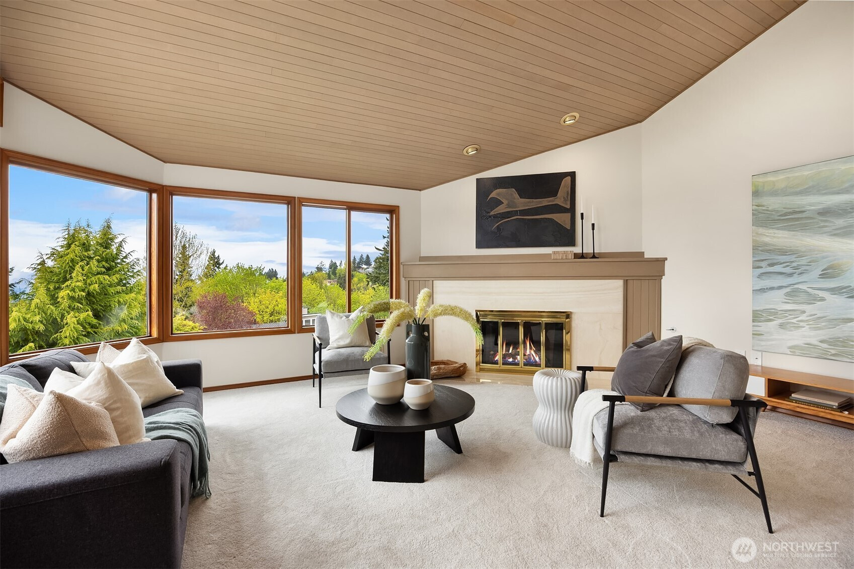 Perfectly positioned on a corner lot in Somerset, this refreshed Northwest Contemporary home offers enviable privacy, abundant natural light, and sweeping views of the Olympics, Seattle skyline, Puget Sound, and Lake Washington. Vaulted ceilings and expansive windows bring the outdoors in, providing amazing vistas at any time of day or night. Designed both for everyday comfort and effortless entertaining, the main level features inviting gathering spaces, including a family room and a kitchen with casual dining that enjoy the views, along with formal living and dining rooms that do the same. Warm wood detailing along the vaulted ceilings enhances the home’s distinctive style. A generous main floor primary suite captures a lovely outlook, while an additional bedroom / office adds flexibility. Downstairs, two additional bedrooms, a bonus room, and a den provide versatile spaces to live, work, and unwind. New interior paint and carpet complement the home’s timeless architectural appeal. Set on a manicured 13,417 square foot lot in the desirable Forest Highlands community, this home presents a rare opportunity to enjoy signature views, top Bellevue schools, and a coveted Somerset setting.