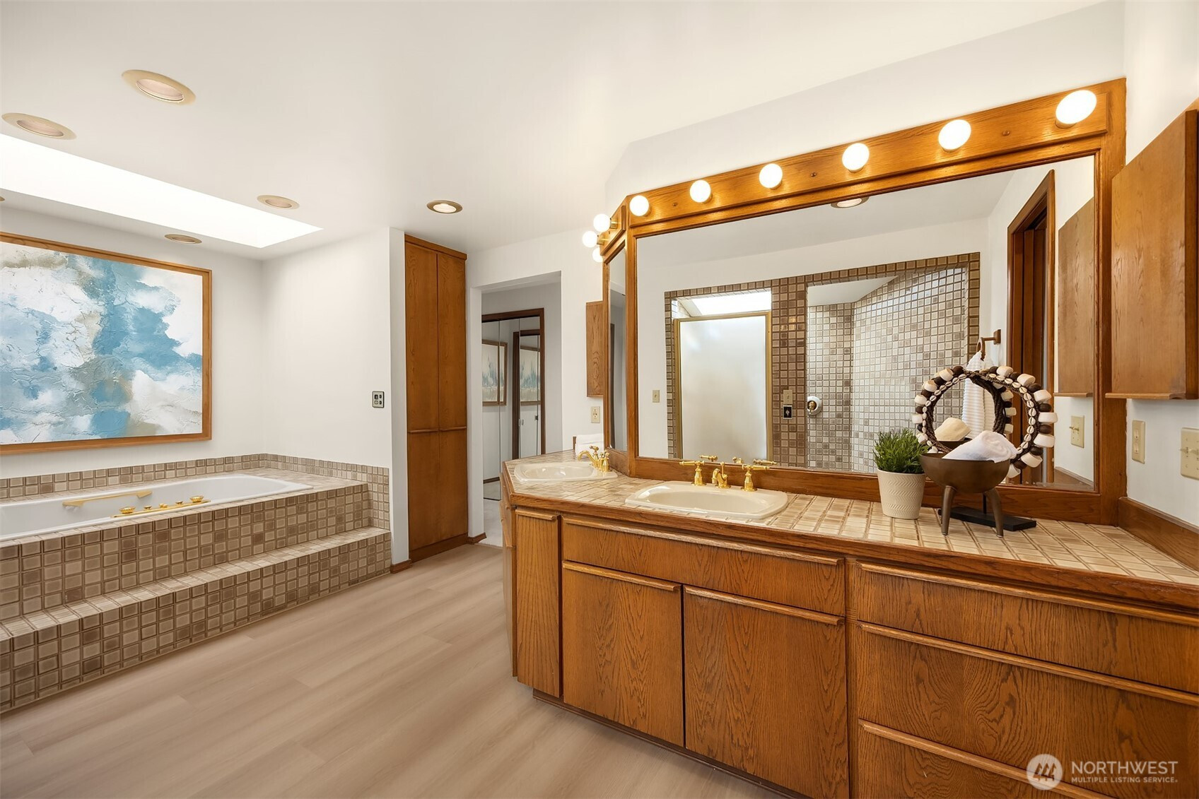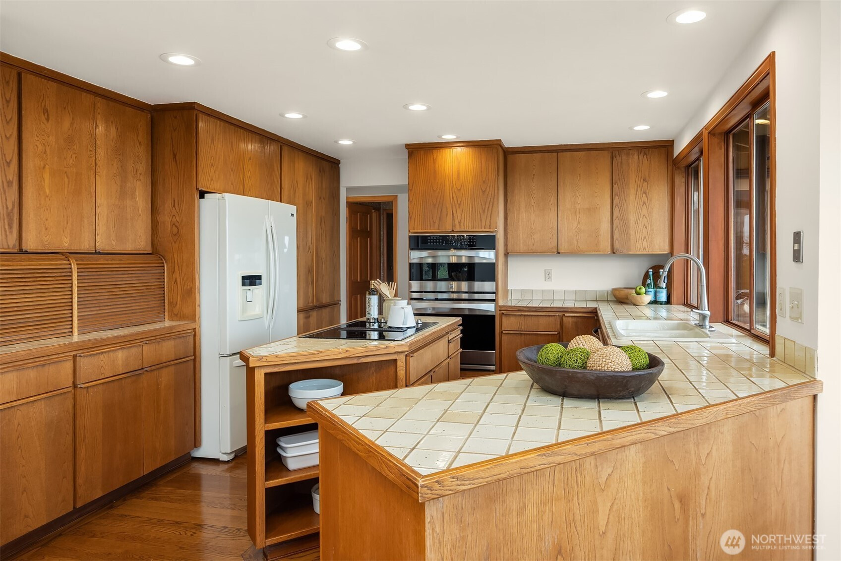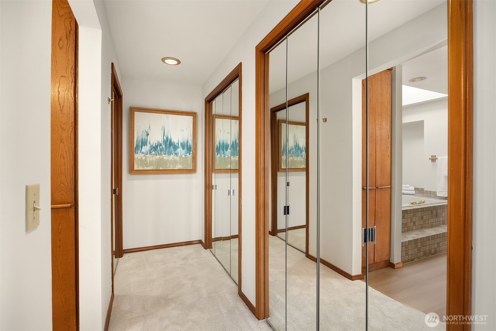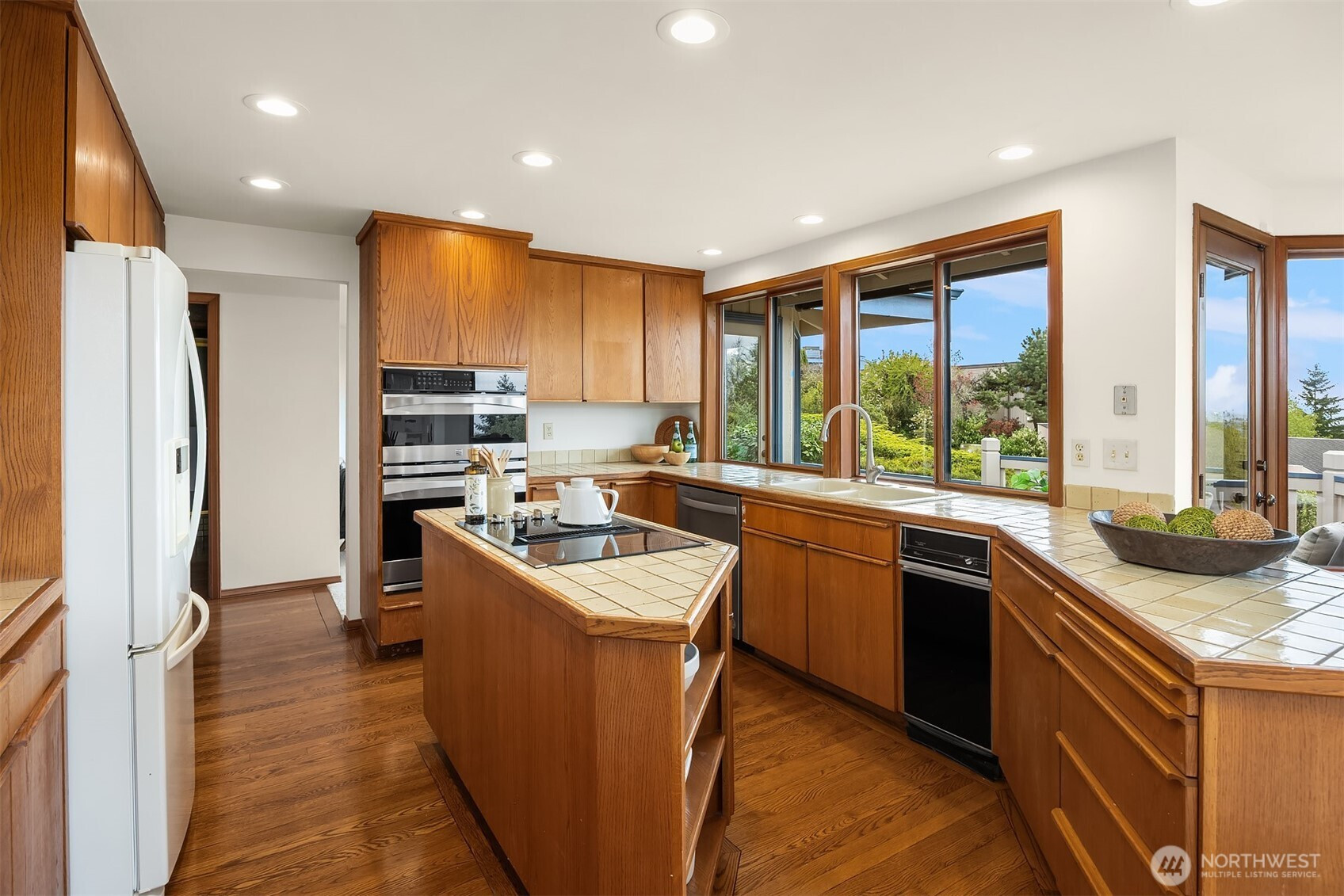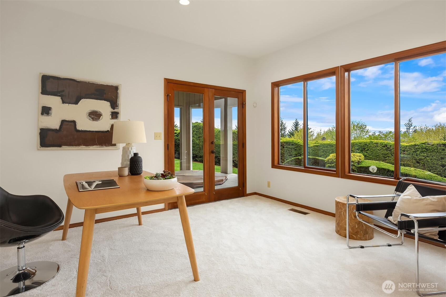 Perfectly positioned on a corner lot in Somerset, this refreshed Northwest Contemporary home offers enviable privacy, abundant natural light, and sweeping views of the Olympics, Seattle skyline, Puget Sound, and Lake Washington. Vaulted ceilings and expansive windows bring the outdoors in, providing amazing vistas at any time of day or night. Designed both for everyday comfort and effortless entertaining, the main level features inviting gathering spaces, including a family room and a kitchen with casual dining that enjoy the views, along with formal living and dining rooms that do the same. Warm wood detailing along the vaulted ceilings enhances the home’s distinctive style. A generous main floor primary suite captures a lovely outlook, while an additional bedroom / office adds flexibility. Downstairs, two additional bedrooms, a bonus room, and a den provide versatile spaces to live, work, and unwind. New interior paint and carpet complement the home’s timeless architectural appeal. Set on a manicured 13,417 square foot lot in the desirable Forest Highlands community, this home presents a rare opportunity to enjoy signature views, top Bellevue schools, and a coveted Somerset setting.