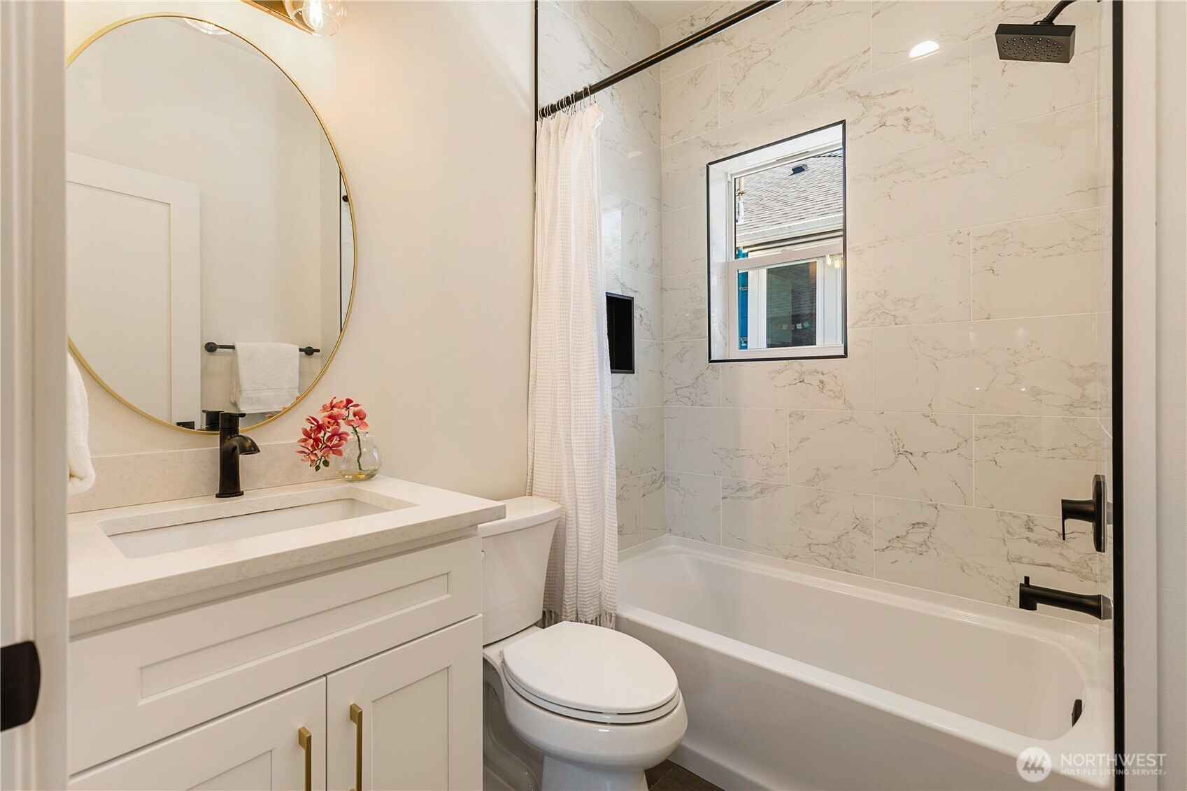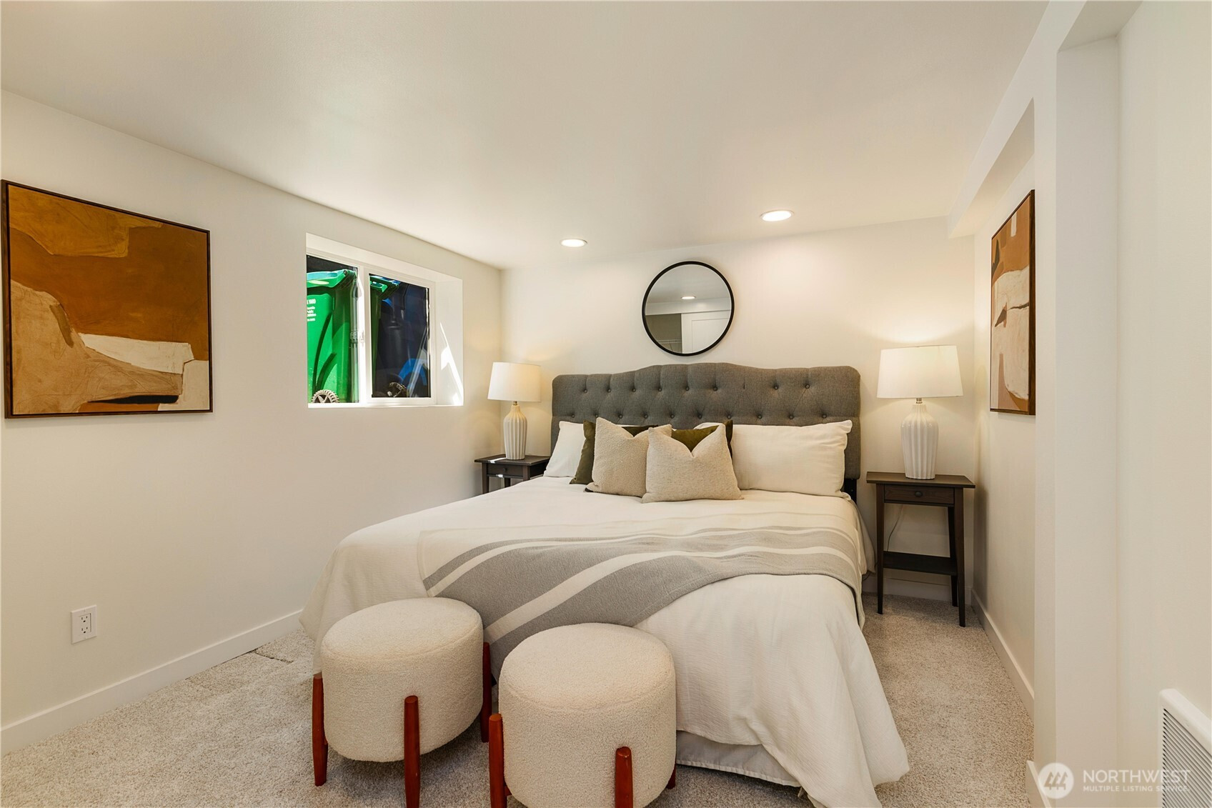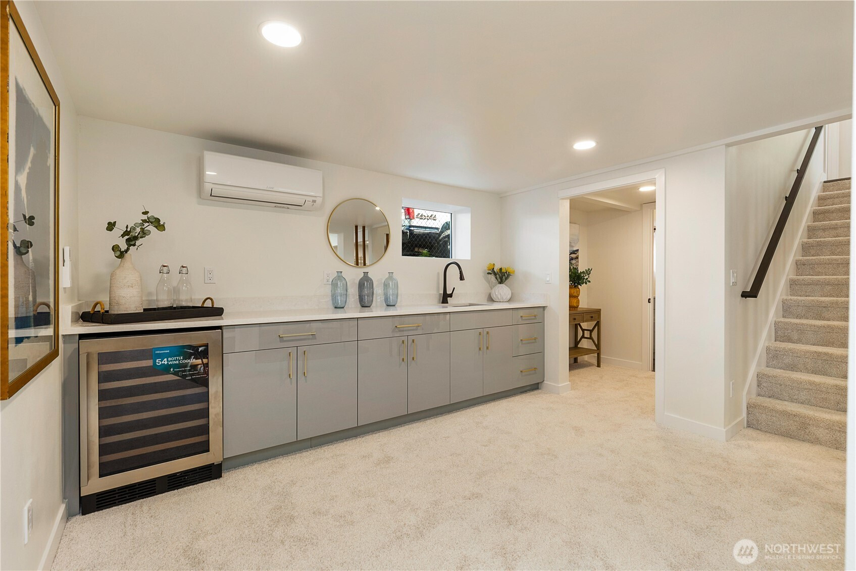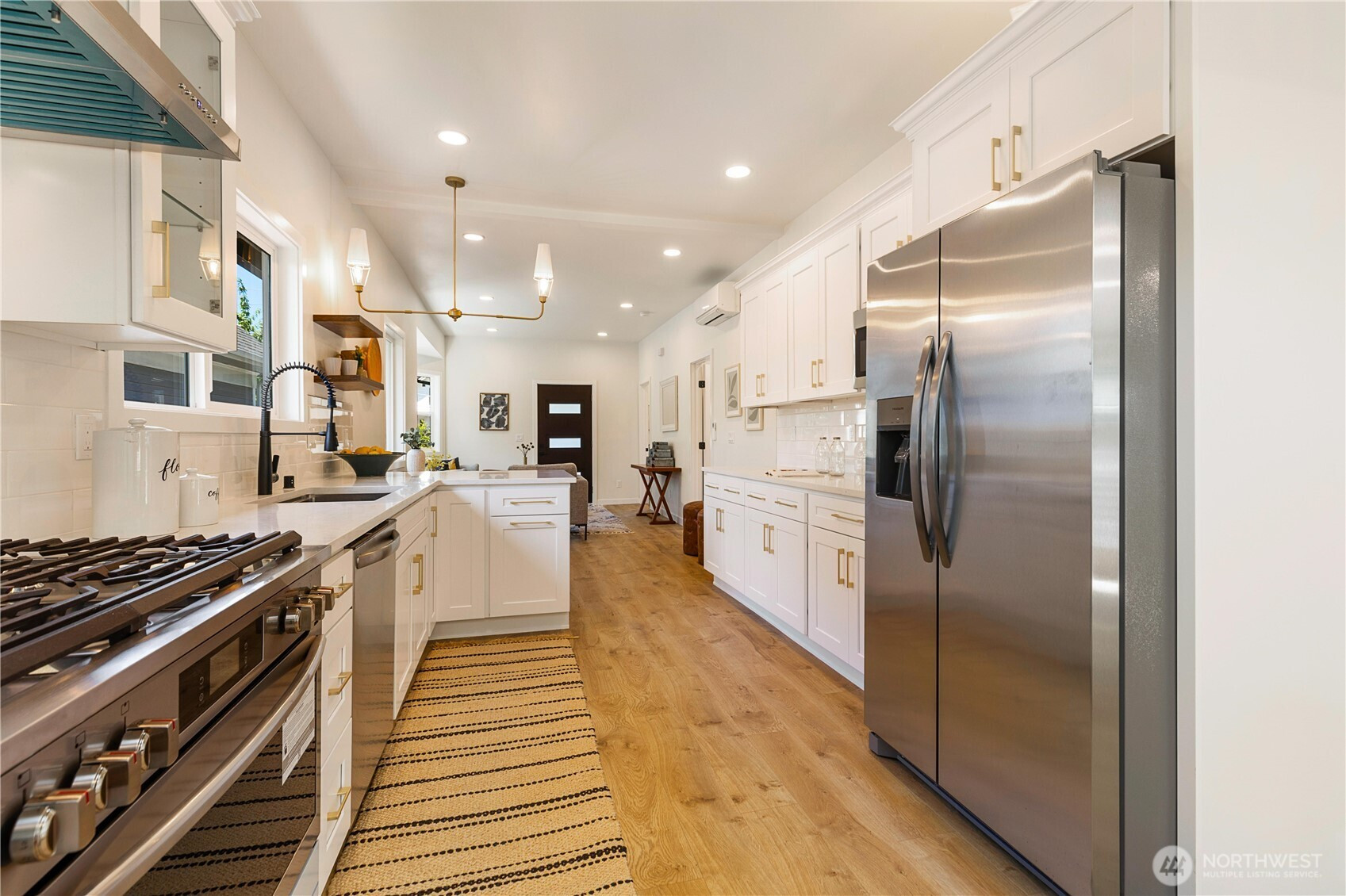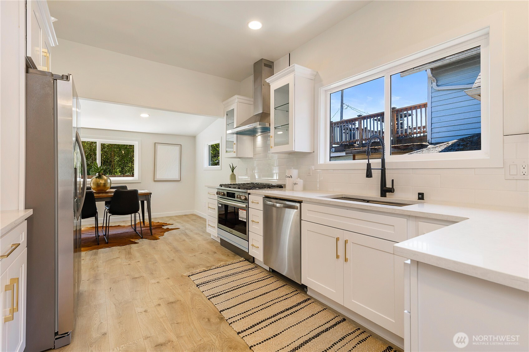 Essentially new construction with a fully permitted remodel in vibrant Columbia City! Step into tall ceilings and an open-concept layout featuring new windows, roof, siding, and more. Enjoy sleek new bathrooms and a modern kitchen with stainless steel appliances incl gas 6 burner stove. Main level offers a primary suite with ensuite, second bedroom, and full bath. Lower level includes a spacious family room, two more bedrooms, full bath, and wet bar—perfect for entertaining. Energy-efficient with all-new insulation and earthquake-ready with completed seismic upgrades. Outdoor patio access from dining area. Prime location near shops, dining & transit!