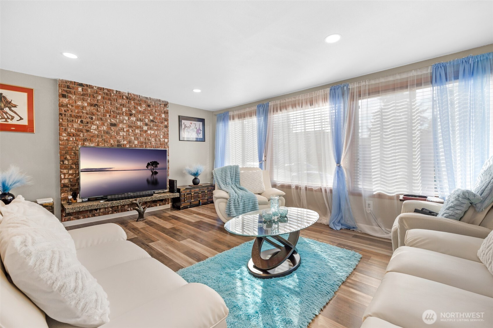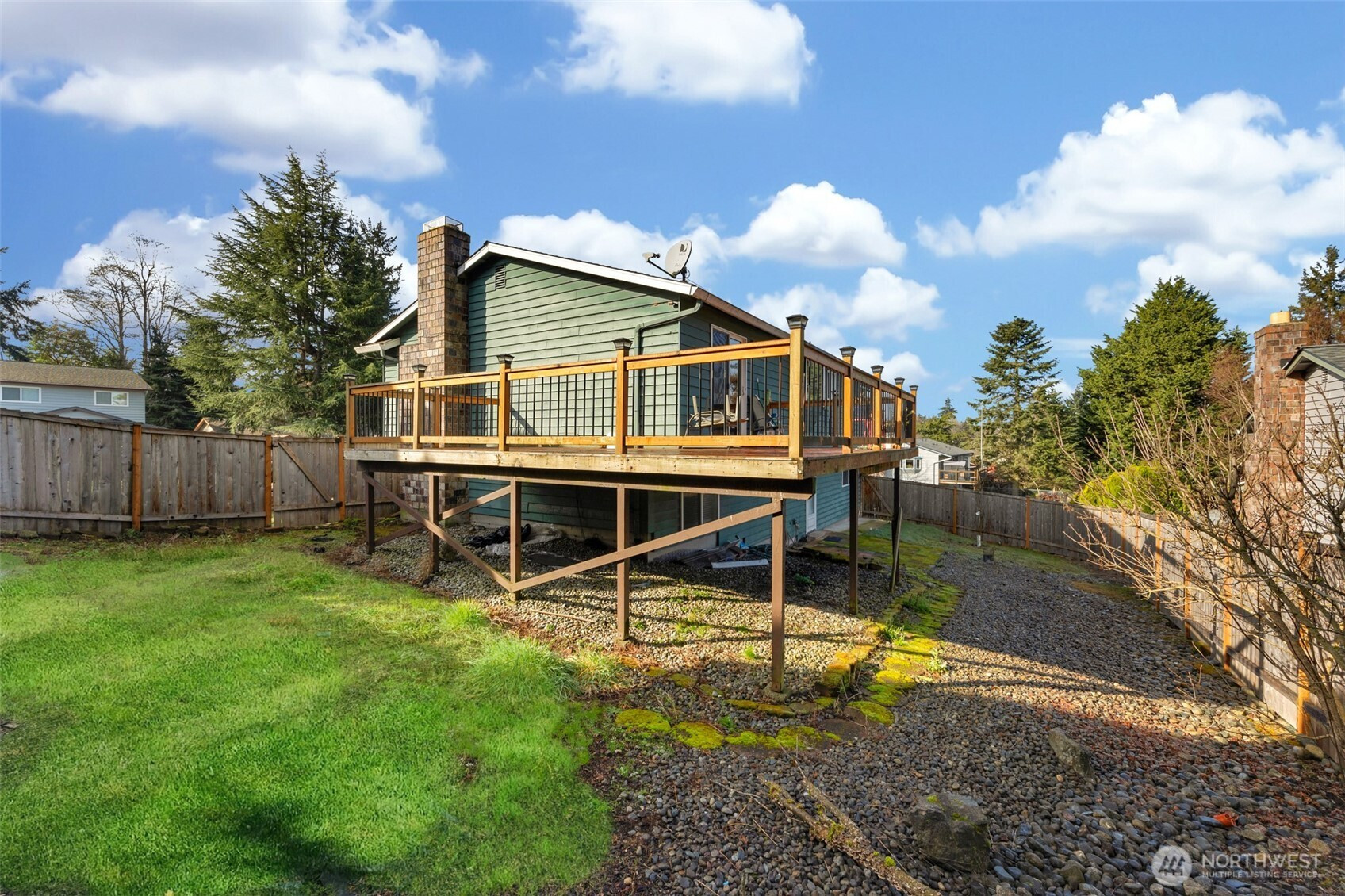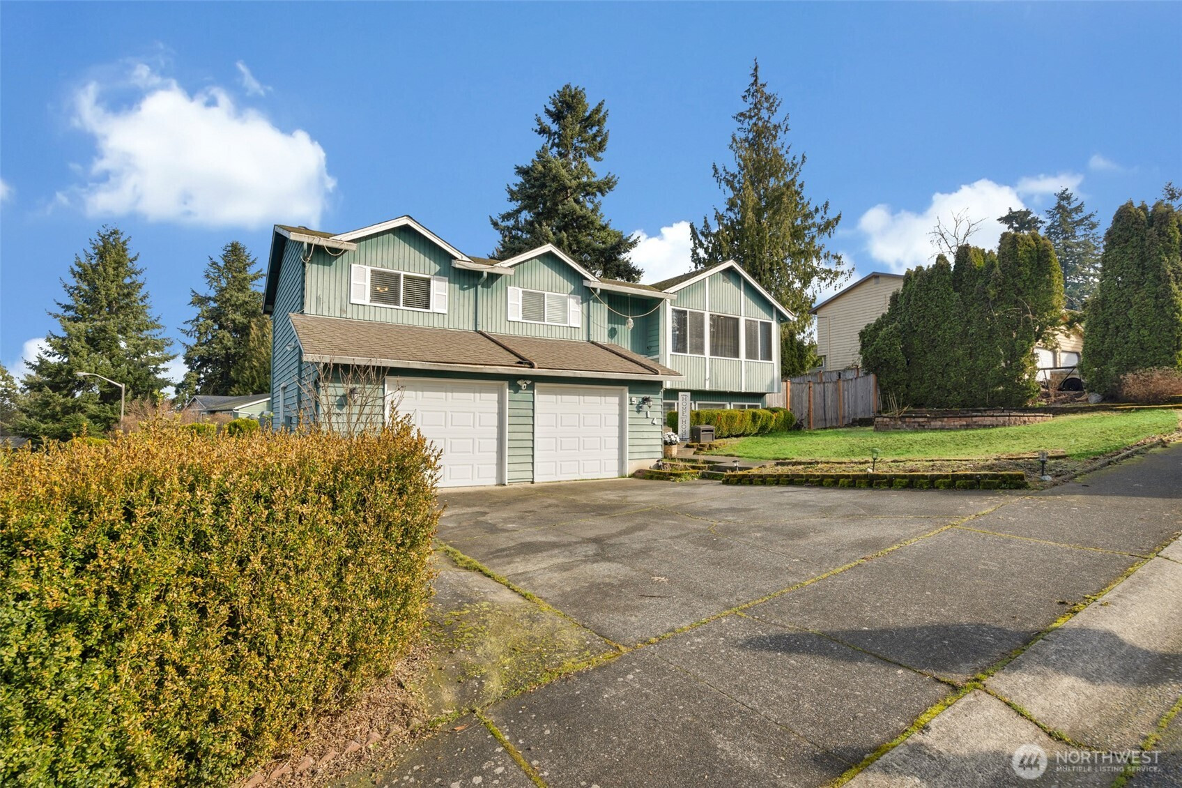 Beautifully updated home with spacious living room featuring new LVP flooring, large windows for abundant natural light, and a focal fireplace. Open-concept design flows into the dining area and kitchen. Upper kitchen boasts a large island, stainless steel appliances, garden window, and access to a generous wraparound deck—ideal for entertaining. Primary bedroom includes a ¾ bath with tile and walk-in shower. Lower-level great room offers a fireplace, space for an office, second kitchen, new ¾ bath with walk-in shower and tile, plus 4th and 5th bedrooms. Two kitchens and two washer/dryer setups provide excellent flexibility for multi-generational living, rental income, or adult family home use. Solid wood doors throughout, large laundry room, spacious 2-car garage, A/C, wired for generator. Corner lot in quiet, walkable, sought-after Auburn West Hill, blocks to schools and close to transit, I-5, and Hwy 167.