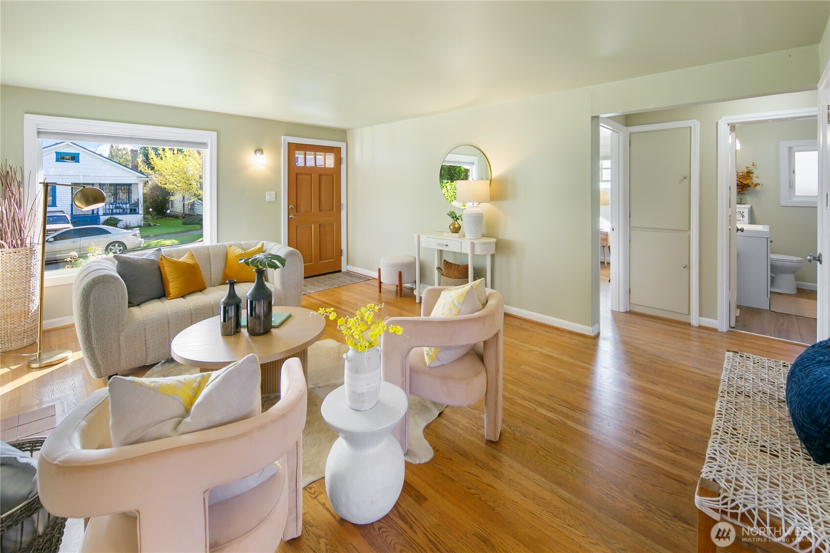 Welcome home to this charming two-bedroom Phinney Ridge cottage with an easy, functional layout and timeless appeal. Inside, the inviting living room features gleaming hardwood floors, a bright picture window, and a cozy fireplace, perfect for gathering or unwinding. The updated kitchen features solid wood cabinetry, granite countertops, and a quality gas range, with a practical design for daily life. Step outside to a level, fully fenced backyard with a patio and a generous deck just off the kitchen, ideal for dining, relaxing, and entertaining. Rounding it out is an oversized detached garage with great storage, plus an additional off-alley parking space. Set near Green Lake Park and Woodland Park Zoo, with the Greenwood/Phinney corridor close by for standout spots like Cornuto pizza, Prost! and Fortuna Italian sandwiches. A sweet Seattle classic, ready for its next chapter.