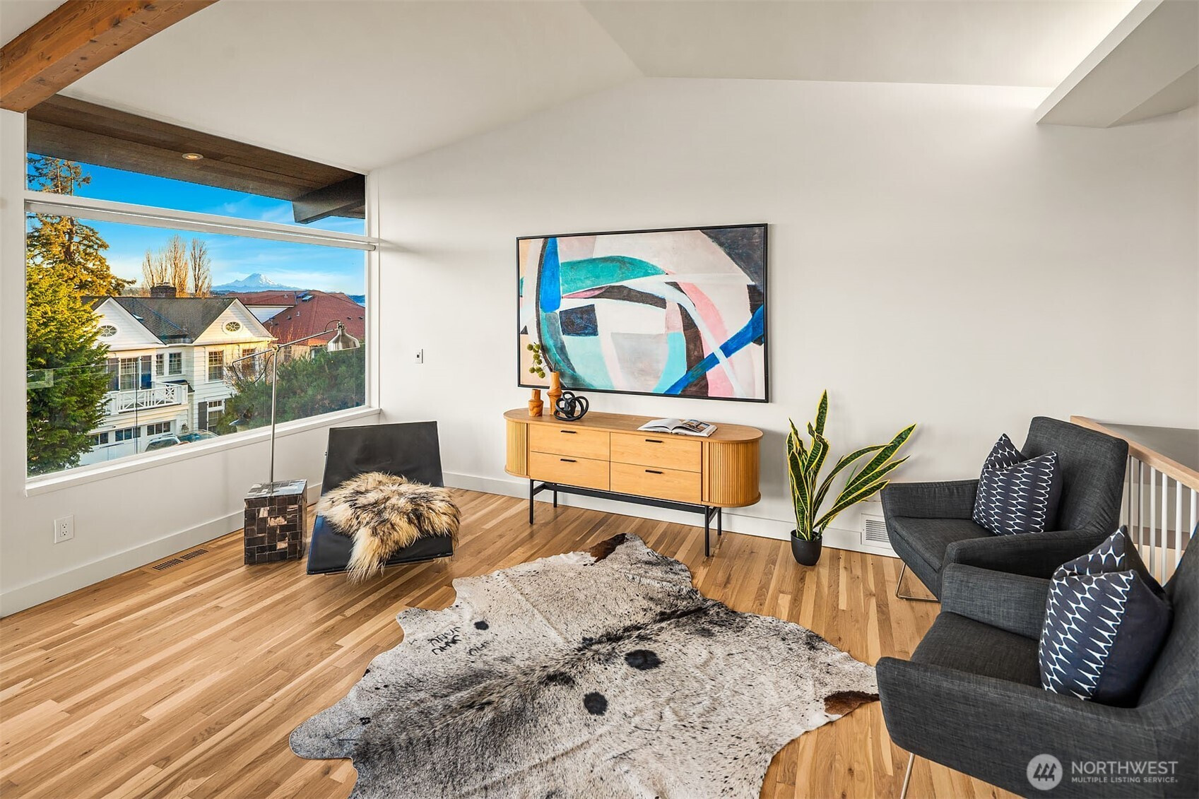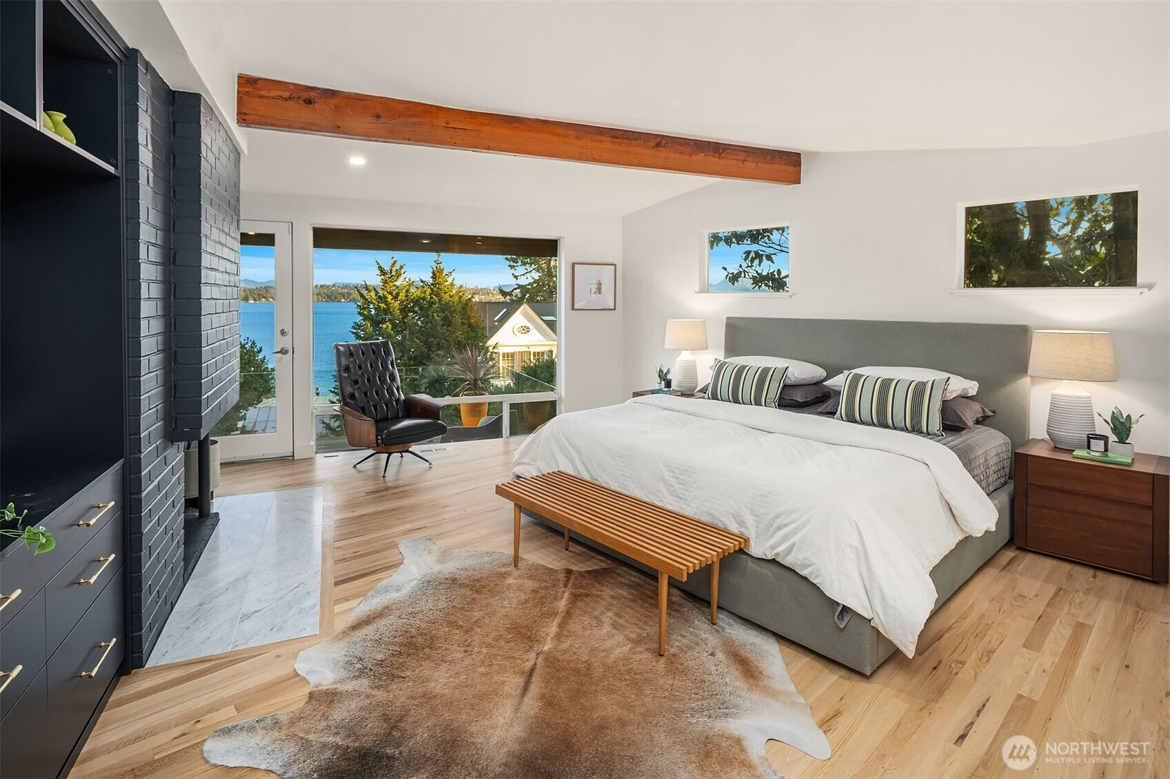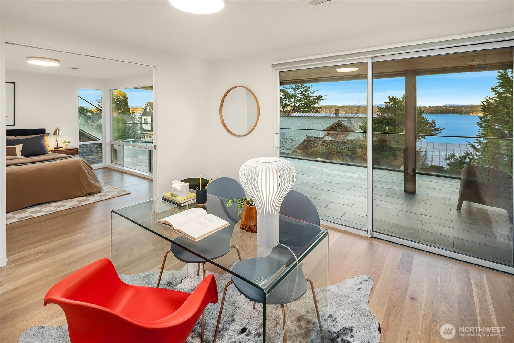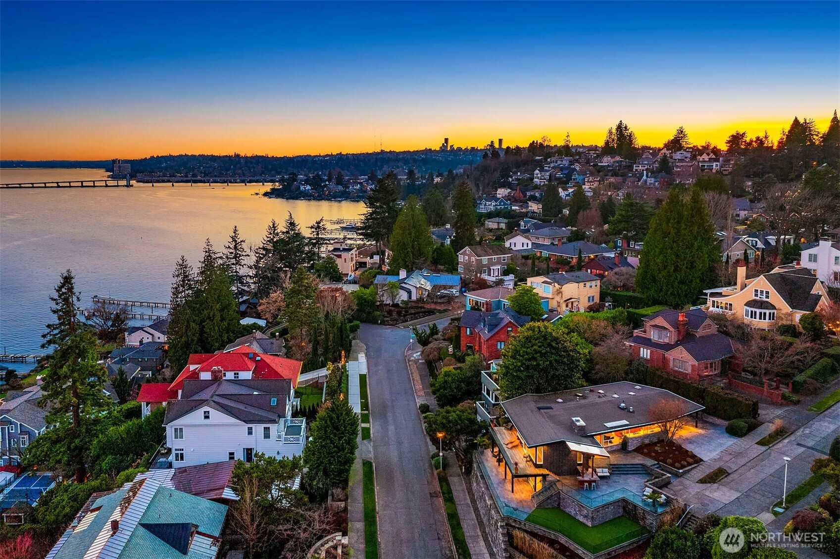 Enviably sited at the culmination of a premier view street, this impeccable mid-century modern showcases panoramic views of Lake Washington and Mt. Rainier. This 4 bed, 2 3/4 bath home, just blocks from Laurelhurst Beach Club puts modern artistry on display at every turn. The spacious and sun-drenched main level, anchored by a beautifully renovated chef’s kitchen is ideal for entertaining, everyday living and experiencing the theater of the seasons from the expansive view terraces. The main level primary bedroom with wood-burning fire and peaceful lake views is akin to a high-end spa retreat. The versatile lower level offers gracious spaces for recreation, a home office, crafts, and ample storage. Spectacular outdoor living-featuring two generous decks, patios, outdoor kitchen, and a two car carport. Welcome home to one of Laurelhurst’s jewels.