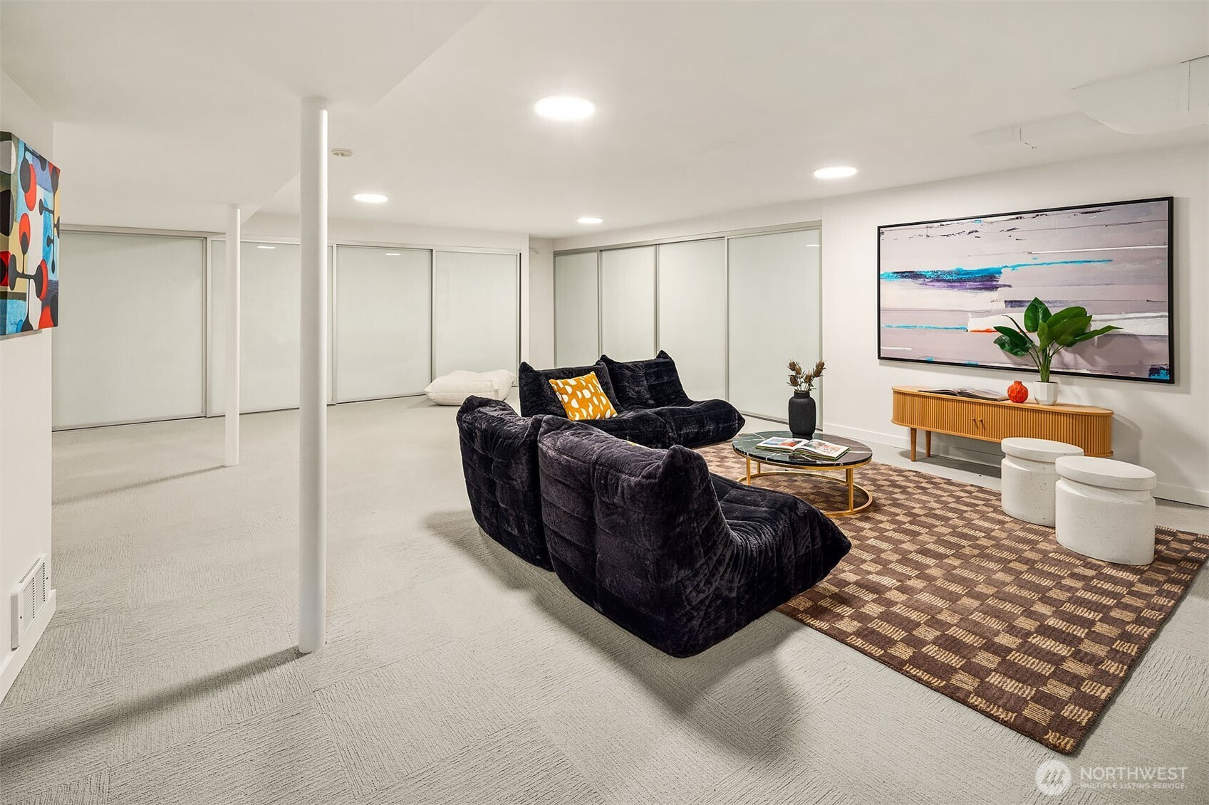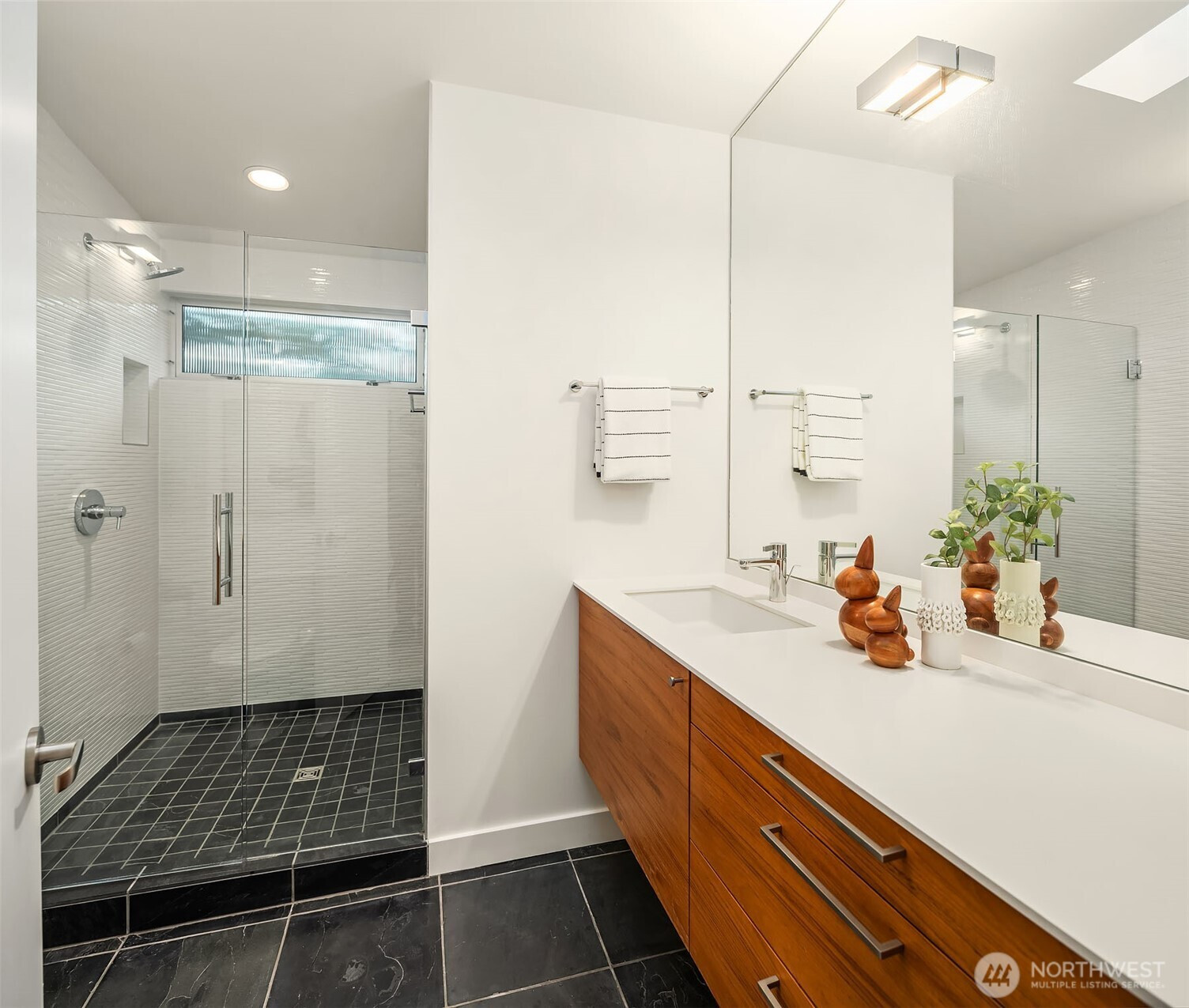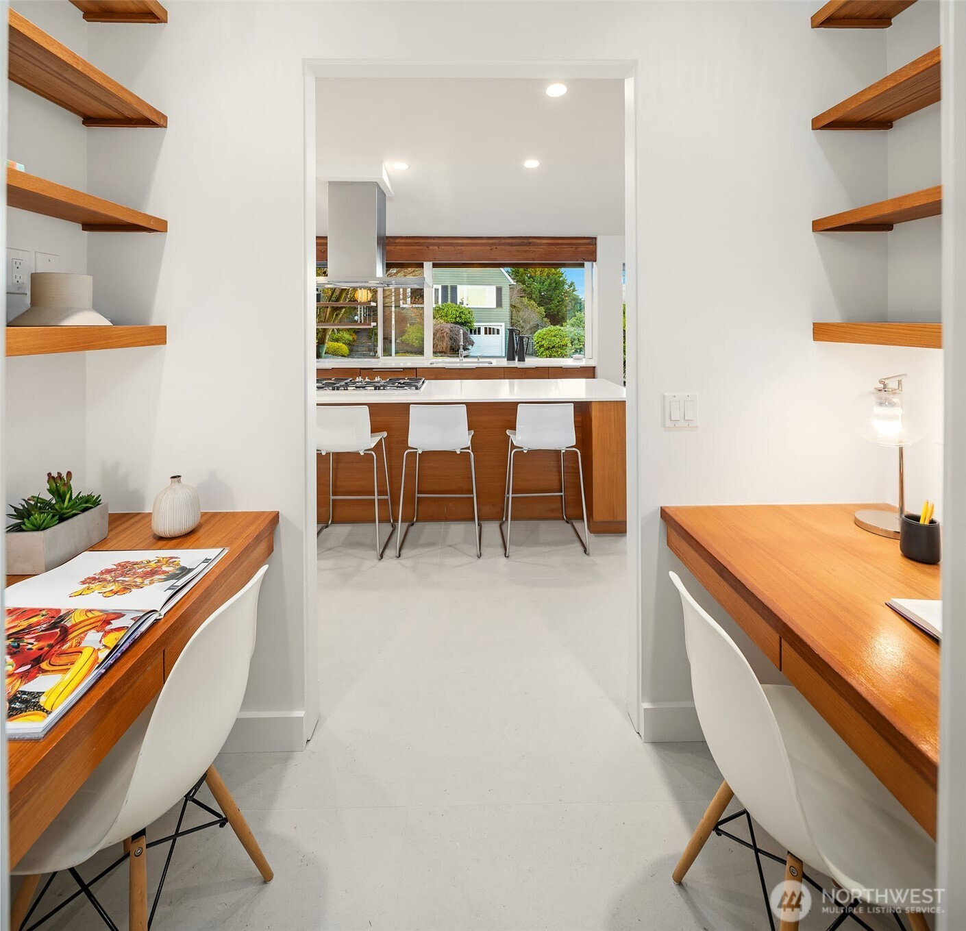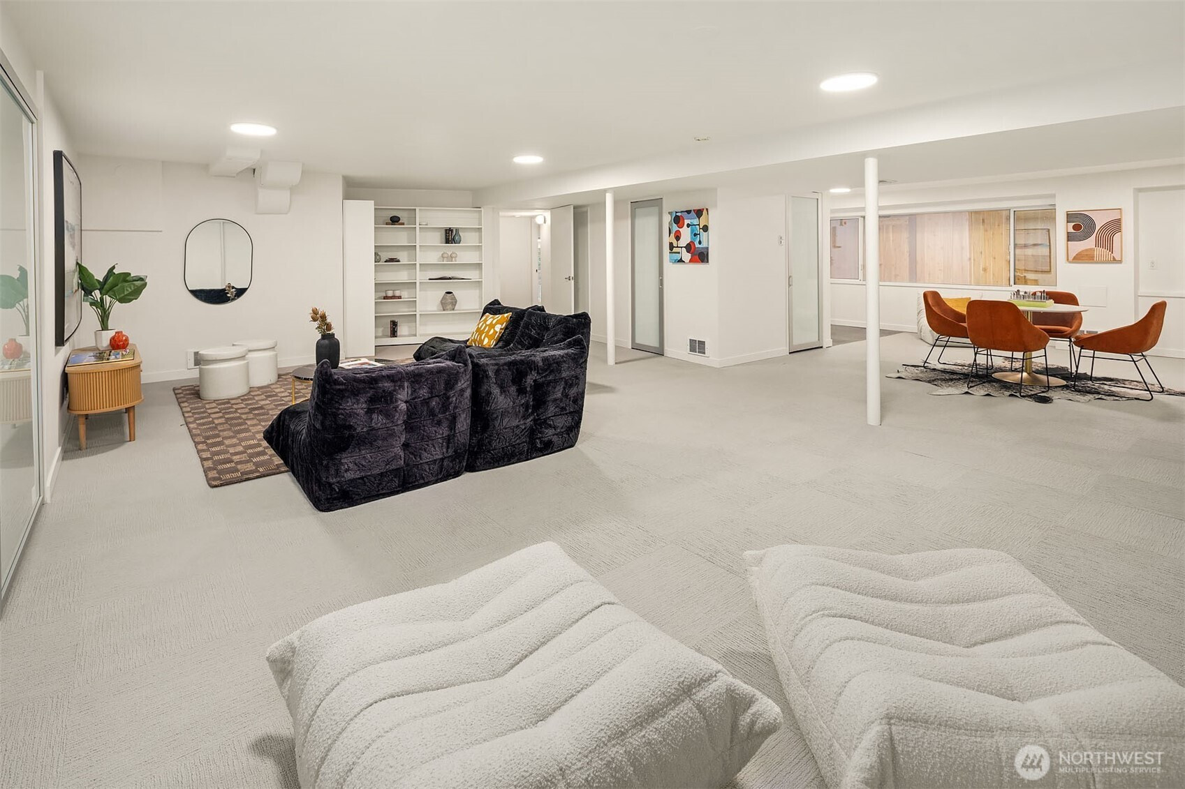 Enviably sited at the culmination of a premier view street, this impeccable mid-century modern showcases panoramic views of Lake Washington and Mt. Rainier. This 4 bed, 2 3/4 bath home, just blocks from Laurelhurst Beach Club puts modern artistry on display at every turn. The spacious and sun-drenched main level, anchored by a beautifully renovated chef’s kitchen is ideal for entertaining, everyday living and experiencing the theater of the seasons from the expansive view terraces. The main level primary bedroom with wood-burning fire and peaceful lake views is akin to a high-end spa retreat. The versatile lower level offers gracious spaces for recreation, a home office, crafts, and ample storage. Spectacular outdoor living-featuring two generous decks, patios, outdoor kitchen, and a two car carport. Welcome home to one of Laurelhurst’s jewels.