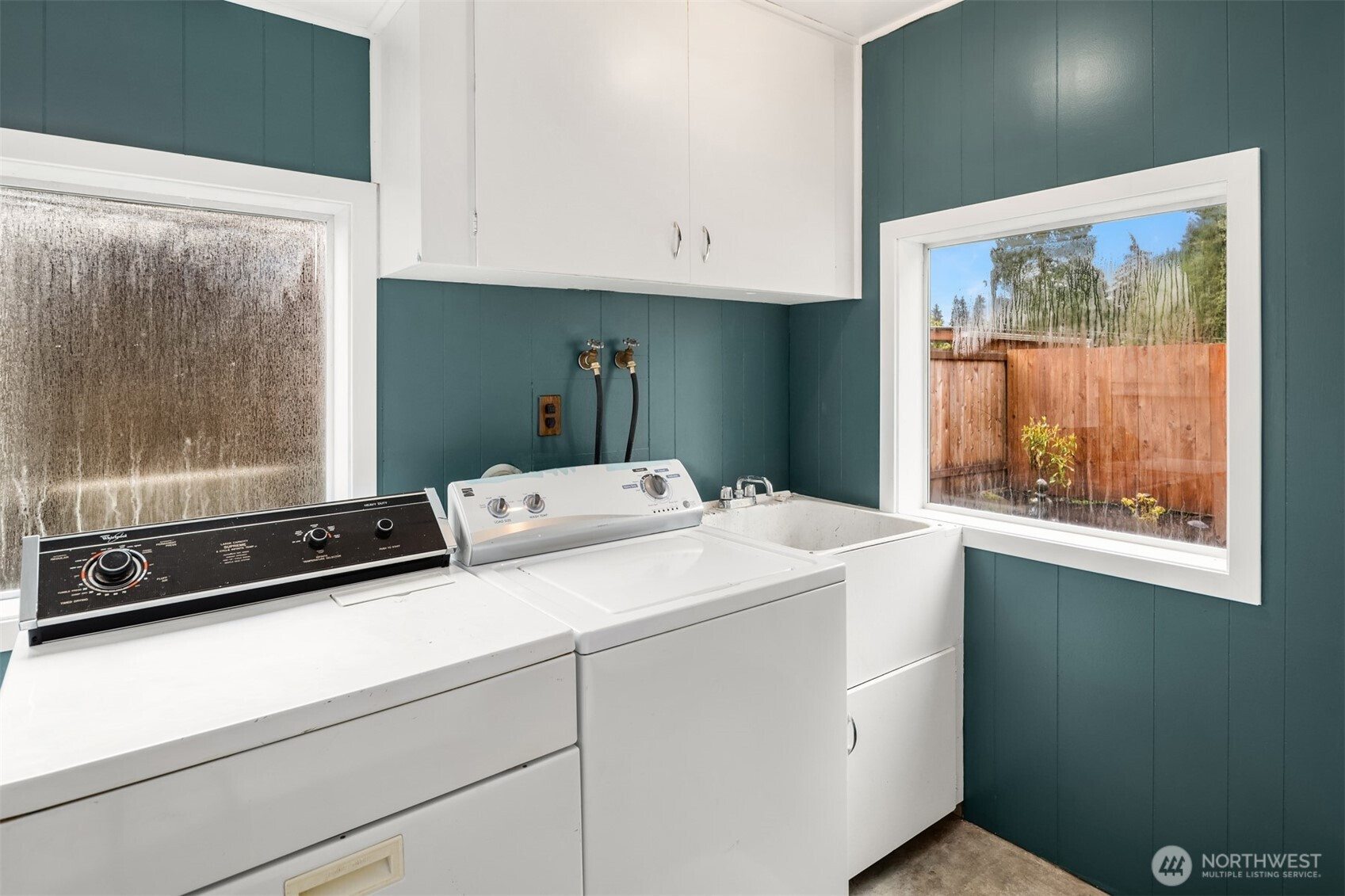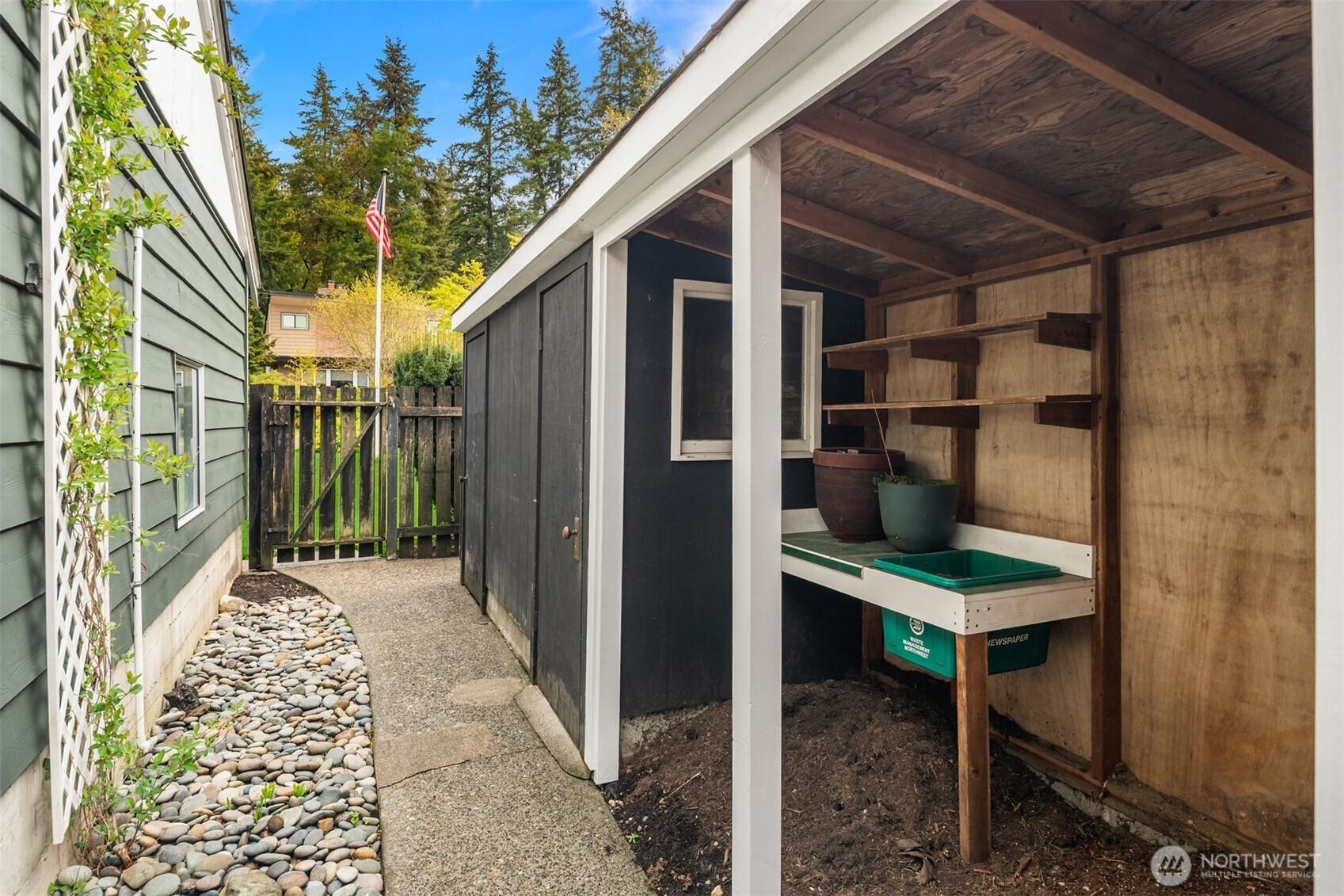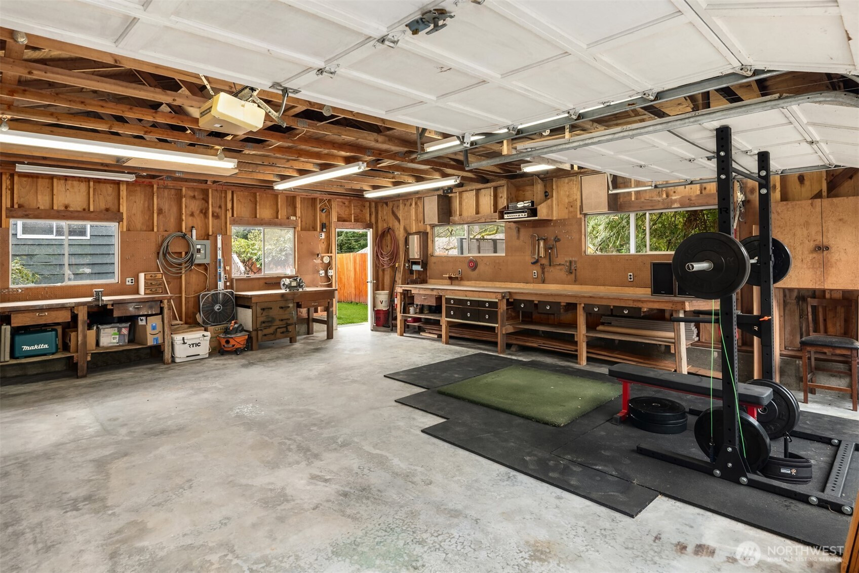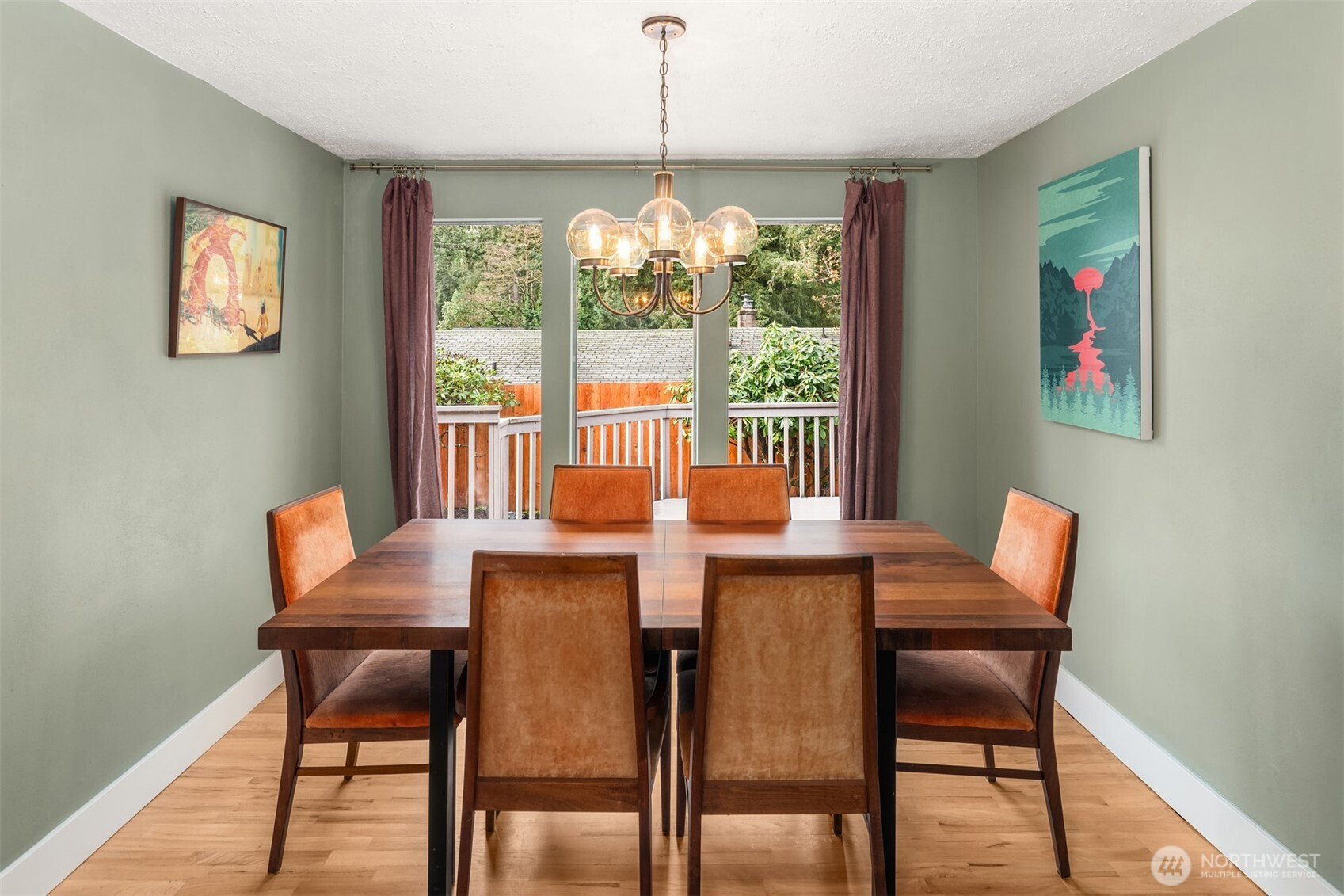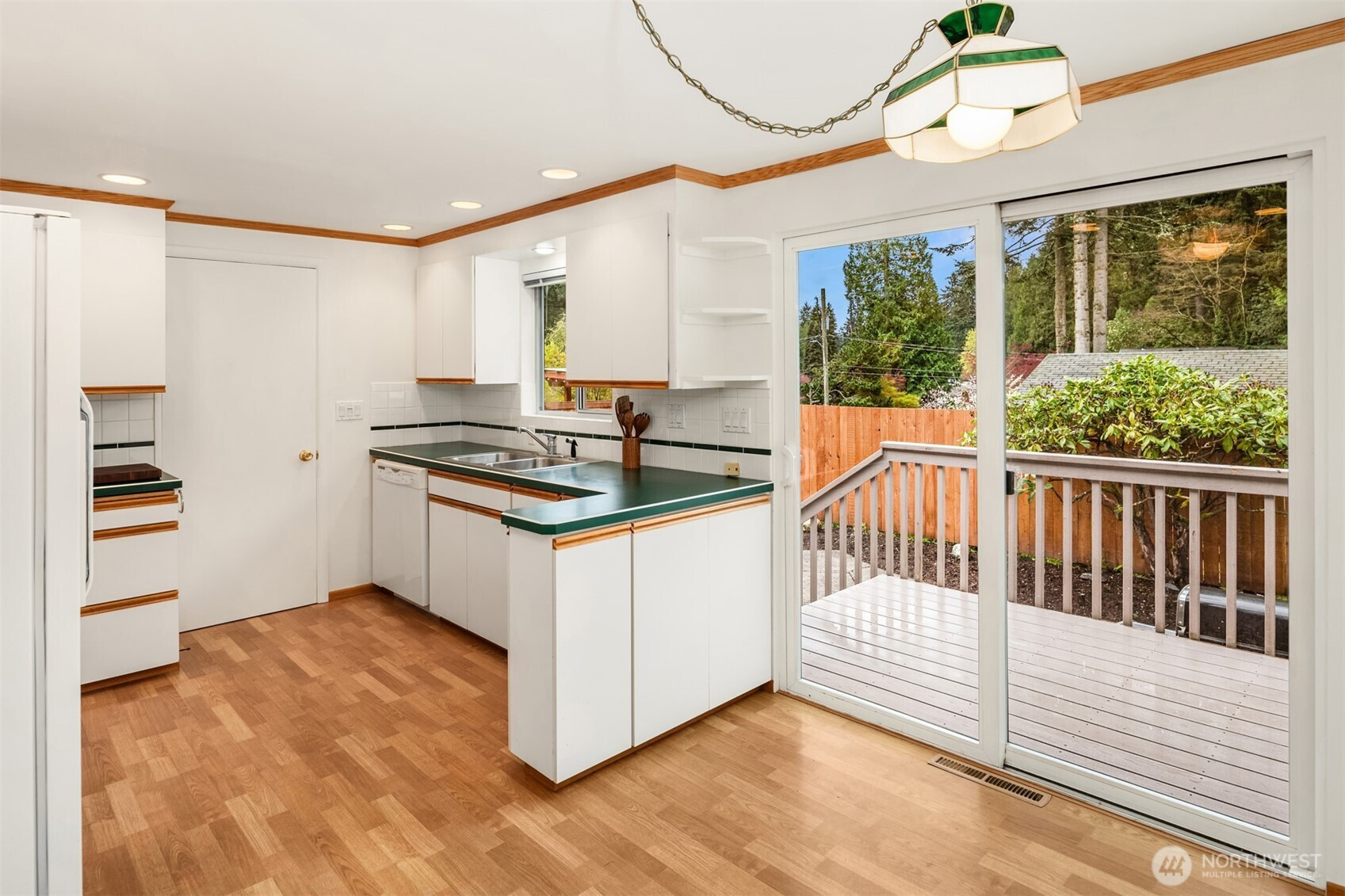 Quietly tucked away on a sprawling corner lot in Richmond Highlands, this move-in ready mid-century rambler boasts a massive 590sf detached garage + towering RV carport with utility hookups! Striking vintage curb appeal with two-tone designer paint, roman brick planter & raised front porch. Newly refinished light oak hardwoods, upscale millwork with 6" baseboards & fresh paint throughout. Slate foyer opens to spacious living room with huge picture window & impressive wall-to-wall brick fireplace. Spacious formal dining with stunning floor-to-ceiling windows. Custom kitchen with sleek euro cabinets, crown molding & breakfast nook with slider to sweeping entertainment deck. Two generous bedrooms with corner windows on main floor + upper 3rd bedroom/bonus room with open rail staircase. Private backyard with extended patio, mature gardens & potting shed. New high-efficiency furnace with heat pump & central A/C. This lovingly cared for gem is a very special find!