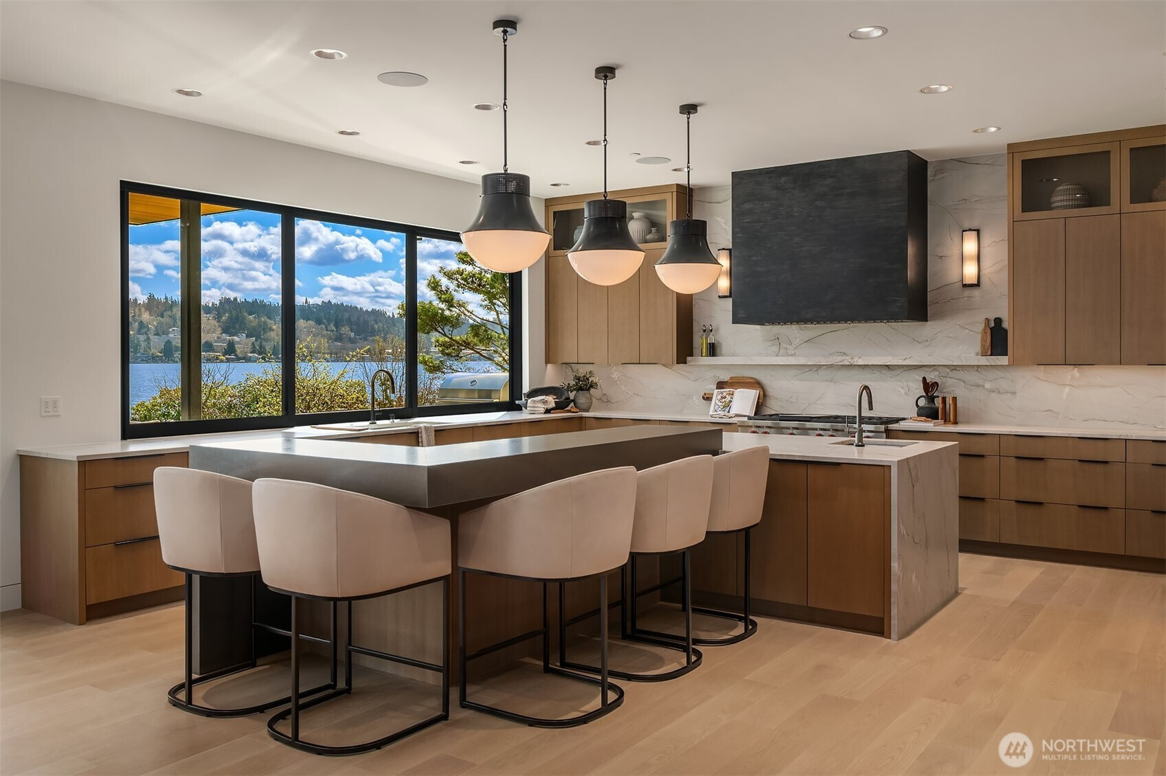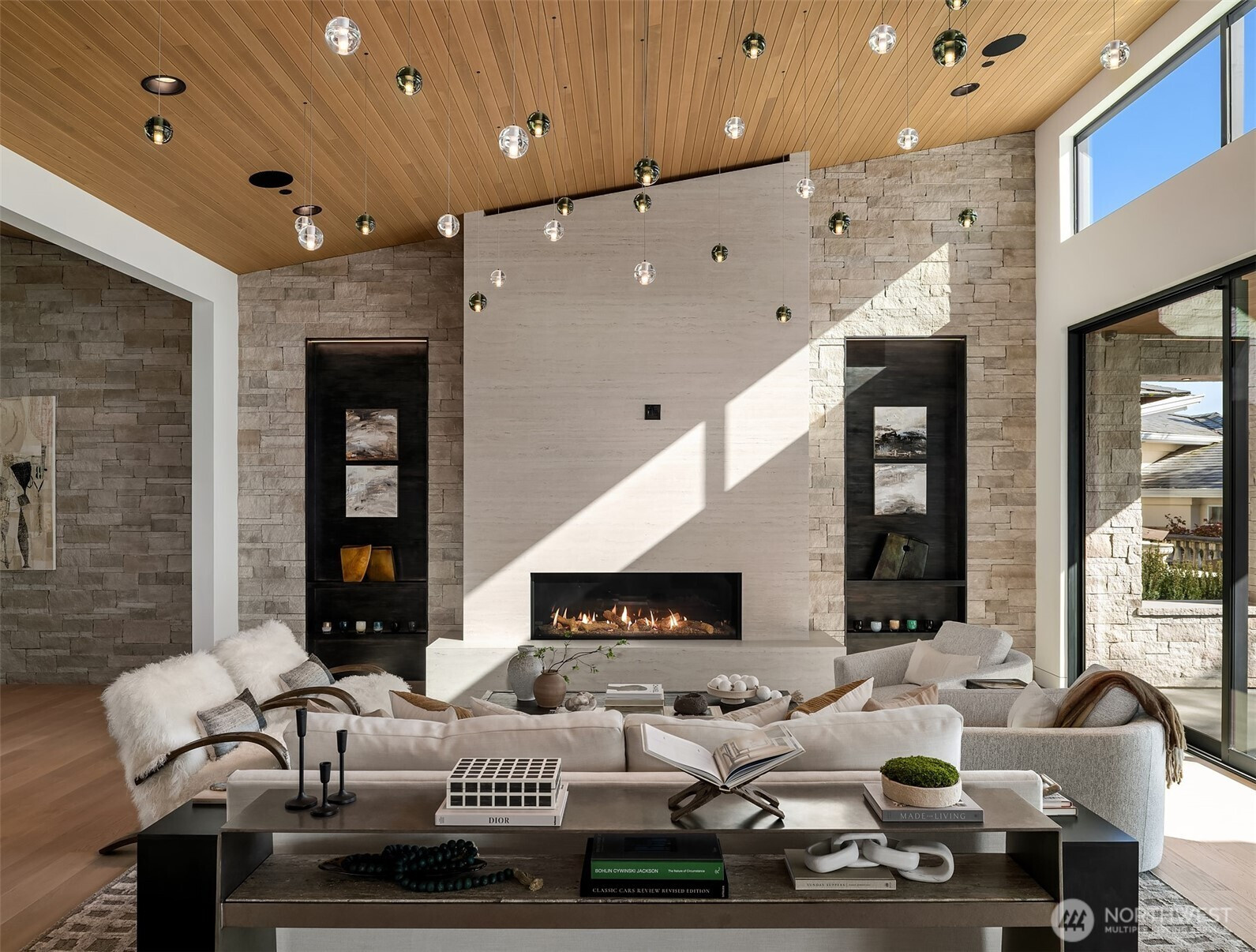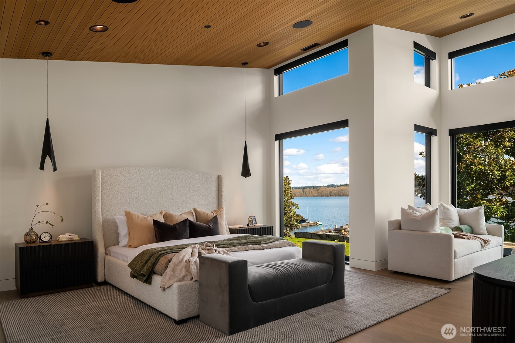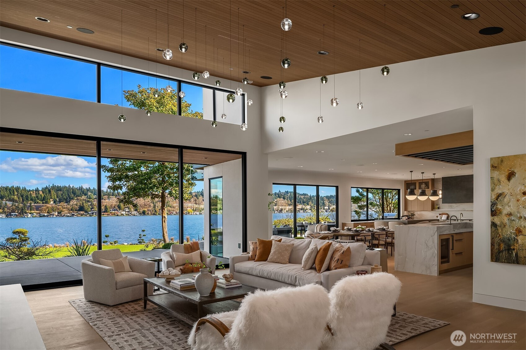 A rare Lake Washington waterfront offering on Mercer Island, this newly constructed home is built by MacPherson Construction & Design and resides on over 121 feet of sun-filled, no-bank shoreline along Lake Washington. Defined by exceptional natural light and sweeping, uninterrupted lake views, the home offers a seamless connection between indoor living and the water, delivering a rare experience of waterfront living. Thoughtfully designed for both entertaining and everyday living, it features vaulted wood ceilings, textured stone accents, a chef’s kitchen with butler’s pantry, a large wine room, and a stand-behind bar.A two-tier theater room, spacious bonus room, private office, four ensuite bedrooms, and a spa-inspired primary suite with an expansive walk-in closet elevate everyday comfort and livability. Heated covered outdoor living extends the seasons with a lake-view patio, spa, fire pit, seating area, and putting green, completing this exceptional waterfront retreat.