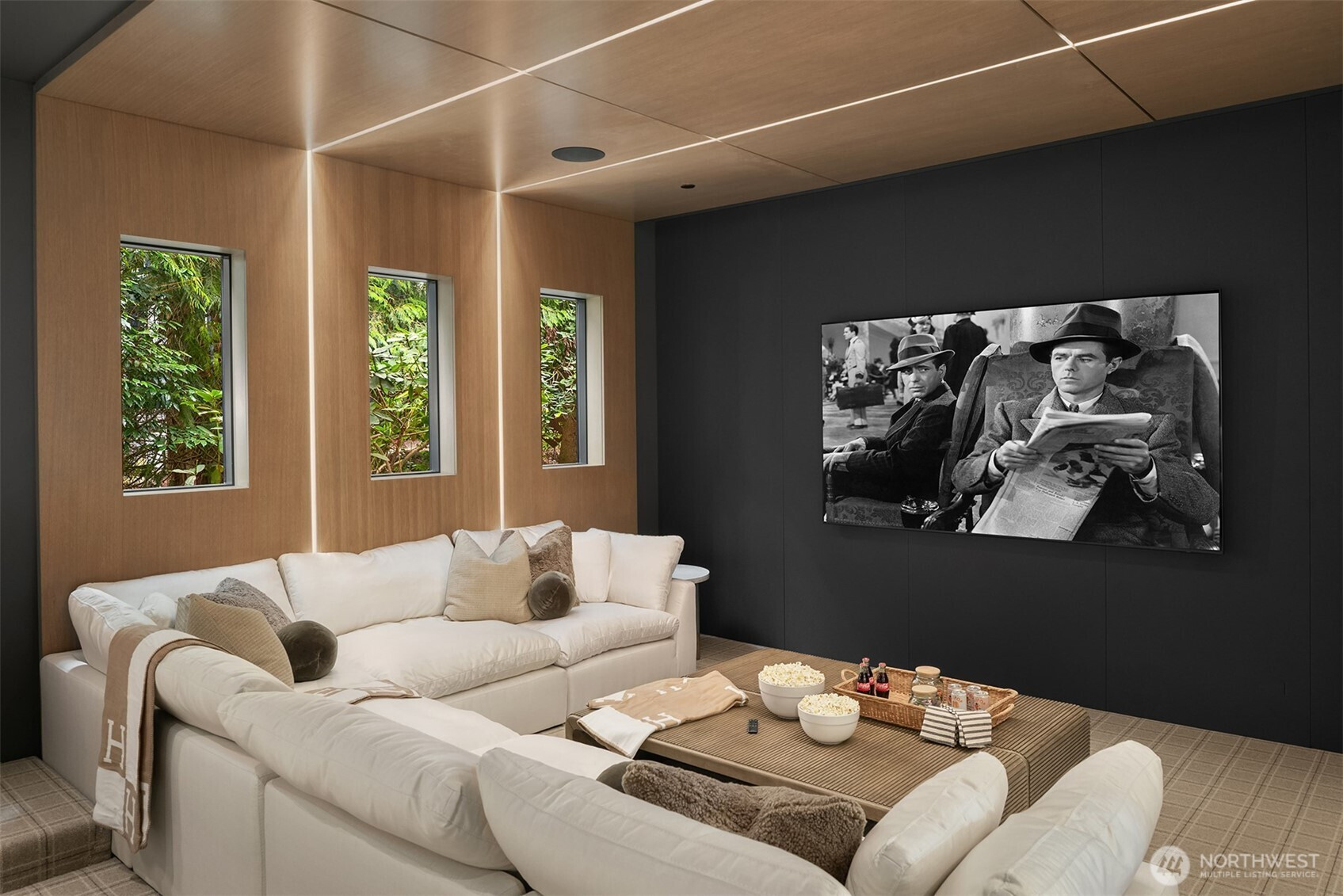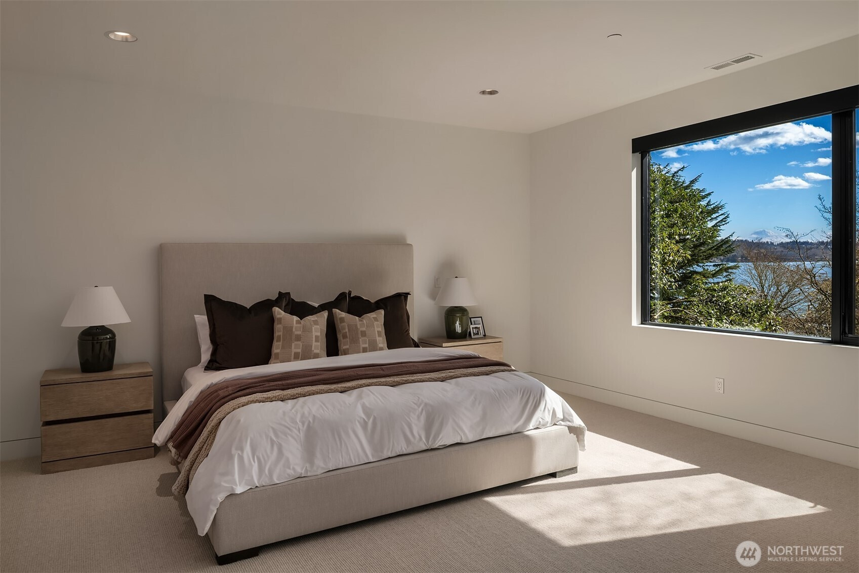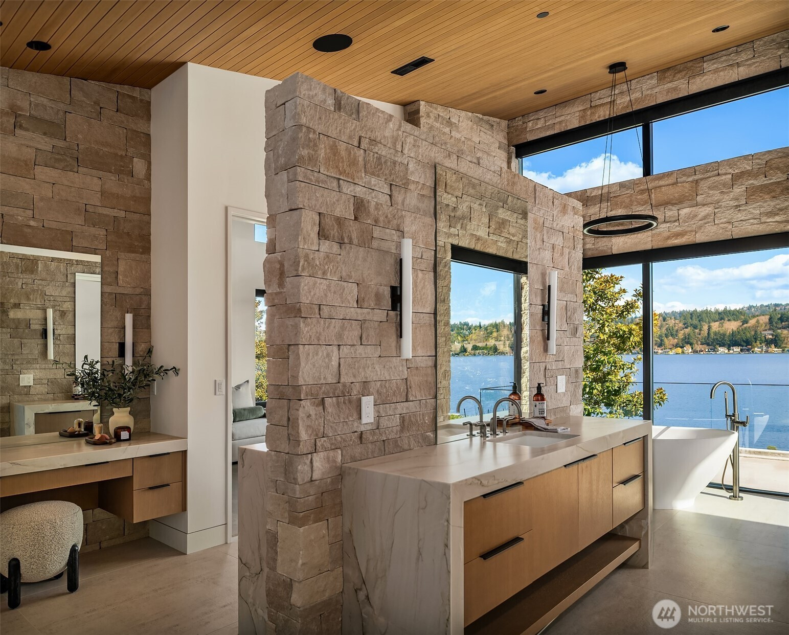 A rare Lake Washington waterfront offering on Mercer Island, this newly constructed home is built by MacPherson Construction & Design and resides on over 121 feet of sun-filled, no-bank shoreline along Lake Washington. Defined by exceptional natural light and sweeping, uninterrupted lake views, the home offers a seamless connection between indoor living and the water, delivering a rare experience of waterfront living. Thoughtfully designed for both entertaining and everyday living, it features vaulted wood ceilings, textured stone accents, a chef’s kitchen with butler’s pantry, a large wine room, and a stand-behind bar.A two-tier theater room, spacious bonus room, private office, four ensuite bedrooms, and a spa-inspired primary suite with an expansive walk-in closet elevate everyday comfort and livability. Heated covered outdoor living extends the seasons with a lake-view patio, spa, fire pit, seating area, and putting green, completing this exceptional waterfront retreat.