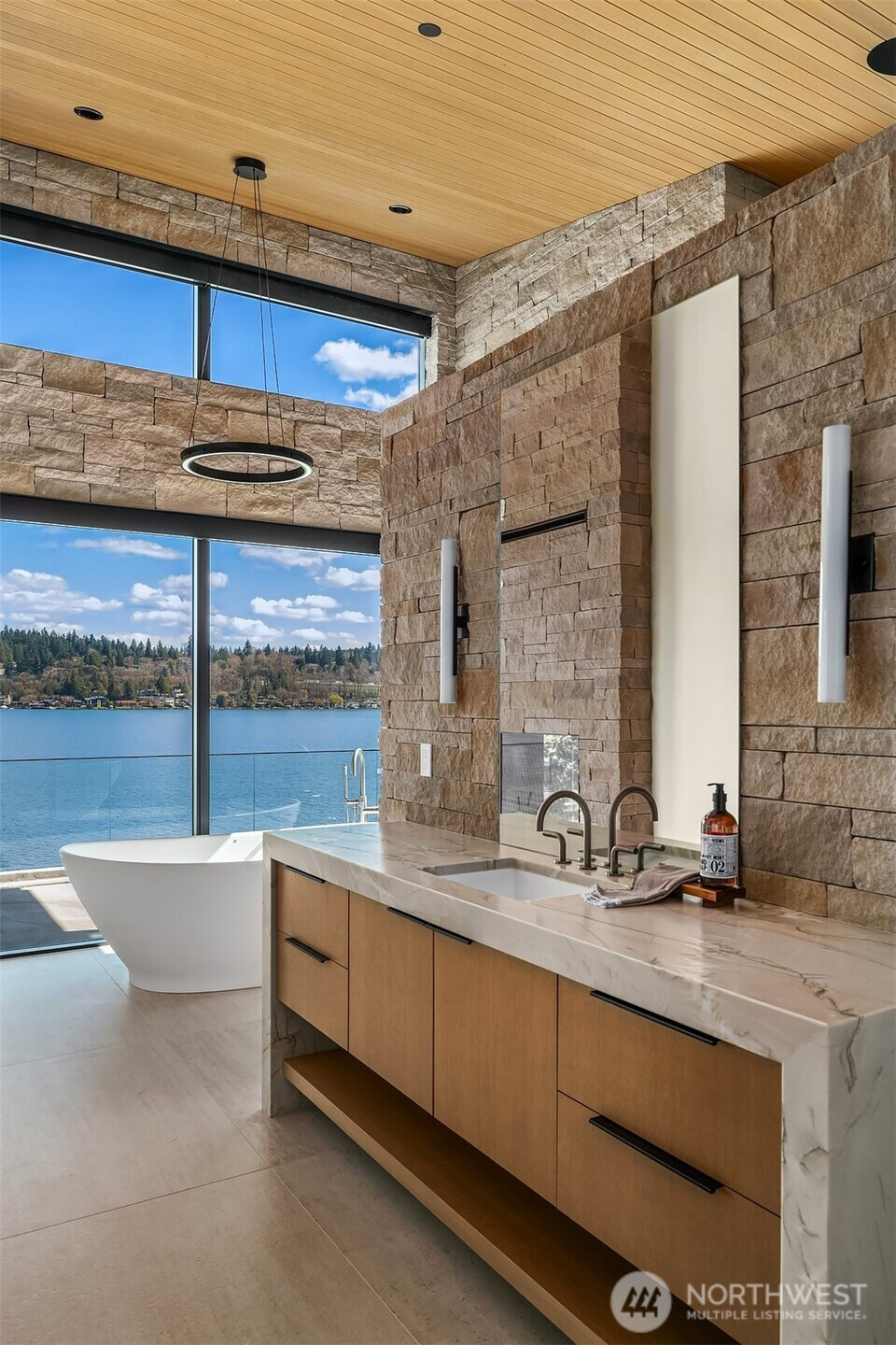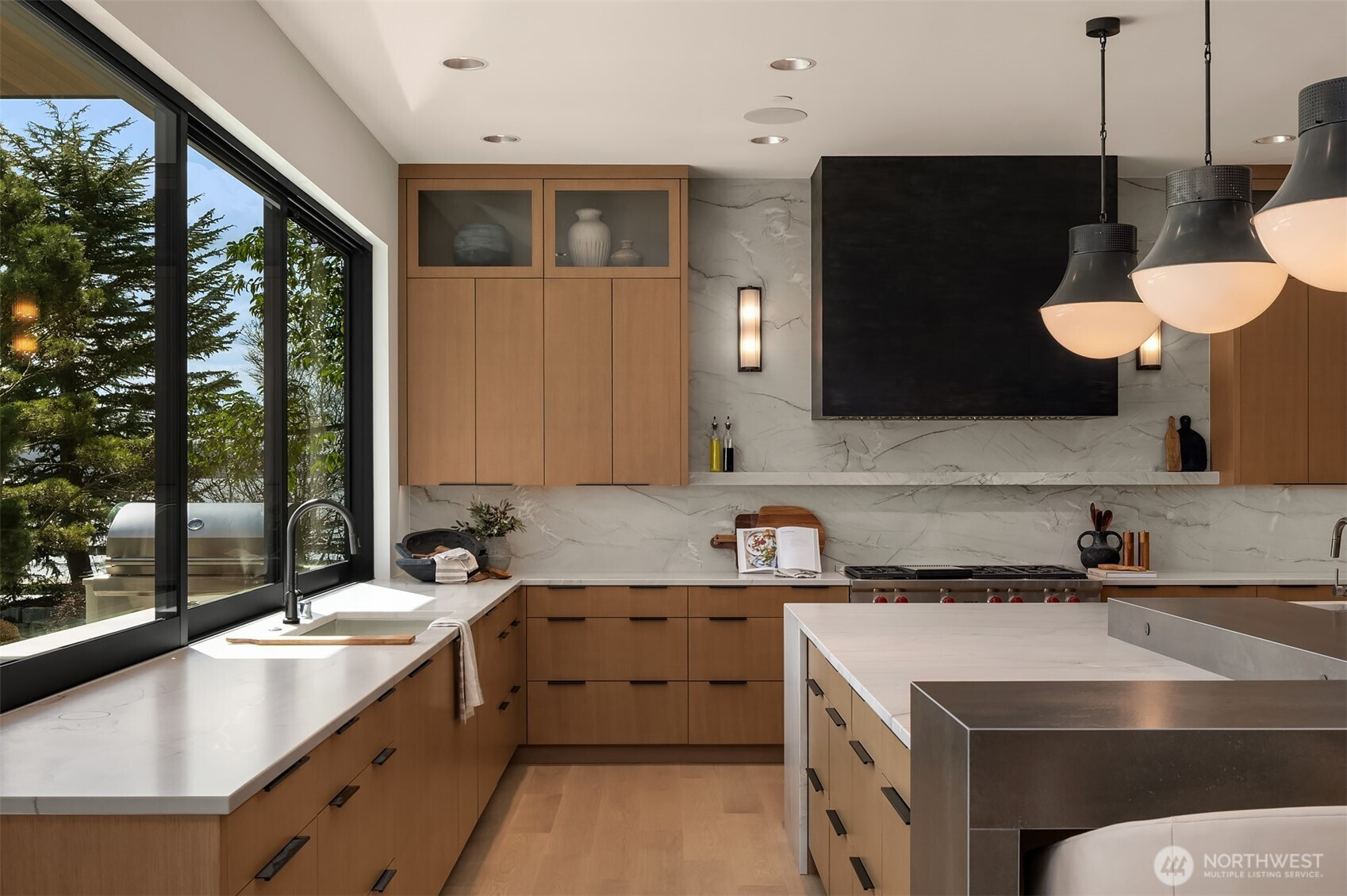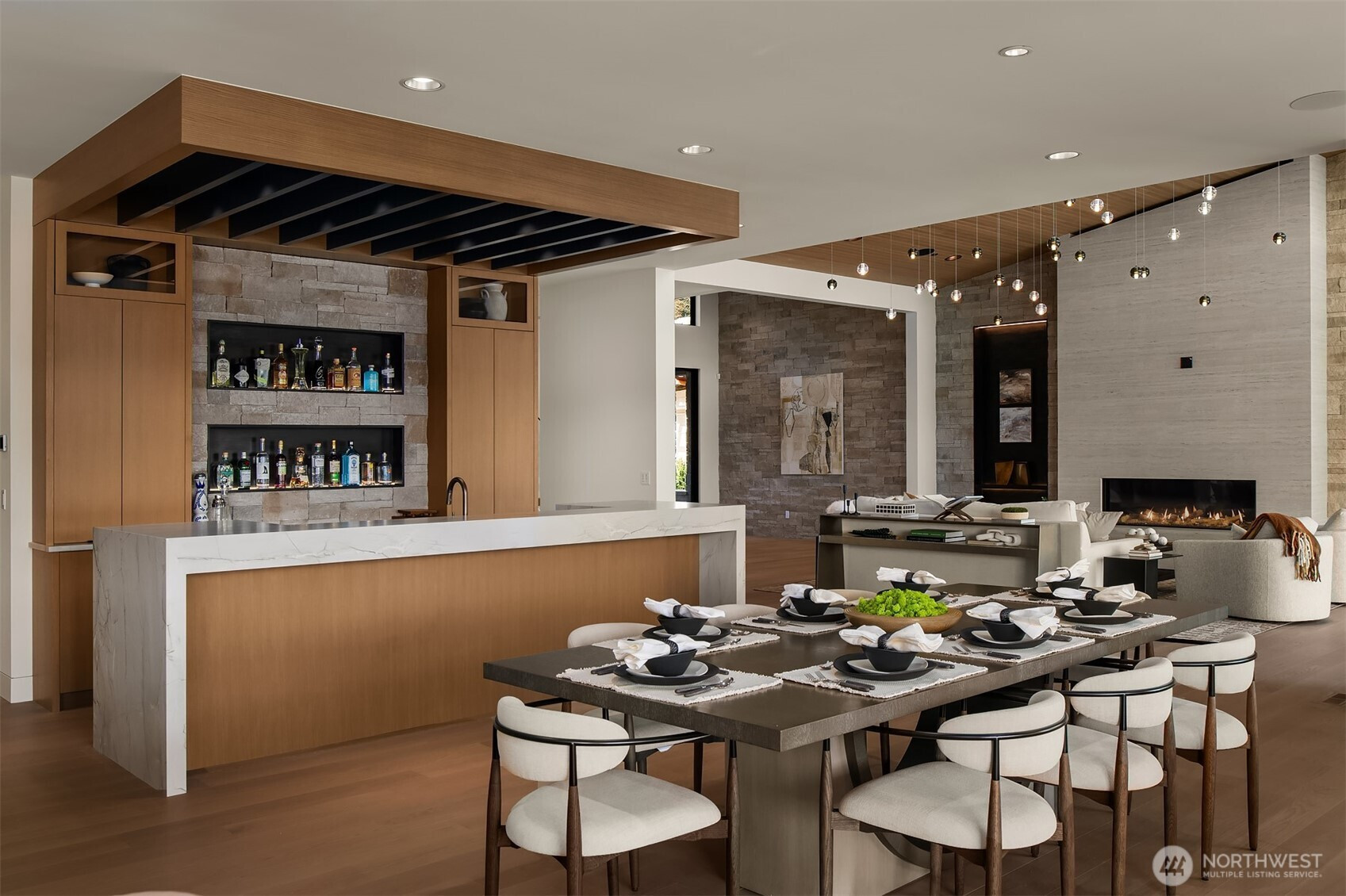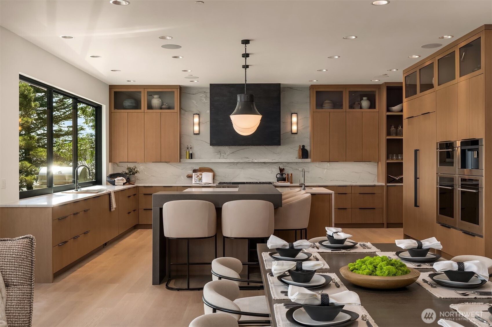 A rare Lake Washington waterfront offering on Mercer Island, this newly constructed home is built by MacPherson Construction & Design and resides on over 121 feet of sun-filled, no-bank shoreline along Lake Washington. Defined by exceptional natural light and sweeping, uninterrupted lake views, the home offers a seamless connection between indoor living and the water, delivering a rare experience of waterfront living. Thoughtfully designed for both entertaining and everyday living, it features vaulted wood ceilings, textured stone accents, a chef’s kitchen with butler’s pantry, a large wine room, and a stand-behind bar.A two-tier theater room, spacious bonus room, private office, four ensuite bedrooms, and a spa-inspired primary suite with an expansive walk-in closet elevate everyday comfort and livability. Heated covered outdoor living extends the seasons with a lake-view patio, spa, fire pit, seating area, and putting green, completing this exceptional waterfront retreat.