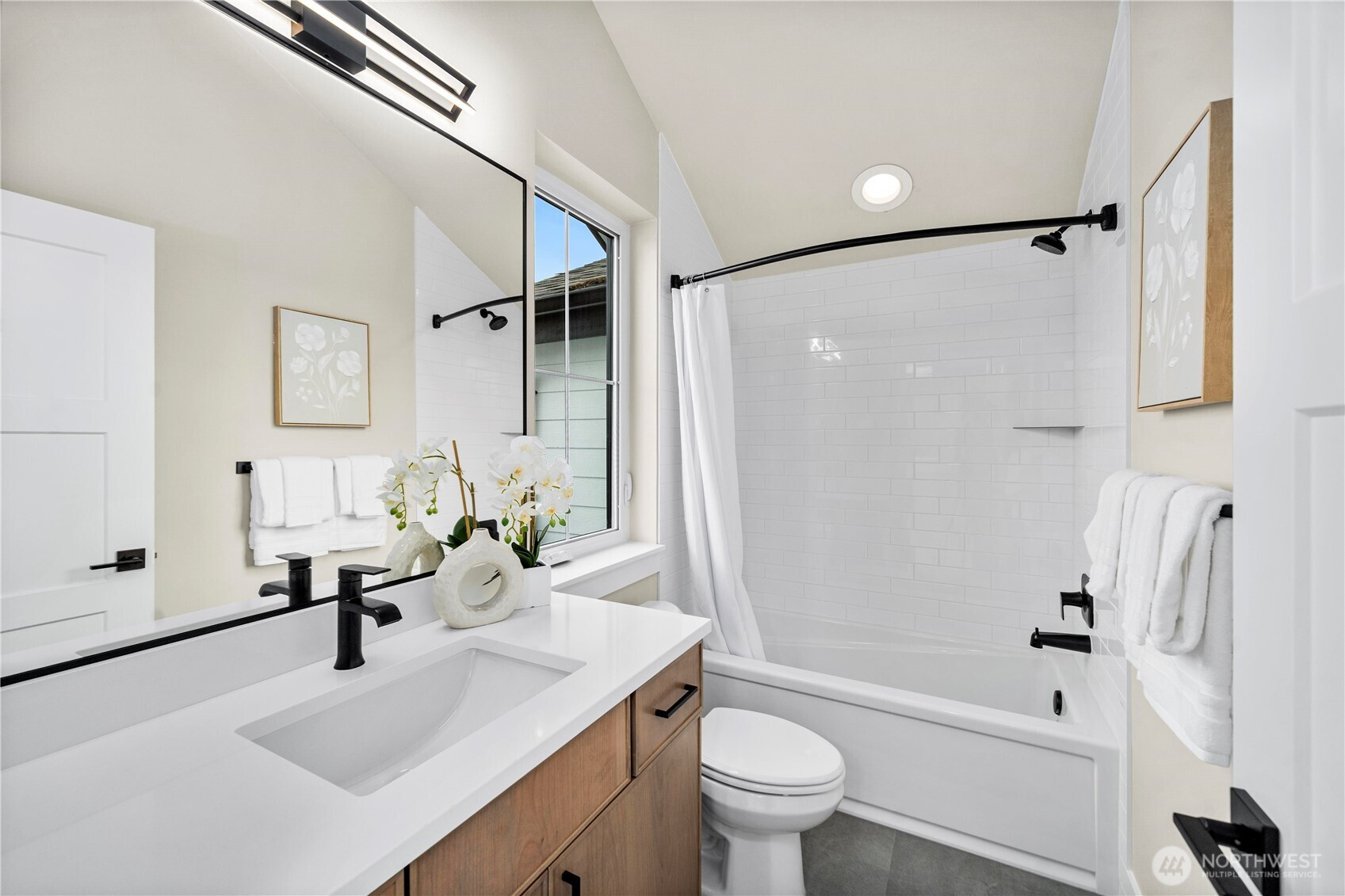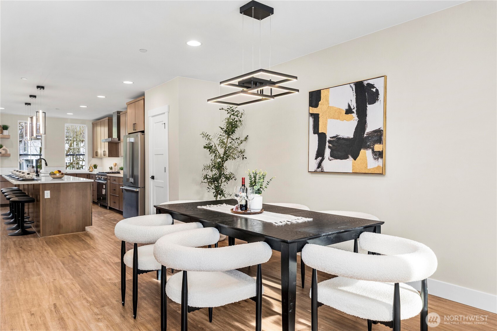 Come see this amazing high quality new build , by 40-year local builder Hultquist Homes. 2 private units set next to green belt with high end finishes throughout. Standards include halo built-in phone charger, Ring Doorbell and EV-charger outlet, quartz counter w/ deco tile backsplash, Huntwood soft close cabinets, modern LED lights, tankless hot water, fully-finished 2-car garage, high-end stainless kitchen appliances, Moen faucets, built-in vacuum system. All this with a fully fenced yard, 4th floor roof top deck, downtown Issaquah, walk to everything.