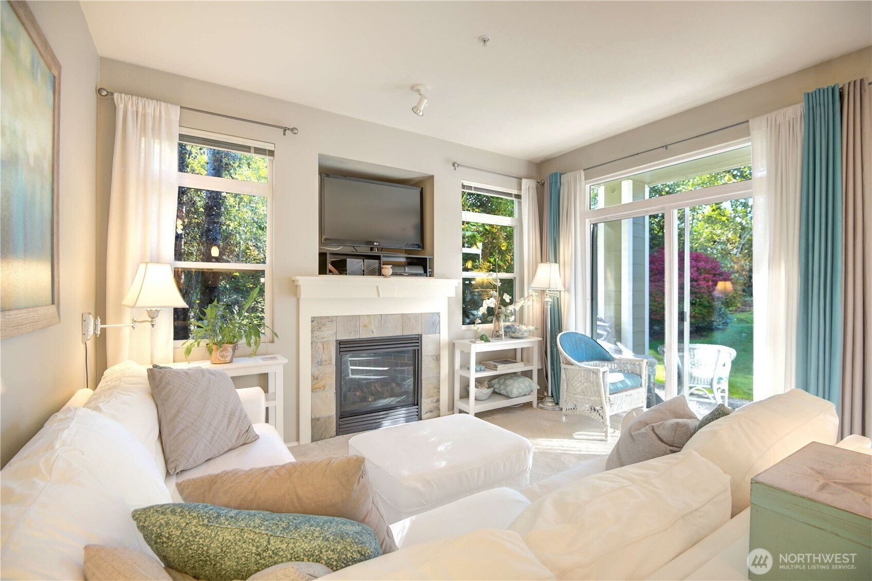 Rare Vintage condo! Quiet natural setting; lush wraparound greenbelt; SE exposure; totally remodeled kitchen. 3 bedrooms + flex space for den or ...; 2 full baths; main floor, no steps; direct access to garage.Great room boasts open dining, living, breakfast bar and kitchen. Spacious layout, 9’-tall ceilings, abundant natural light. Fully furnished turn-key option. New premium carpet included. Economical mini-split heating and cooling; gas fireplace and water heater work if power goes out; laundry room; storage. Community amenities: large park, plenty of guest parking and clubhouse with entertaining areas, hot tub, exercise room and pool. HOA dues include earthquake insurance, water and sewer. Enjoy this one owner ‘home like’ condo for relaxing, day-to-day living and entertaining.