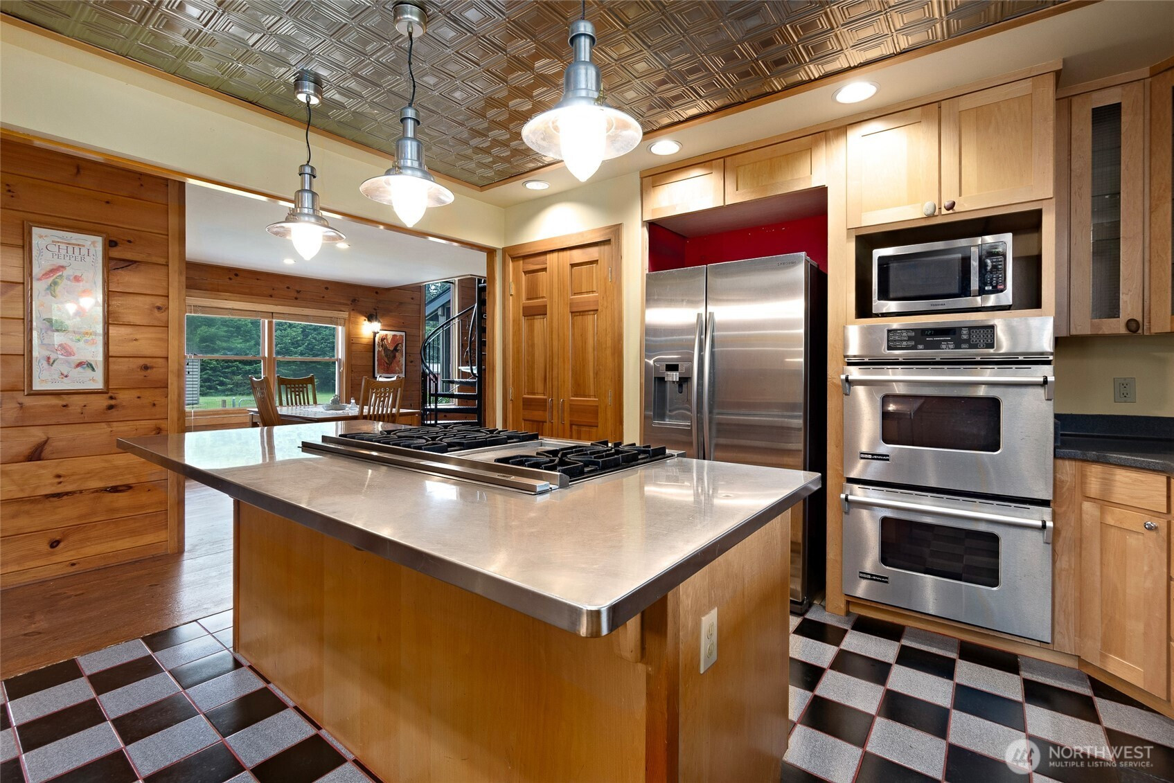 Vashon Island Retreat – Where Craftsmanship Meets Island Living Your Pacific Northwest sanctuary on 4.6 sun-drenched, level acres! This custom log home blends rustic charm with modern luxury. Cathedral ceilings, authentic river rock fireplace, and gleaming pine floors anchor the great room. French doors open to your deck and outdoor pizza oven. Chef's kitchen boasts: Viking range, double ovens, wine fridge, Bosch dishwasher. The 2,420 sq ft, 3-bed, 2.5-bath home includes a primary suite with spa bath, mudroom with shower, bonus room, and established garden. Fully fenced property features chicken coop, small barn, divided pastures, and spacious yurt—perfect for hobby farming, horses, or glamping business. Gateway to 350 acres of Maury Island Marine Park sits across the street!