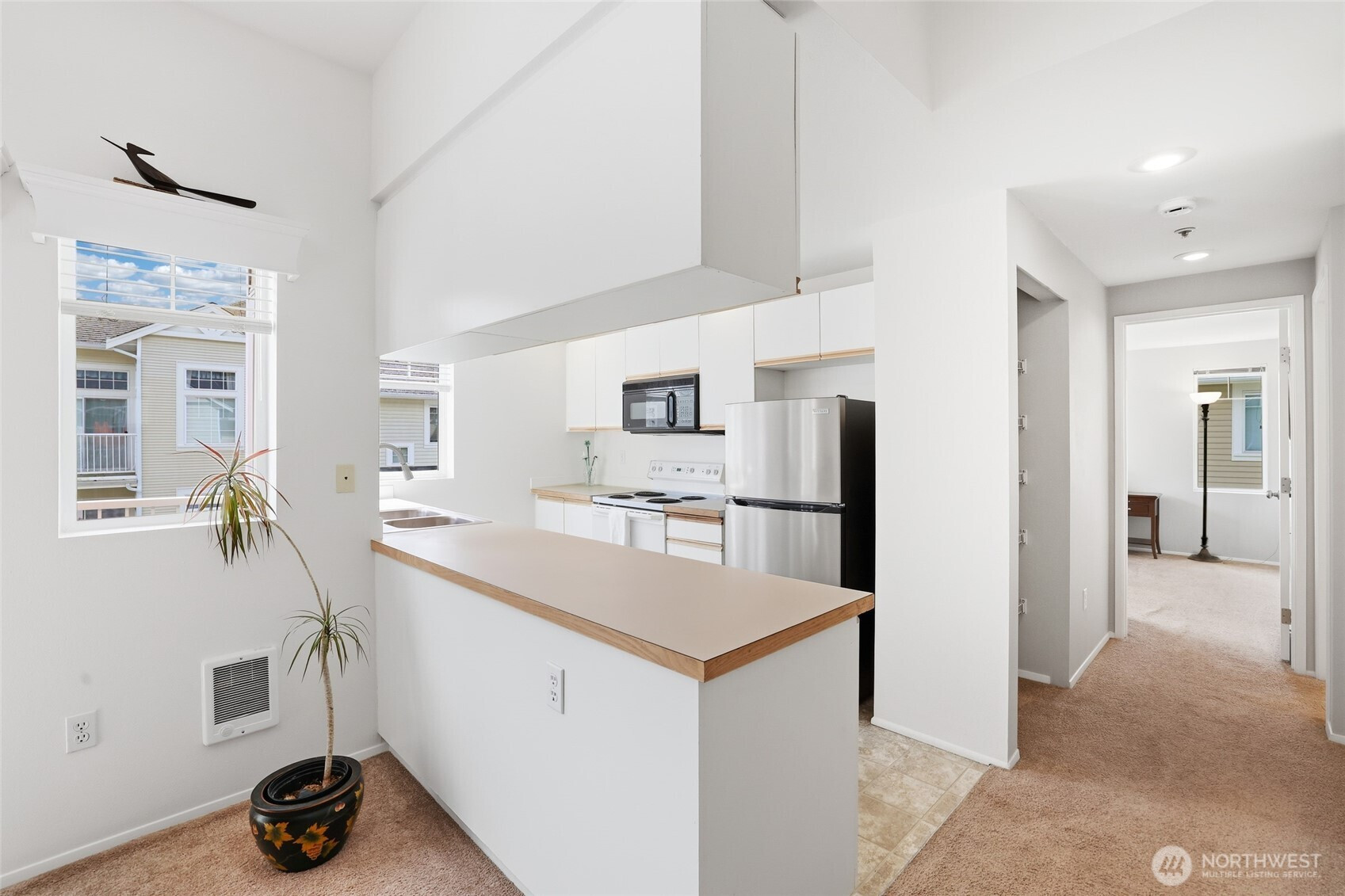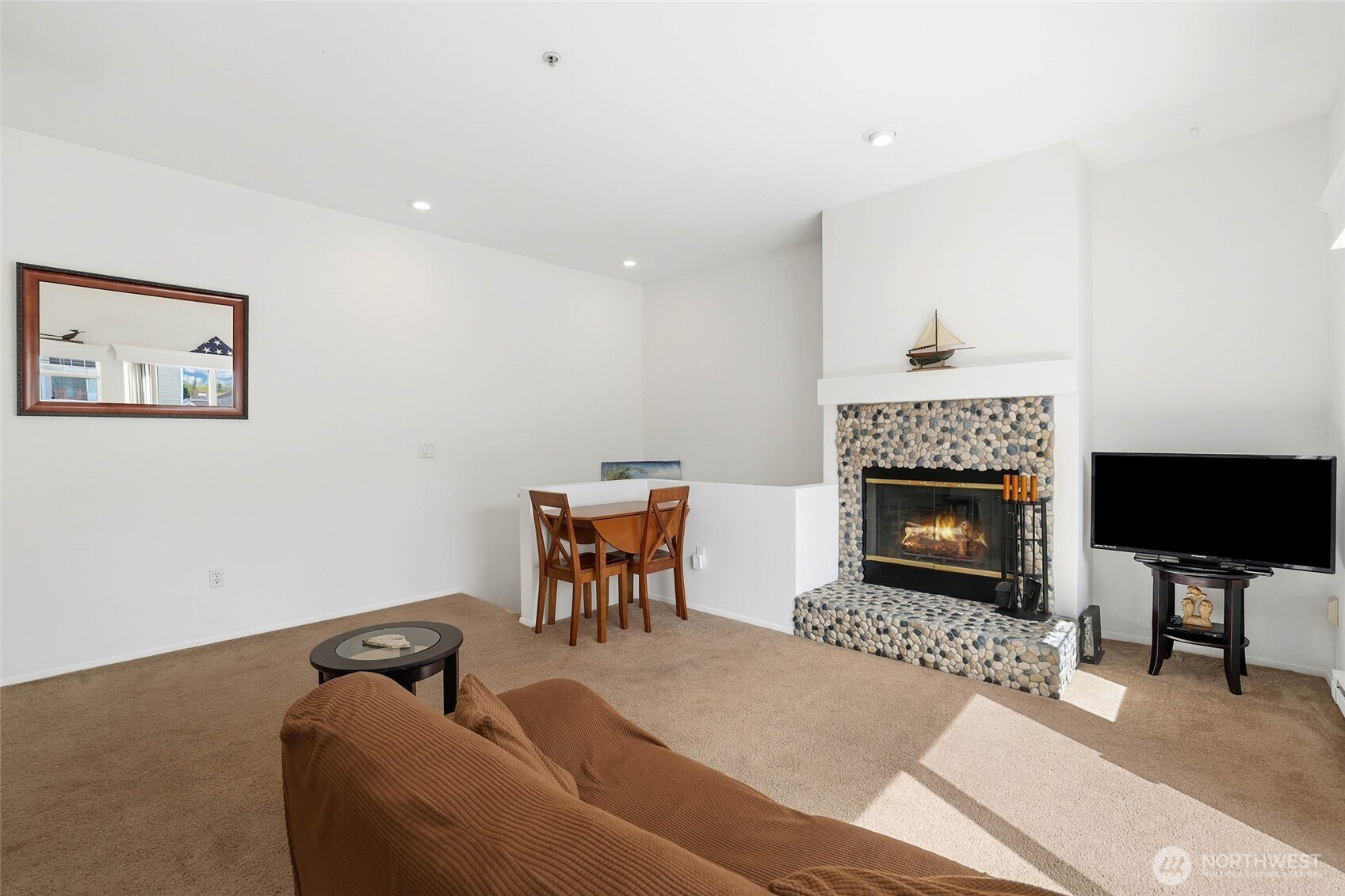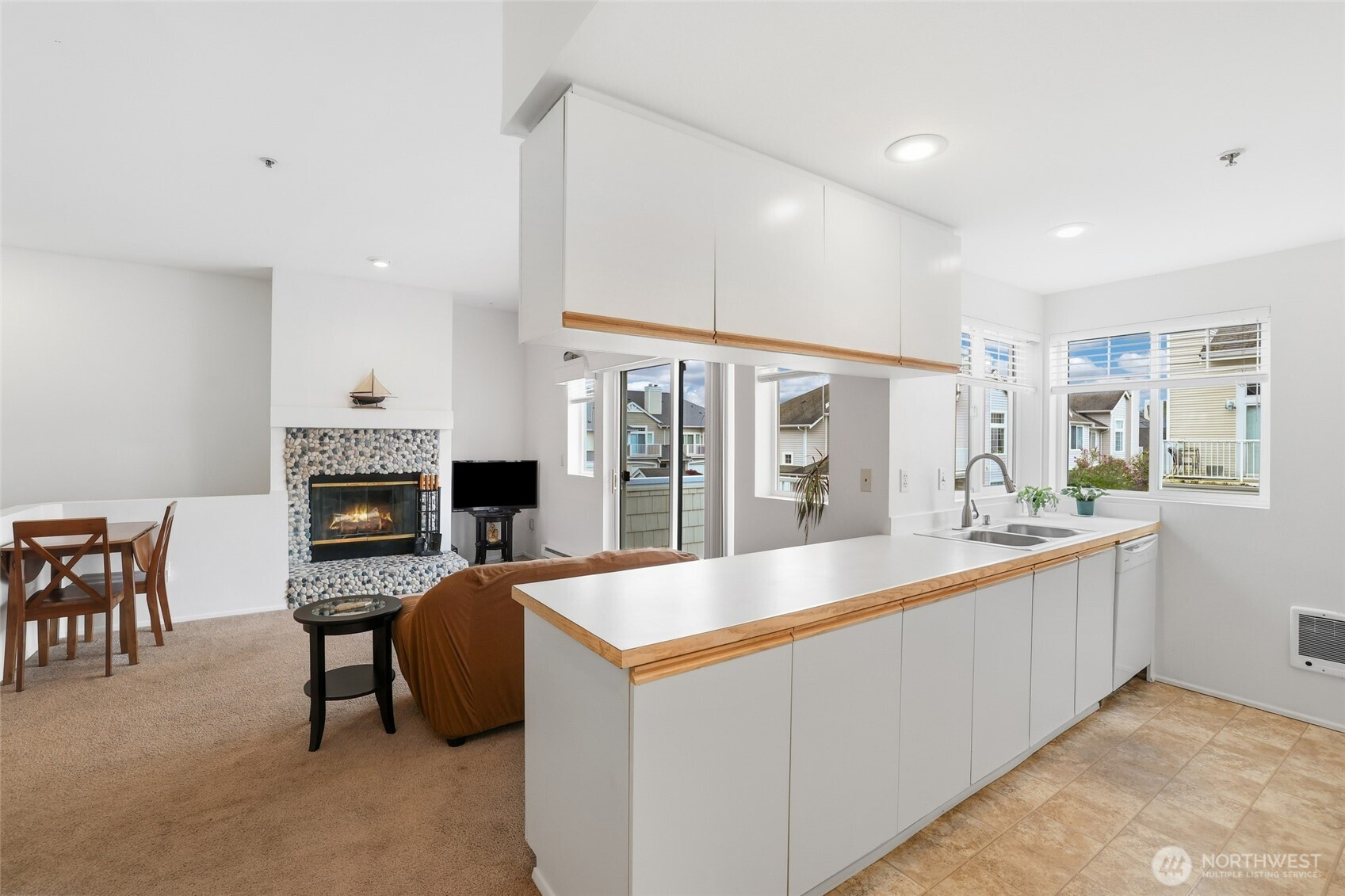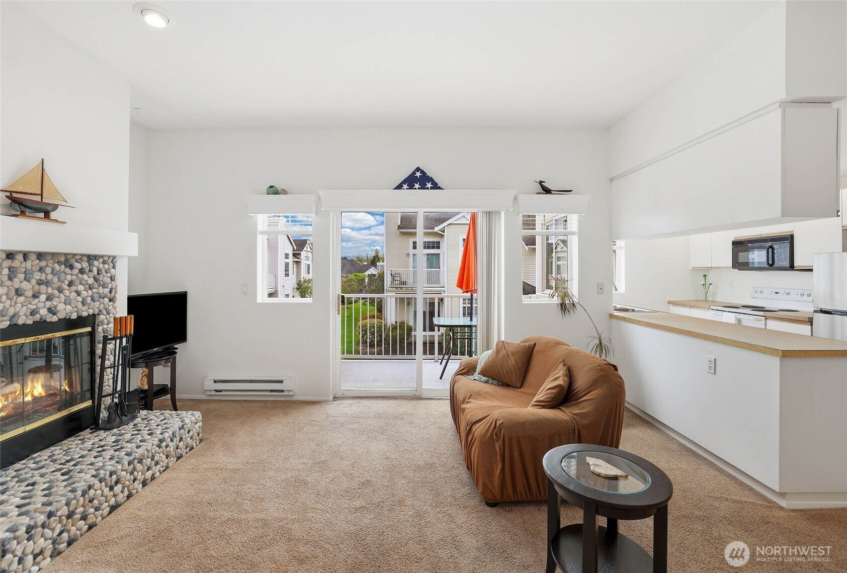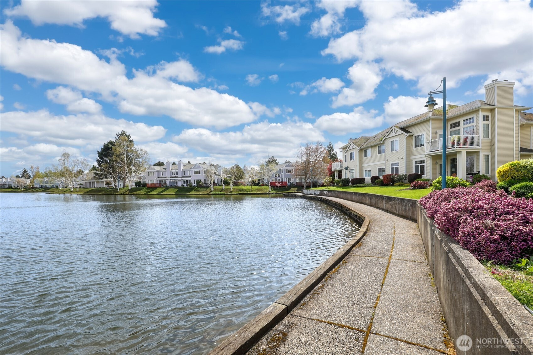 Welcome to this light and bright townhome style condo in West Bay at The Lakes! Thoughtfully designed with tall ceilings and very functional floor plan. Features an open concept great room highlighted by the custom stone, wood burning fireplace. Lovely kitchen with plenty of cabinet and counter space. Large bedroom and walk-in closet. Spacious full bath and in-unit washer & dryer. All appliances stay. Relax on your balcony in this peaceful community. Attached garage has extra storage space plus plenty of guest parking available. Updates include: newer roof, entry way tile, kitchen faucet, bathroom sink & faucet, blinds in living room & kitchen, garage door opener and paint in most rooms. No Special Assessment. Clubhouse with kitchenette and entertaining space, fully equipped gym & sauna. Enjoy all that The Lakes in Kent has to offer, with sidewalks to stroll the grounds and nearby views of Mt. Rainier, wildlife, beautiful landscaping, spring flowers and fall color. Close proximity to I-5 and HWY 167, Interurban trail, transit, Light Rail and Sounder, Kent Station, Riverbend golf complex, ShoWare Center and Kent Valley Ice Center. Mortgage savings may be available for buyers of this listing.