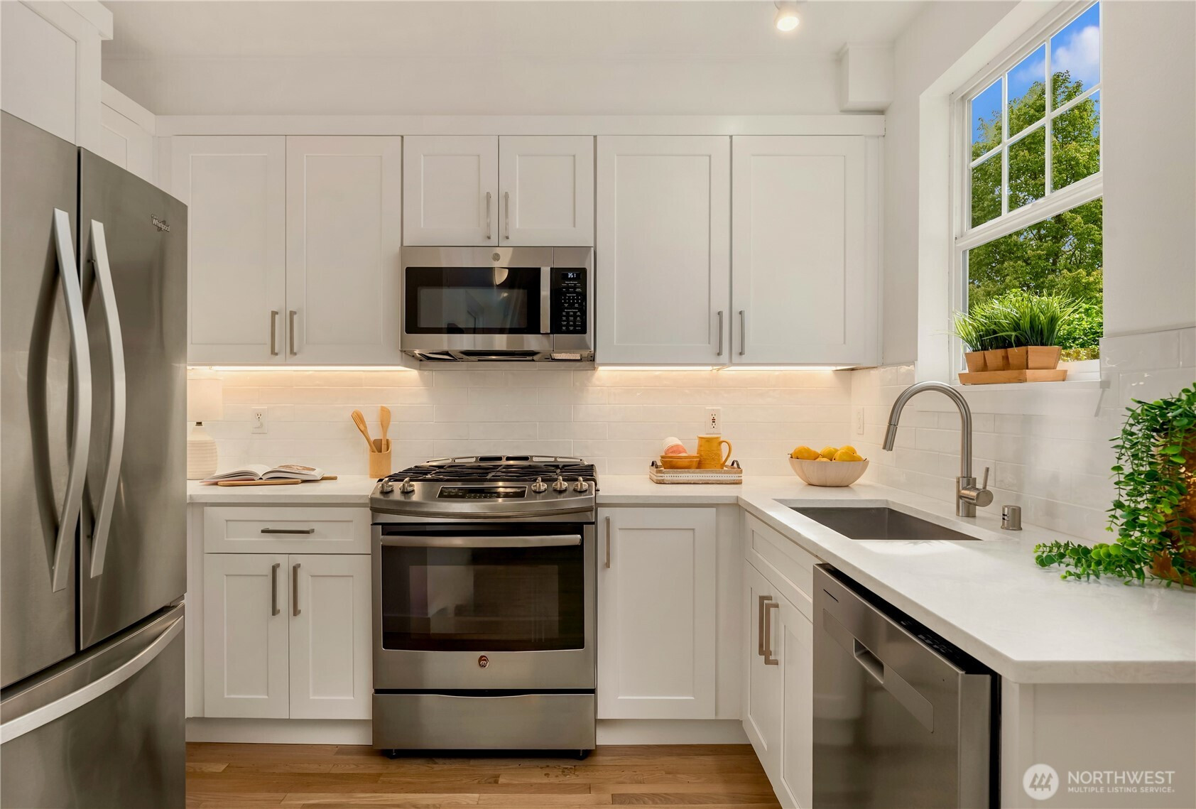 Welcome to this beautifully updated townhome in the heart of West Seattle. This inviting home features a brand-new kitchen complete with sleek quartz countertops, stylish under-cabinet lighting and modern finishes perfect for everyday living and entertaining. Enjoy the warmth of refinished hardwood floors and plush new carpeting throughout, complemented by fresh interior paint that gives the entire space a bright, contemporary feel. Cozy gas fireplace, private deck in the living room and primary bedroom, gated entry, convenient garage parking and additional storage. With excellent transit options nearby, including the C-Line right outside your front door, commuting is a breeze while still enjoying the charm of the of the wonderful Seaview neighborhood. Close to both the Junction and Morgan Junction, you don't want to miss this move-in-ready gem.