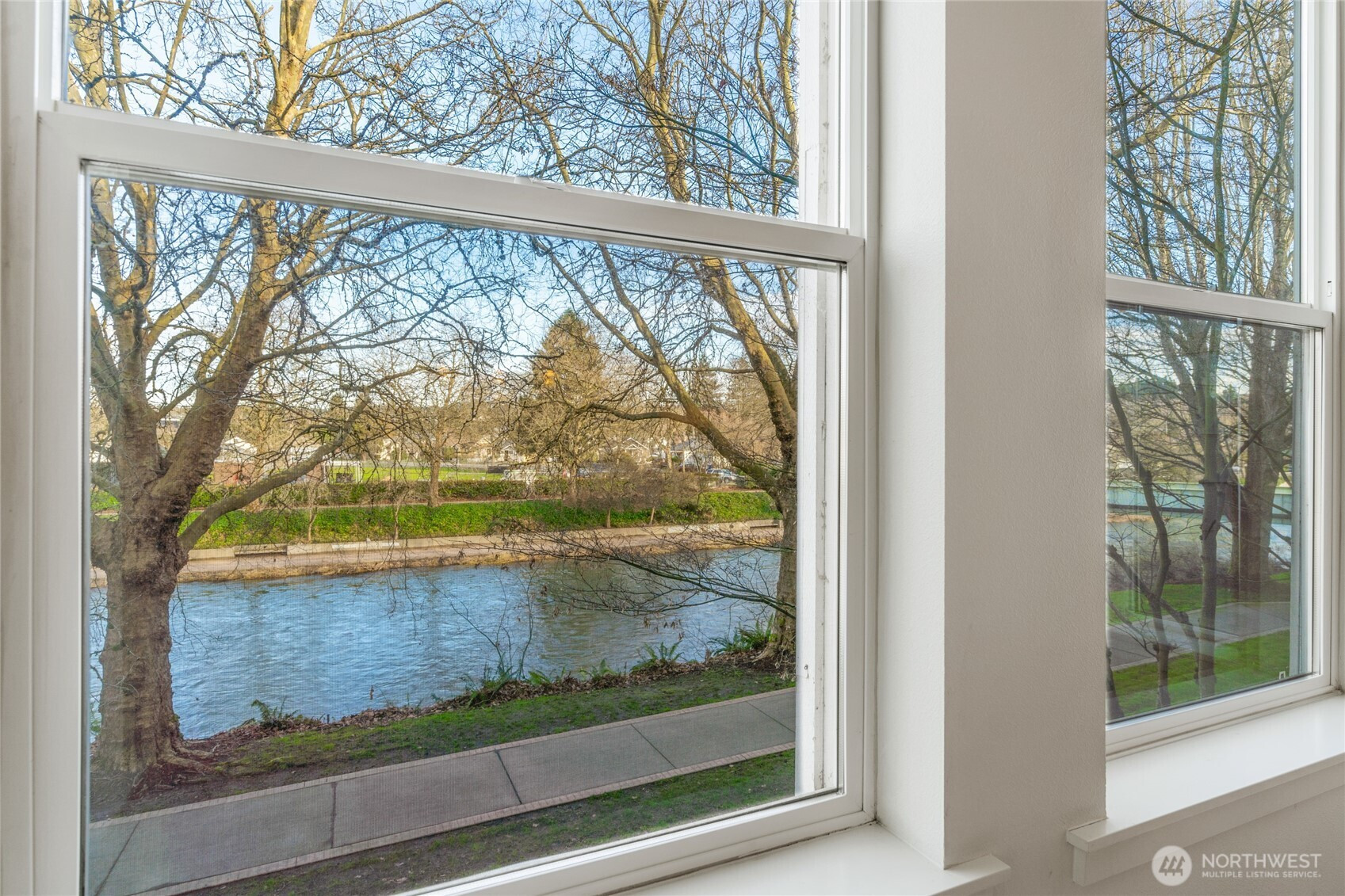 Impeccable 2 bed / 1.75 bath condo with stunning Cedar River and trail views. Enjoy reading a book on the covered balcony while taking in peaceful water views and sound, or sip your morning coffee in front of the fireplace while overlooking the view through expansive windows. Light-filled interior features soaring 9-foot ceilings and a covered patio for year-round enjoyment. Truly move-in ready with brand-new carpet and fresh interior paint throughout. The well-appointed kitchen offers bar seating, abundant cabinetry, a spacious pantry, new flooring, and new stainless steel appliances including refrigerator, dishwasher, and microwave. Open-concept layout with in-unit washer and dryer. Secure building with 1 designated garage parking and a huge, assigned storage room. Community amenities include a library with seating area, elevator, outdoor patio, and a scenic walking trail along the Cedar River. Walk to downtown Renton, coffee shops, transit center, shopping and restaurants. Building superbly maintained by a strong HOA.