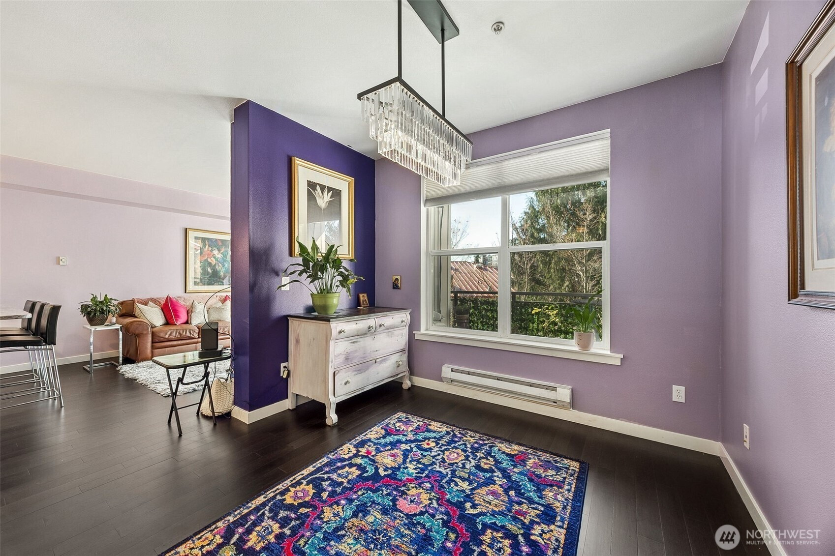 Located in the heart of Renton this stunning one level, 1 bedroom plus den condo offers all you are looking for! Upon entering the home you will notice the soaring 9 foot ceilings & gorgeous engineered hardwood floors, primary bedroom is extra large with walk in closet, spacious remodeld full bathroom with gorgeous granite counter tle floors, light bright & open living room with elegant stone fireplace, large gourmet kitchen offers stunning granite counters/newer stainless appliances/eat in island/ample cupboard space & pantry, beautiful dining room(or could be flex space), office/den, in unit washer & dryer, reserved garage paking space & large storage unit. Community amenities are endless: Library w/sitting area, community garage parking w/extra storage, elevator, outside patio area, miles of sidewalks along the cedar river for walking/biking fun, join the community garden club or walk to downtown activities. Immaculately maintained building has brand new plumbing throughout.