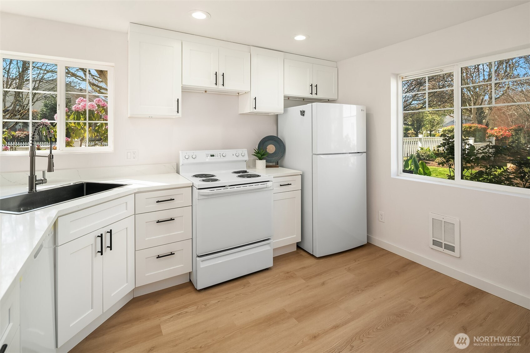 Welcome to your new home! This beautifully maintained, one-owner condo offers 3 bedrooms and 3 bathrooms in the expansive Lakes Community. Conveniently located near transit, the airport, shops, restaurants, and an abundance of parks, this home truly has it all. Inside, you’ll find a seamless open-concept floor plan filled with natural light, spacious bedrooms, and an in-unit washer and dryer for added convenience. Recent updates include new flooring, fresh paint and trim, updated kitchen cabinets, new countertops, and modern fixtures throughout making this home truly move-in ready. Enjoy cozy evenings by the fireplace in the winter, or take advantage of the ample windows and private patio/yard space during the warmer months, perfect for entertaining or accommodating pets. This home also features a 1-car garage along with ample guest parking, adding everyday convenience for you and your visitors. With a strong sense of community and everything you need close by, this home in the Lakes is ready to welcome its next owners.