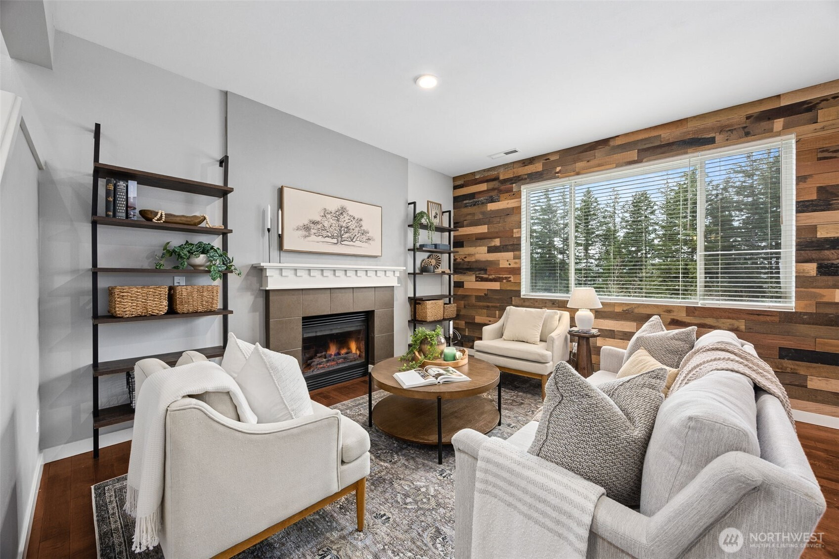 Lovely 3 bedroom plus small den/office, 2.25 bath home on a level lot with beautiful wooded views, in Edgeview. Conveniently located right across from the park, making recreation easily accessible. The home features a thoughtful floor plan, filled with natural light, with an open great-room featuring a cozy gas fireplace. Granite countertops in the kitchen. The main floor is perfect for both everyday living and entertaining. The upper level features a generous primary suite with a walk-in closet and private ensuite bath. Two additional spacious bedrooms, a full bath, and convenient utility room complete this level. The attached 2-car garage provides abundant storage. Ideally located in Lakeland Village, just minutes from shopping, dining and commuter routes, and situated in a highly regarded school district with a newer elementary school nearby. Don't miss it!
