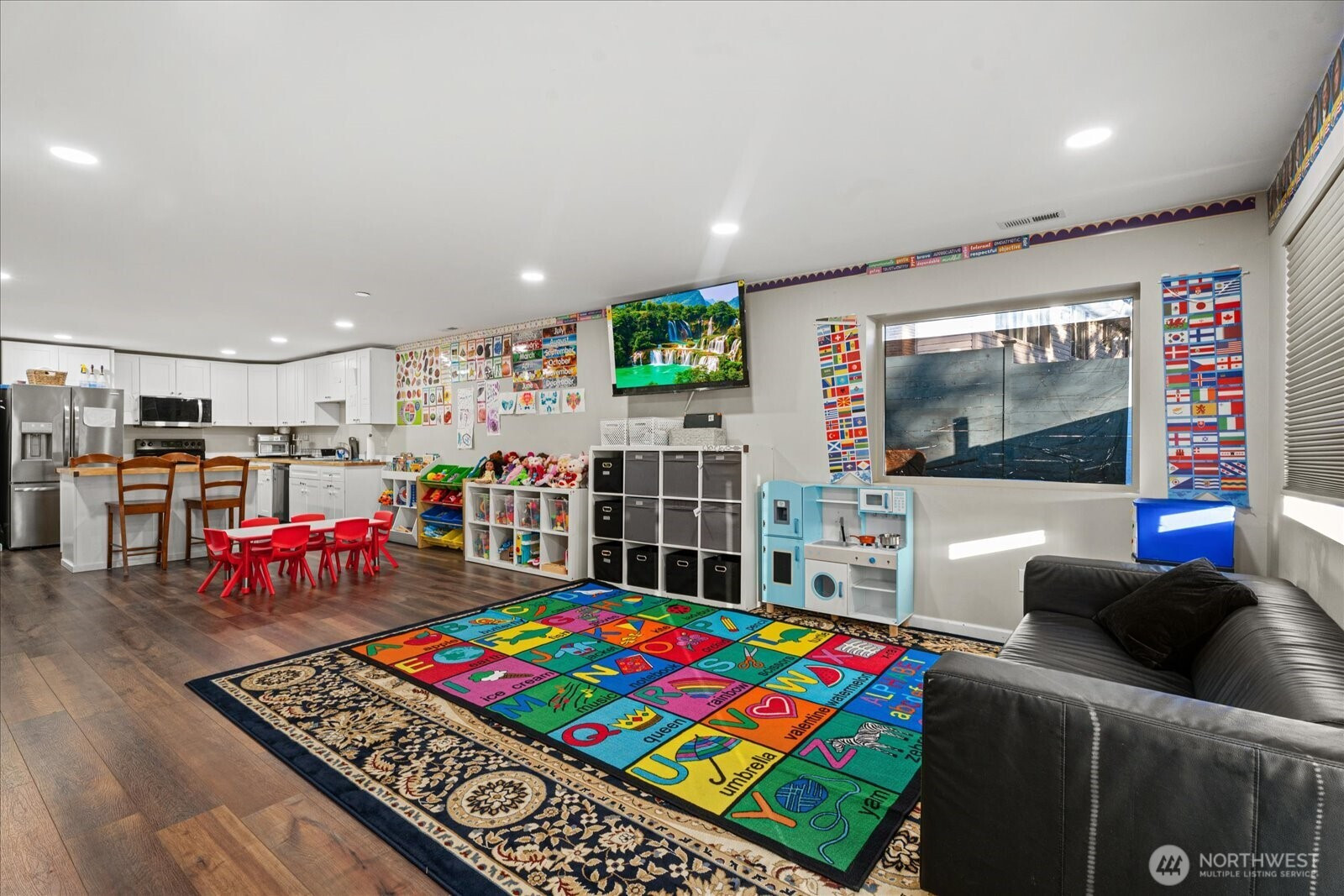 A dream come true! Own a legal duplex with oversized units, each offering 1,800+ sq ft of living space. The upper unit shines with newly remodeled flooring, an updated main bath and common bath, plus a refreshed kitchen. Big-ticket upgrades include a new roof and brand-new decking. The lower level is currently set up as a daycare center and has been fully remodeled, featuring a spacious living room, an additional kitchen, and a full bathroom. Step outside to a large attached backyard, perfect for entertaining, play, or gardening.Bonus value: the property qualifies for a detached dwelling/ADU in the back and is fully approved. Live in one unit, rent the other, and expand future income potential.