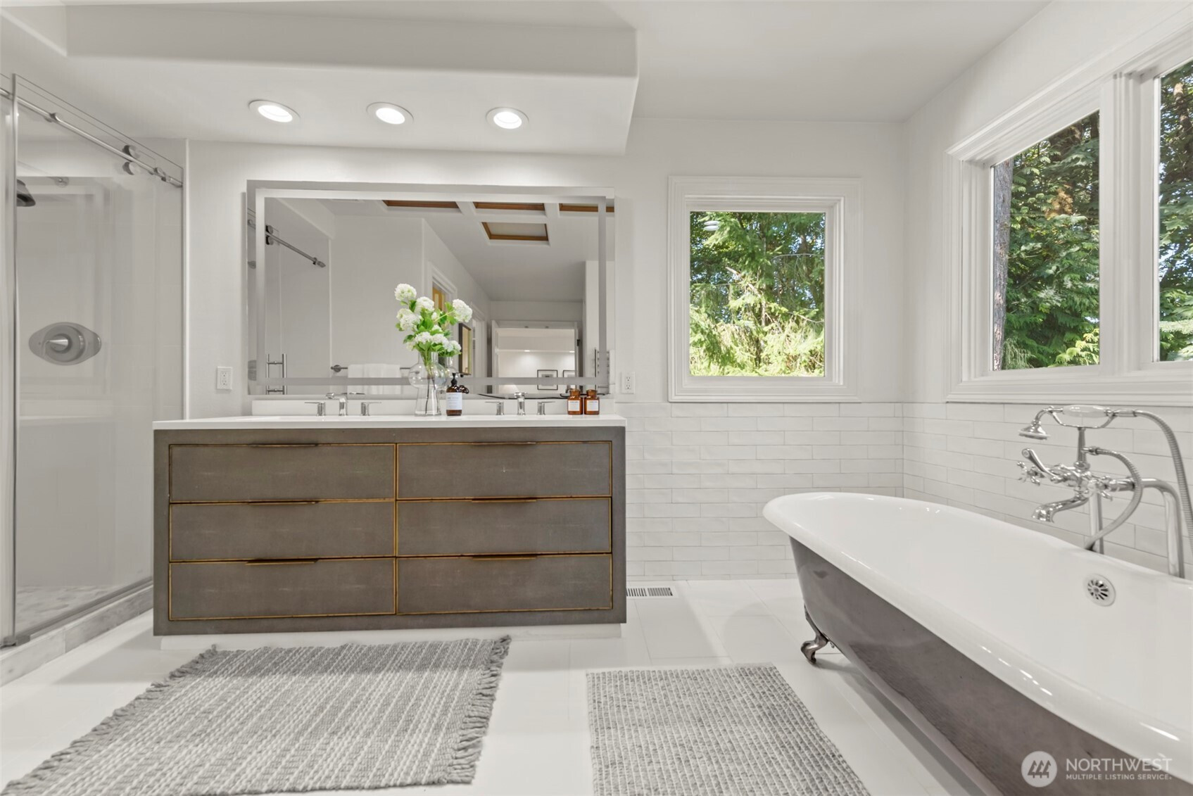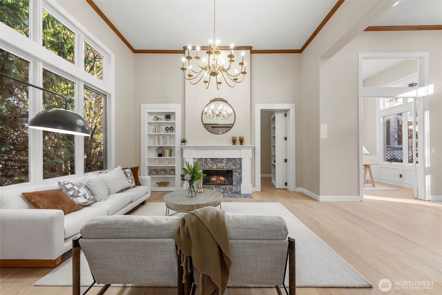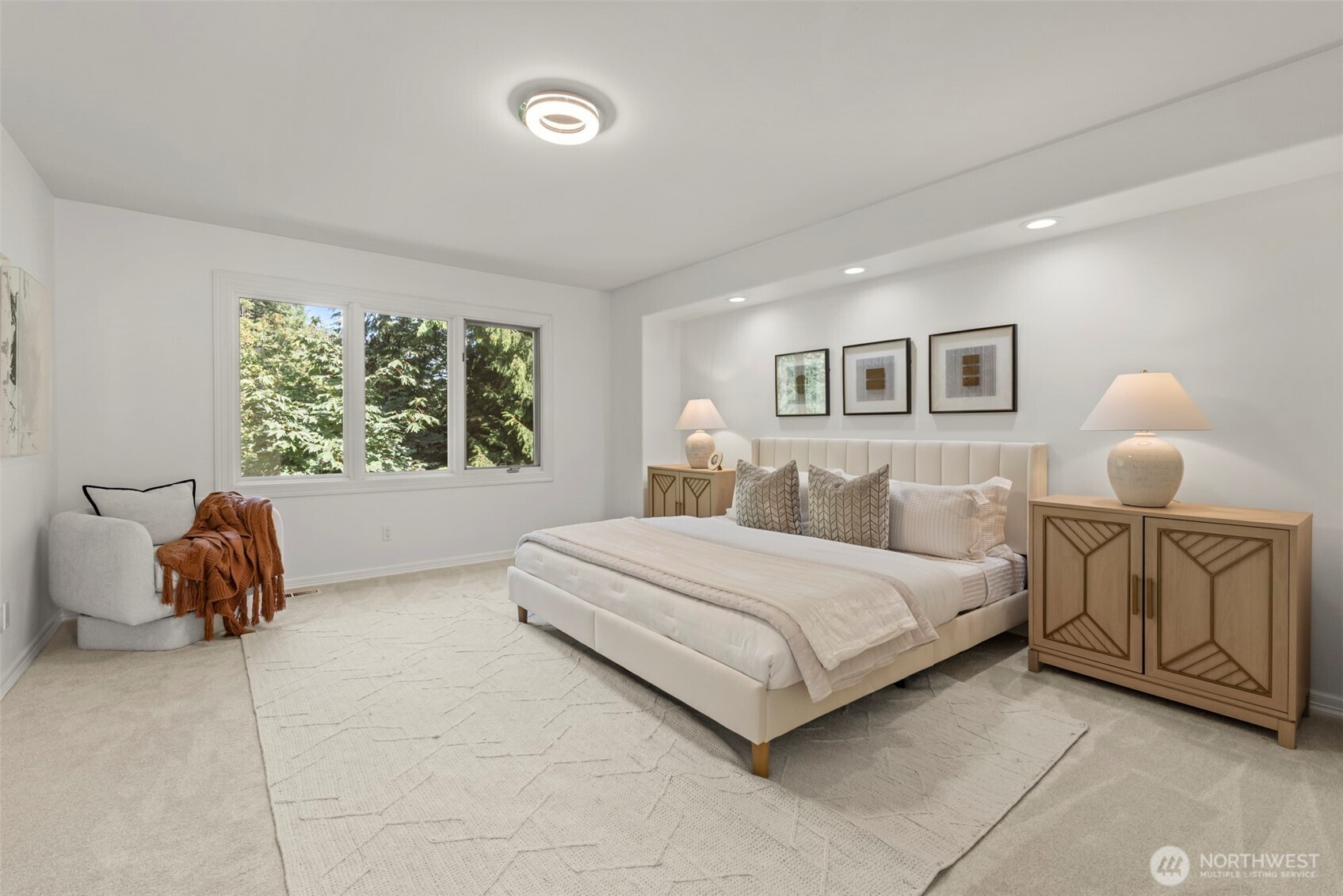 Experience refined living in this beautifully maintained Lakemont home, backing to a tranquil greenbelt with stream and walking trail. A soaring entry opens to bright, inviting living spaces designed for everyday comfort and effortless entertaining.The well-appointed kitchen with upscale appliances flows into a spacious family room. New main-level flooring, a private den with custom built-ins, and a unique hidden room behind a bookshelf offer exceptional flexibility for work and play. Upstairs features fresh paint and new carpet, a generous primary suite with five-piece bath, a versatile bonus/5th bedroom, and a balcony extending outdoor living. Step outside to a private backyard with patio and partial lake view.Recent updates include central A/C, refreshed exterior paint, newer roof care, and thoughtful ongoing maintenance. Tesla charging station included. Prime location minutes to I-90, parks, shopping, dining, and top-rated schools.Don’t miss this exceptional Lakemont home — privacy, quality, and location in one complete package.