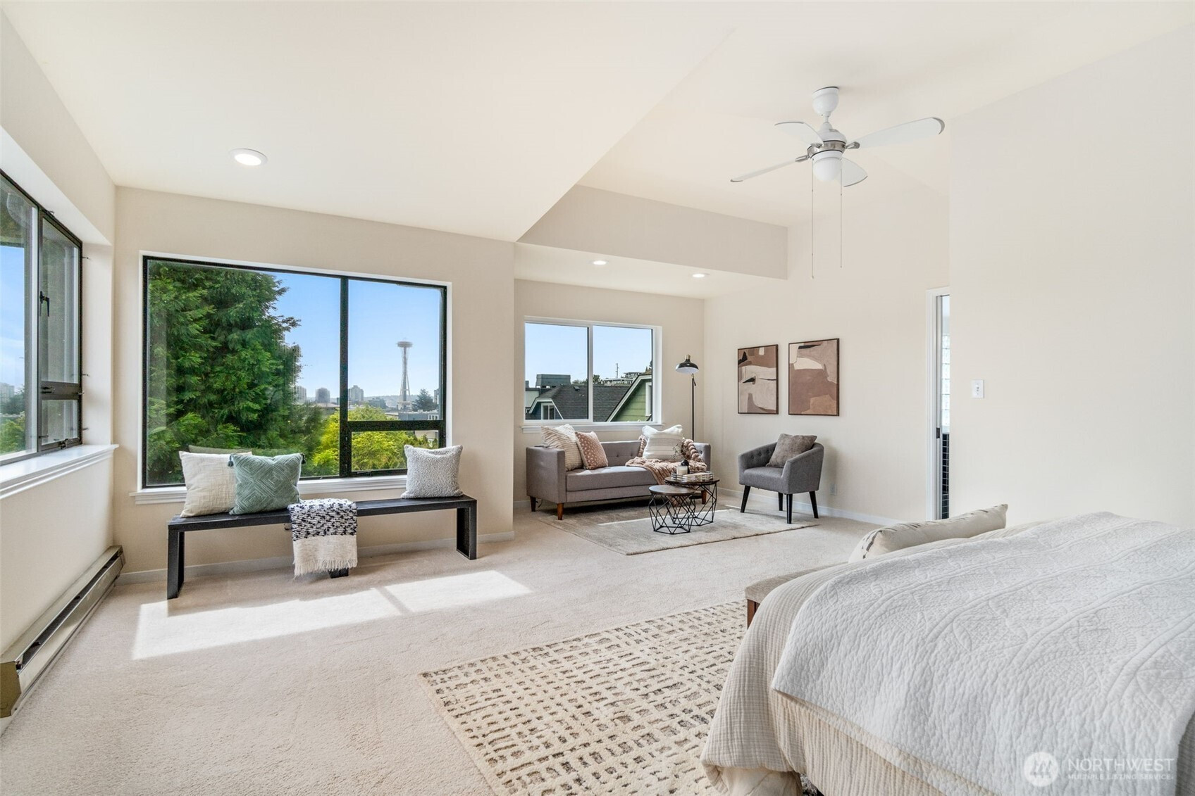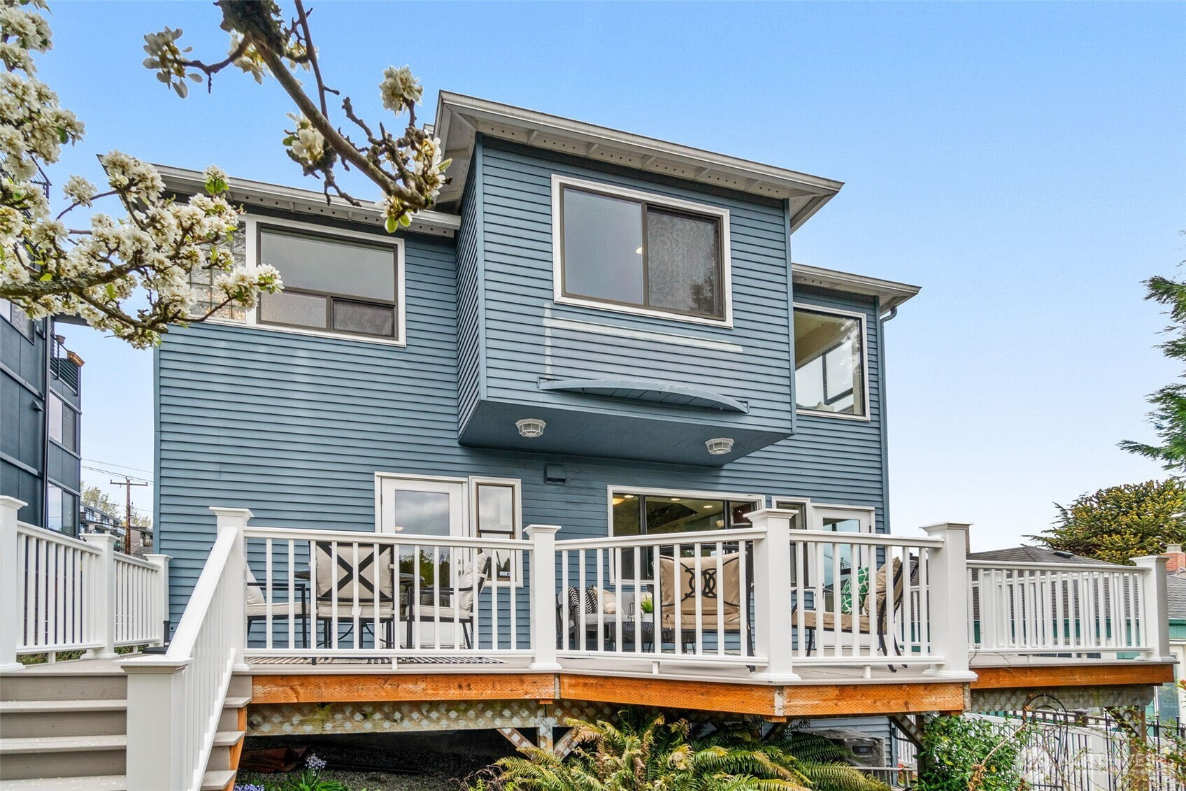 This beautiful and spacious home nestled in the Queen Anne neighborhood is on the market for the first time in decades. Enjoy fantastic views of the Space Needle, mountains, Seattle's downtown skyline, and Lake Union. This house flows beautifully with a large living room and bright dining room with exits to the large deck outside and private yard with tons of garden space and its own cherry blossom tree. Upstairs enjoy the grand primary bedroom suite with it's large private bathroom and huge walk-in closet. As well as two other bedrooms with their own private balconies and a 3rd bathroom. In the basement find a large bonus room, tons of storage, and all utilities. The house also features AC and a 1-car garage, new furnace. With easy access to Queen Anne shops and restaurants, downtown, Seattle Center, and SLU!