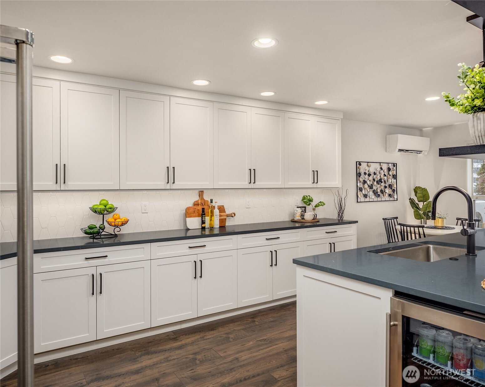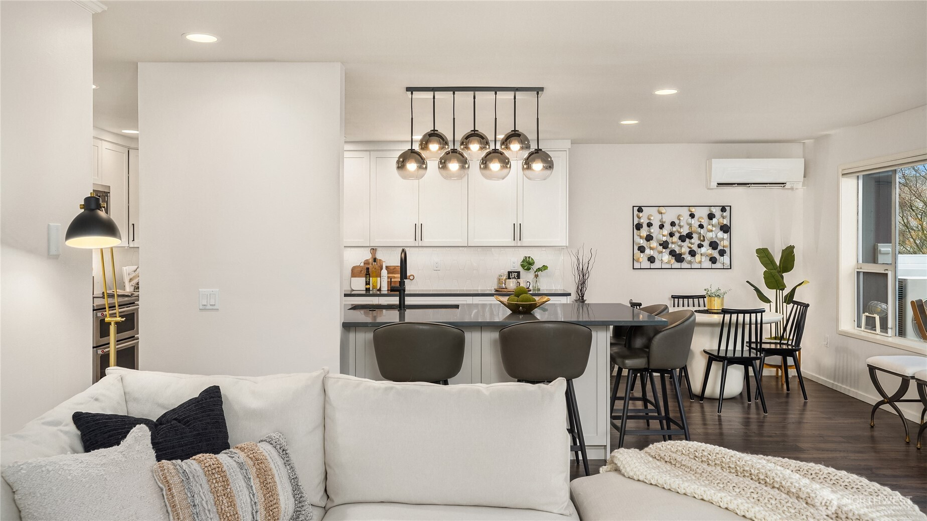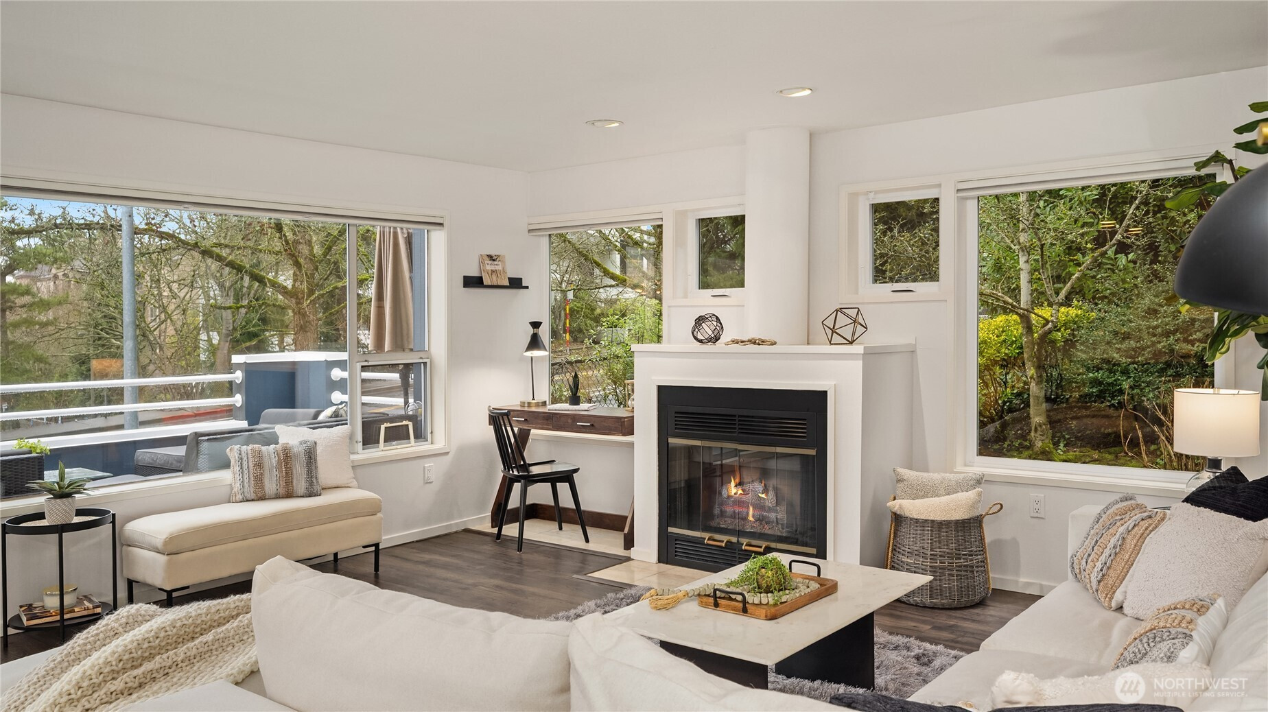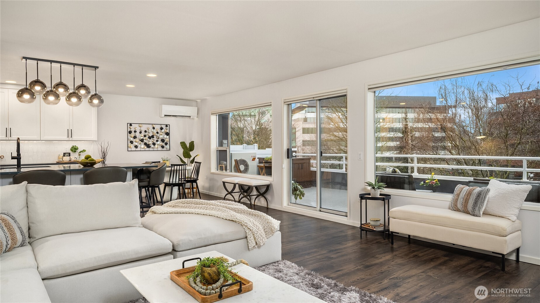 Live the vibrant downtown Kirkland lifestyle! Boutique community w only 14 units. Homes like this don't come along often! This home lives large & is beautifully renovated! 2 bed/2 bath corner unit features an abundance of windows & natural light! Fully redesigned, dream chef's kitchen w expansive island, quartz counters, soft close cabinetry, double ovens & beverage cooler! One level living at its best! Expansive open floorplan, entertainment sized great rm & dining features wood burning fireplace, a/c, laminate hardwoods & opens to one of the largest private patios! Spacious primary bed w walk-in closet, remodeled on-suite w double sinks, beautifully tiled walk-in shower & ample storage. Large secondary bedroom/office. Spacious grassy area right out the door, perfect for pets to play or entertain! Secure lobby w elevator, gated parking garage w 2 reserved spaces & storage unit. Walk to restaurants, cafes, shopping, grocery & the waterfront! Cross Kirkland Corridor, Peter Kirk Park & Pool, Kirkland Urban-all just steps away. Easy access to 405, 520 & the Park & Ride. Plenty of guest & street parking. No rental Cap!