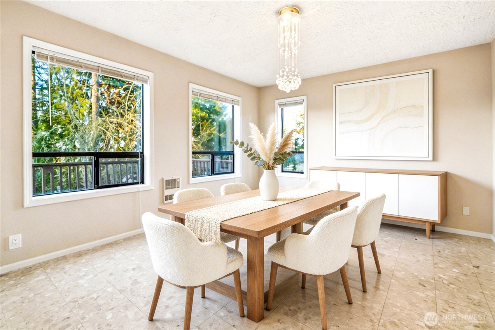 Charming mid century gem on a quiet street. This spacious home features functional layout, high ceilings, and crisp fireplaces. Impressive foyer opens to a peaceful living space with effortless flow throughout. Gourmet kitchen comes with new SS appliances. Main level also presents guest suite, additional full bathroom, and office. The pristine primary suite on upper level boasts Sound Views. Versatile basement complements with a Second kitchen & two more bedrooms - perfect as MIL unit or rental income opportunity. Enjoy morning coffee on the expansive deck. Mature backyard is ideal for entertainment. 3-car garage. Close to elementary school, park, and light rail. Walking distance to Redondo beach. Welcome home!
