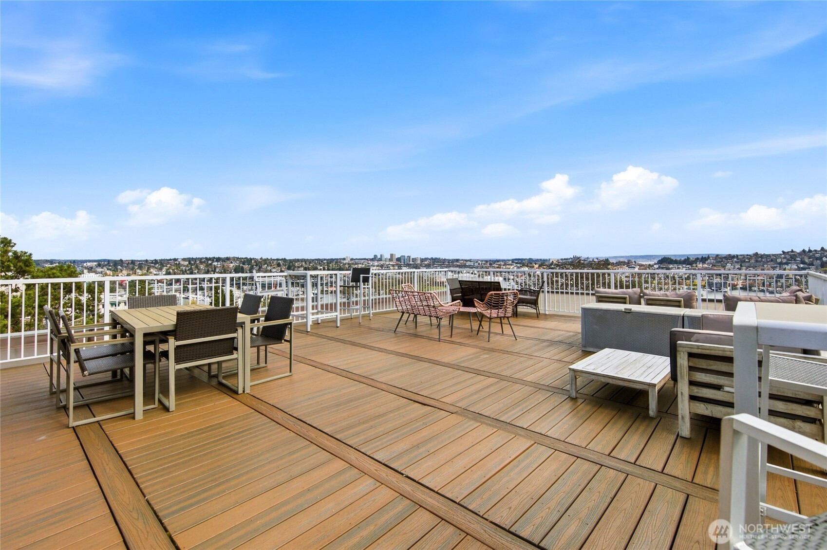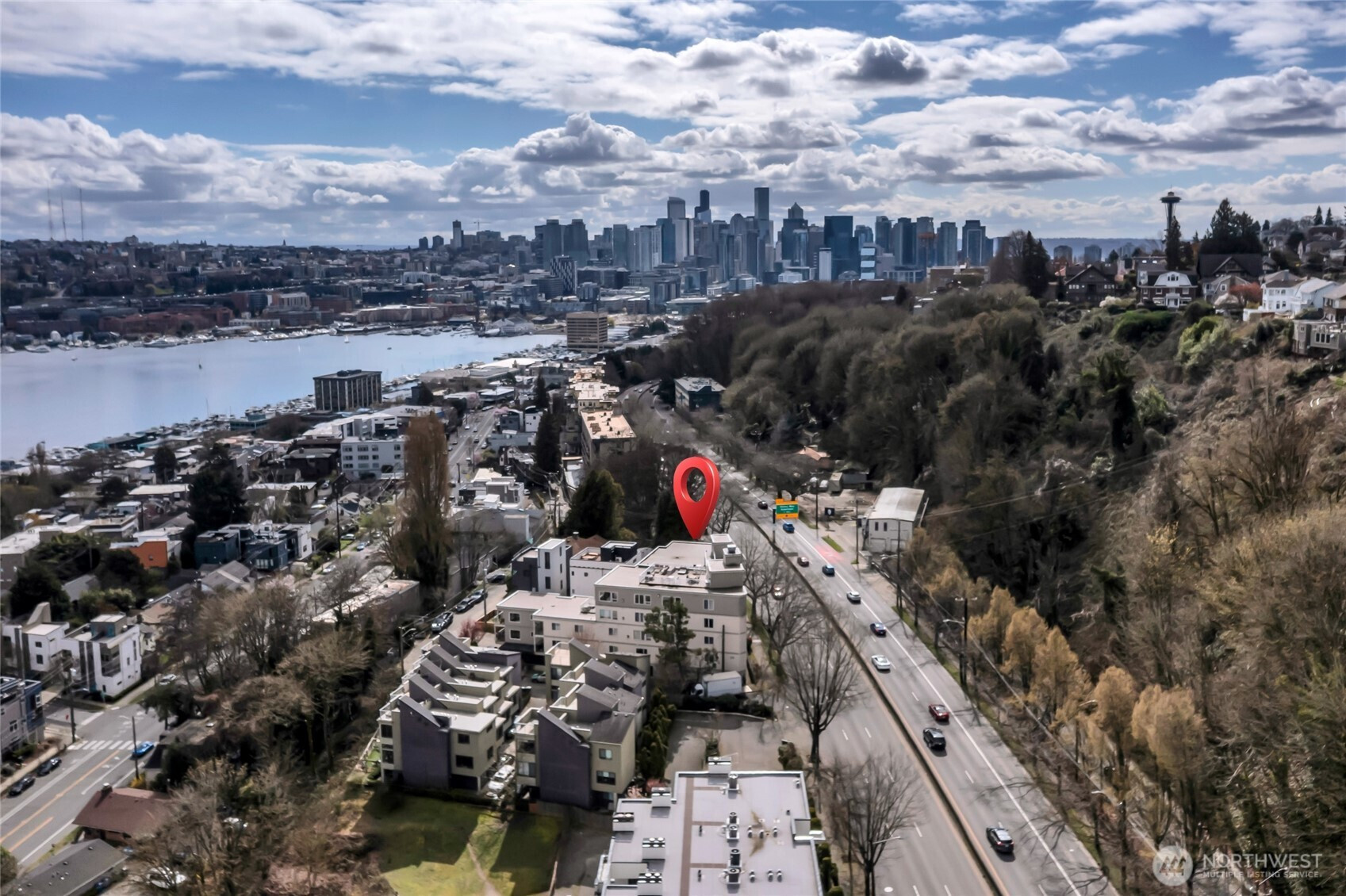 Welcome to Queen Anne—one of Seattle’s most vibrant and picturesque neighborhoods. This spacious end-unit condo offers 838 square feet of light-filled living with rich bamboo flooring, large windows, and a welcoming living room anchored by a gas fireplace framed in a Craftsman-style mantel. The kitchen features stainless appliances and an eating bar that opens seamlessly to the dining area and living room—an easy layout for everyday living or entertaining. From inside the home, enjoy peek-a-boo views of Lake Union, while the expansive rooftop deck reveals sweeping panoramas of Lake Union, the Cascade Range, Gas Works Park, the Seattle skyline, and the iconic Space Needle—the perfect vantage point for sunsets and fireworks. Minutes from neighborhood favorites including the Queen Anne Farmers Market, SIFF Cinema Uptown, Seattle Center, Climate Pledge Arena, Pike Place Market, and 5th Avenue Theatre. Secure entry and garage parking with one assigned space, in-unit laundry with shelving, generous storage, and a pet-friendly building (subject to restrictions) add everyday convenience. HOA dues include sewer, garbage, water-baseline cost, fireplace propane and common area maintenance. Quick access to downtown, major employers, freeways, transit, biking routes, and walkable neighborhood amenities makes this a home perfectly placed for enjoying the very best of Seattle living.