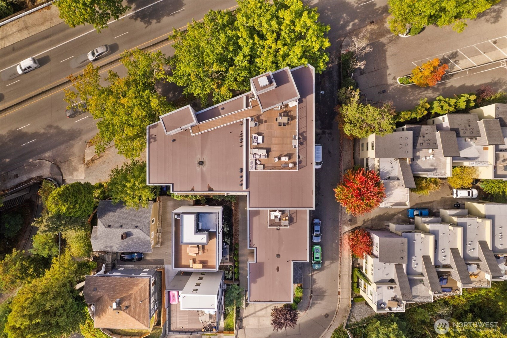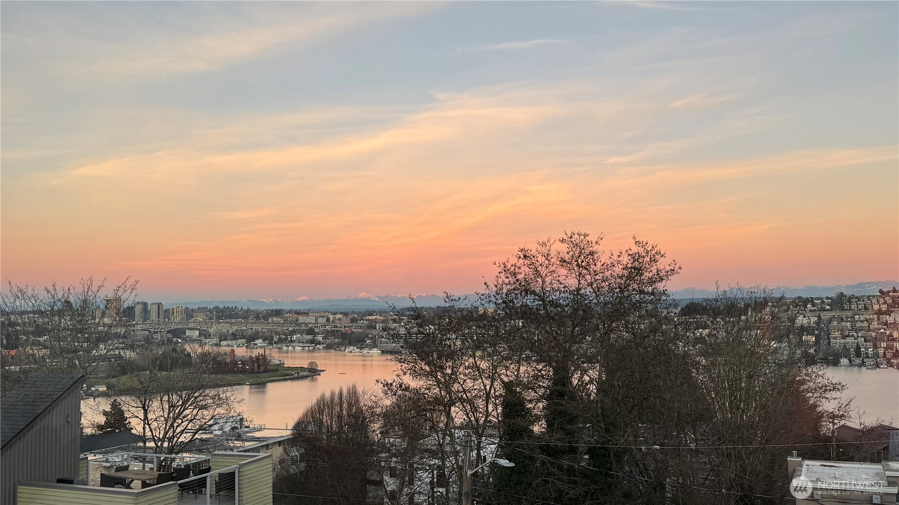 Top-floor living at its finest! This penthouse-style condo offers sweeping views of Lake Union, Gas Works Park & the Cascades—perfect for July 4th fireworks at home. Sunlight fills the open living & dining areas through picture windows, creating an inviting atmosphere all day. Rarely available, the 2-bed, 2.5-bath layout has two true primary suites—each with remodeled baths; one includes a private deck & walk-in closet. The updated kitchen with granite counters & SS appliances flows into the view-filled living room anchored by a cozy fireplace. With secure parking, a rooftop deck & well-run HOA, this pet-friendly condo delivers convenience & unforgettable views minutes from DT Seattle & highways.