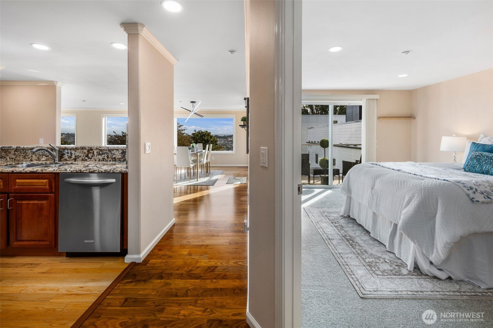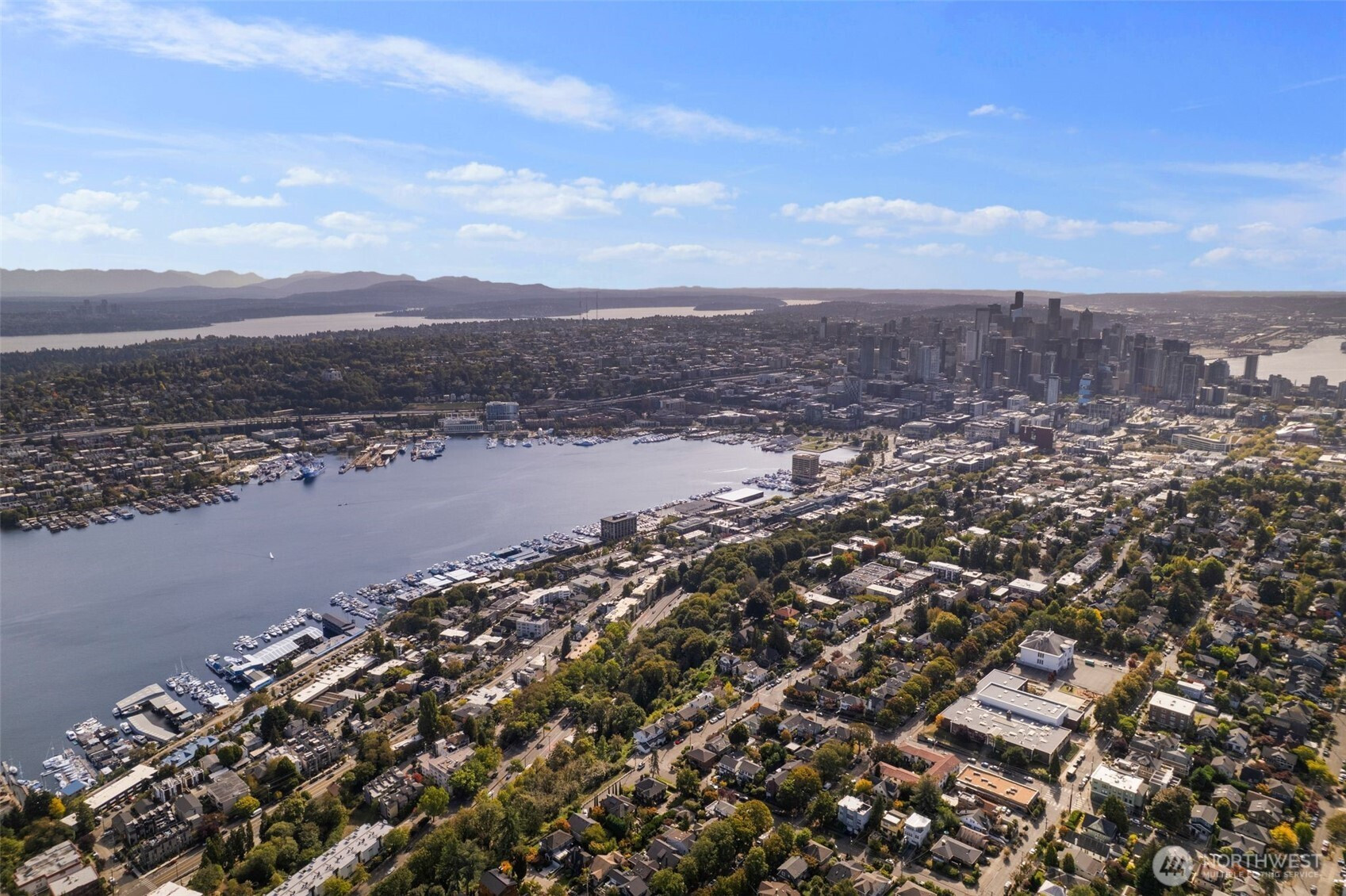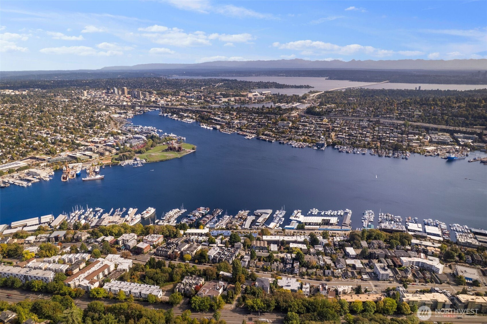 Top-floor living at its finest! This penthouse-style condo offers sweeping views of Lake Union, Gas Works Park & the Cascades—perfect for July 4th fireworks at home. Sunlight fills the open living & dining areas through picture windows, creating an inviting atmosphere all day. Rarely available, the 2-bed, 2.5-bath layout has two true primary suites—each with remodeled baths; one includes a private deck & walk-in closet. The updated kitchen with granite counters & SS appliances flows into the view-filled living room anchored by a cozy fireplace. With secure parking, a rooftop deck & well-run HOA, this pet-friendly condo delivers convenience & unforgettable views minutes from DT Seattle & highways.