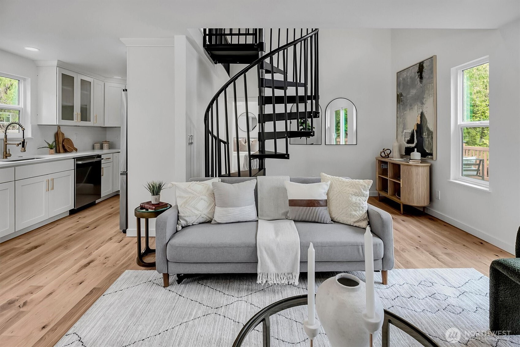 Effectively built in 2025, this 1,220 sq ft gem sits on a generous 5,000 sq ft lot, creek-backed with a view so good it should come with a warning label. Two bedrooms, one bath, a walk-in closet, a loft that moonlights as a home office or den, a gas fireplace for ambiance, quartz countertops, stainless steel appliances, and front and back decks that make "staying in" feel like the right call every single time. Oh, and ZERO HOA dues — because some freedoms should remain blissfully unfettered. A short stroll to downtown Issaquah. Top-rated Issaquah School District. Unique. Charming. Breathtaking. Yours.