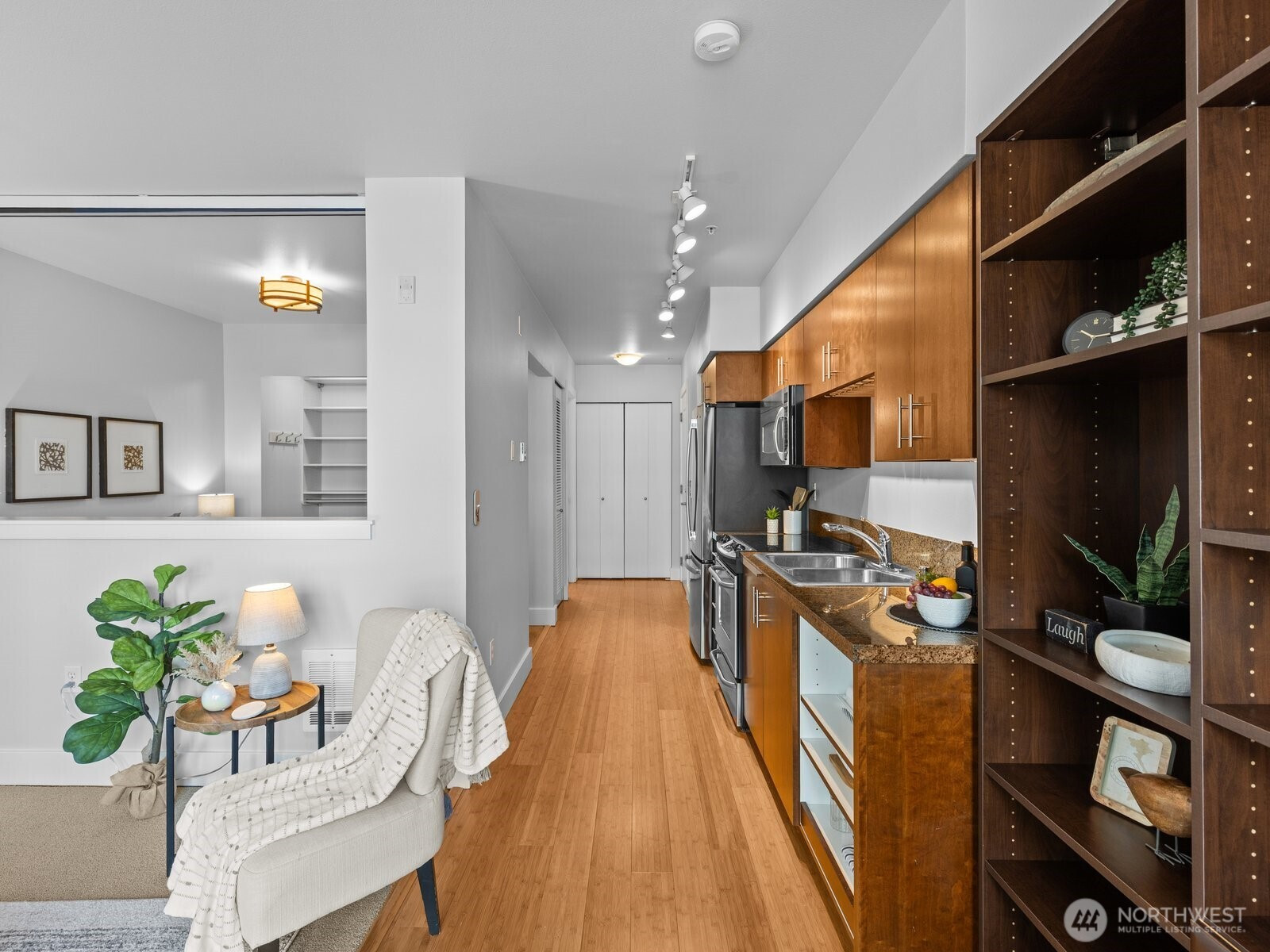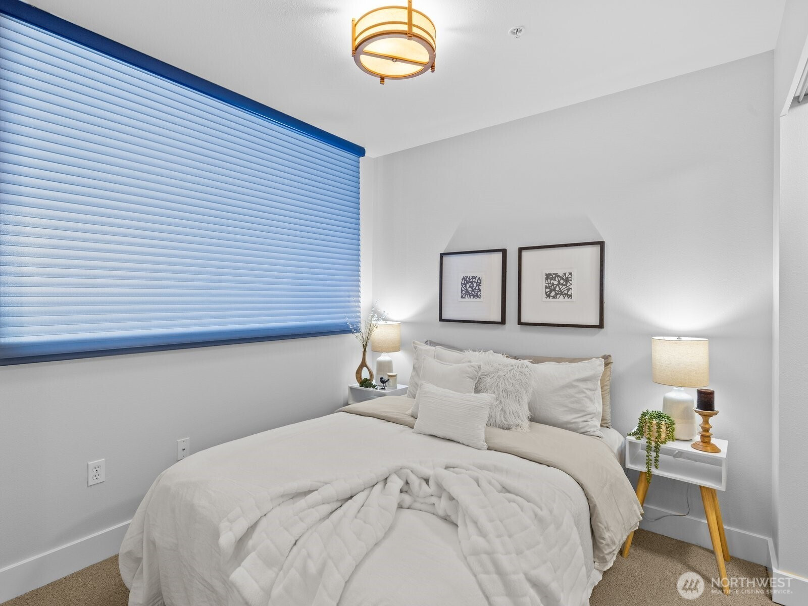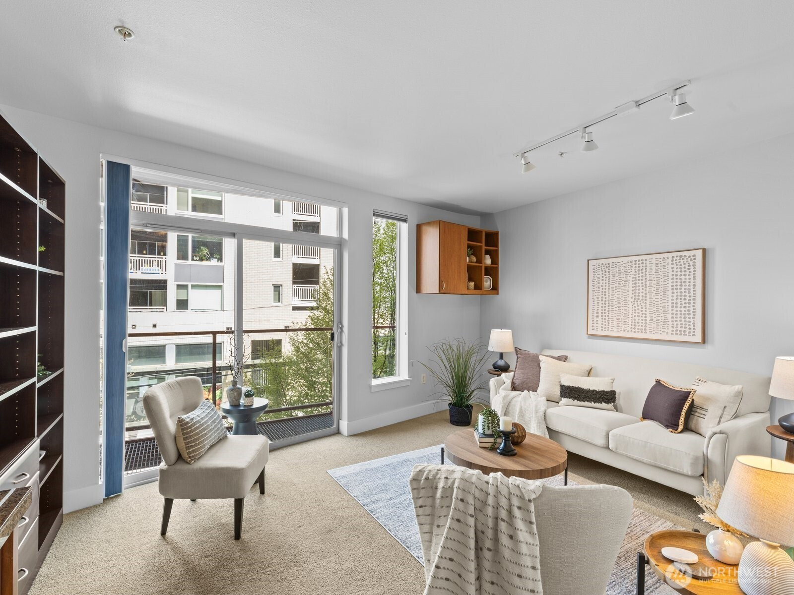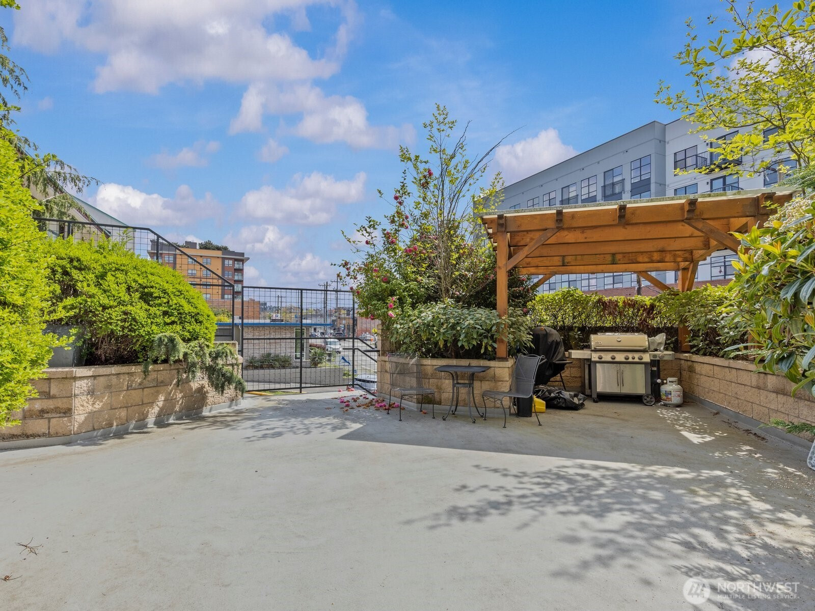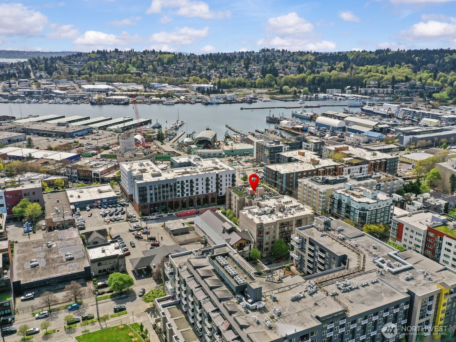 As they say in real estate, it's all about location, location, location, and this adorable Noma condo personifies the heart of Downtown Ballard. Across the street from QFC and a block off of NW Market St, you're at the epicenter of the one of the most iconic and sought after neighborhoods in Seattle. This bright and airy open concept 1 bedroom condo is efficiently designed. It features a walk-in closet, full-sized washer and dryer, fresh paint, new fridge, and a cozy patio for those dreamy summer nights. The updated bathroom is surprisingly roomy, and there are built-ins throughout the home to maximize your storage capabilities. A condo building can be an incredible asset that extends your living space, and this community boasts fantastic amenities to really make the whole property feel like home. Whether you're hosting in the lounge, taking a call in the conference room, or admiring breathtaking sunsets on the rooftop deck, this home has it all. The cherry on the cake is secure garage parking, a handy bike rack, and your own storage unit! Whether you're a first time homebuyer or looking to finally move to the city this place is more than a condo, it's a lifestyle!