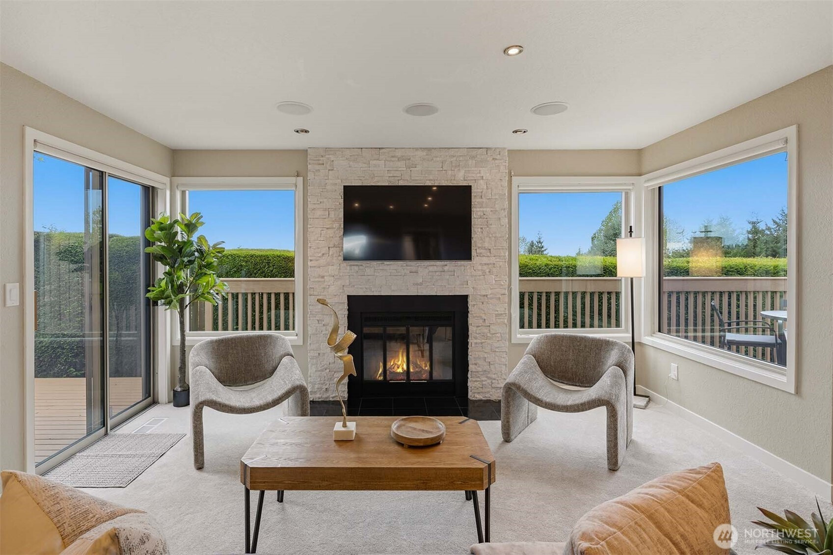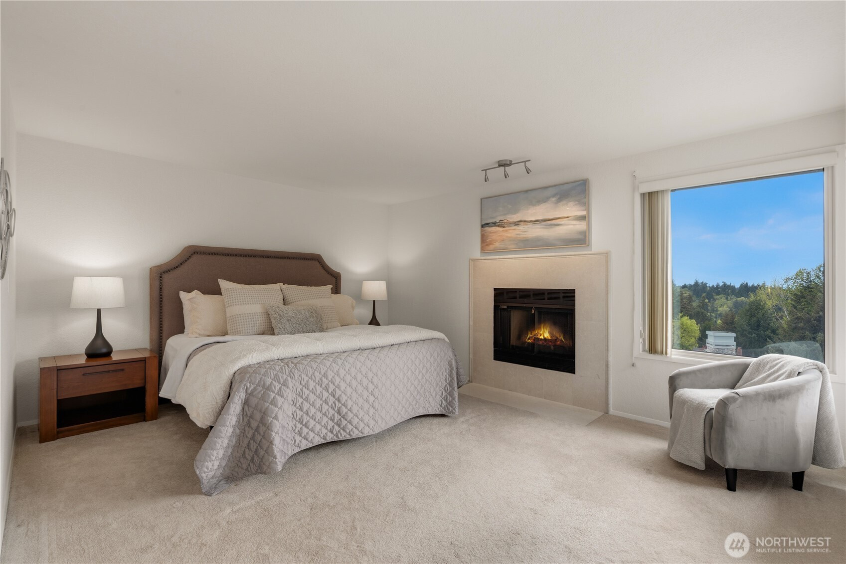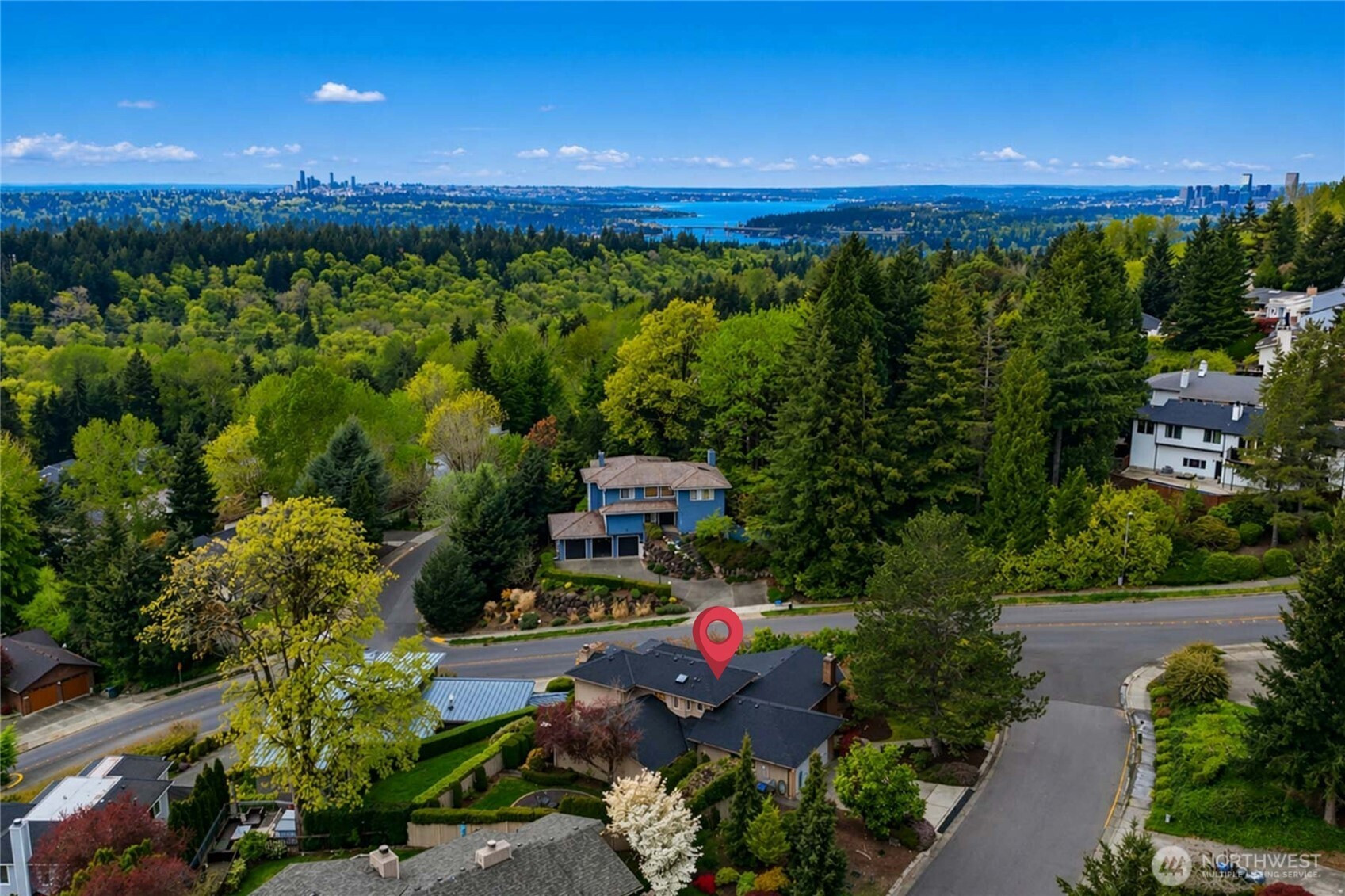 Set on a prime corner lot in Somerset, this beautifully updated 4 bedroom, 3.25 bath home offers 3,517 SF of refined living space, paired with top-rated Bellevue schools and sweeping territorial views. Step inside to a grand entryway with vaulted ceilings and expansive windows that flood the home with natural light. The main level features a tastefully updated kitchen with a 5-burner gas range, granite countertops, wine and beverage cooler, and seamless flow into the living room—an ideal setup for everyday living and entertaining. Two spacious bedrooms connected by a Jack-and-Jill bathroom, along with a powder room, provide flexibility and convenience on the main floor. Upstairs, the primary suite is a true retreat, showcasing expansive views, a private balcony, dual walk-in closets, a cozy fireplace, and an updated bathroom with a spa-like jetted tub. The lower level is designed for versatility, featuring a home office, an additional bedroom and bathroom, a flexible bonus space, and a fully equipped professional home theater. Thoughtful updates enhance the home’s comfort and efficiency, including a new roof, new windows, central A/C, along with multi-zoned smart-controlled lighting and integrated audio/video entertainment. Enjoy the outdoors in the fully fenced, level backyard that is private, serene, and perfectly positioned to capture beautiful views and stunning sunsets. Ideally located, just minutes to DT Bellevue, Factoria, freeway access, shops and restaurants.