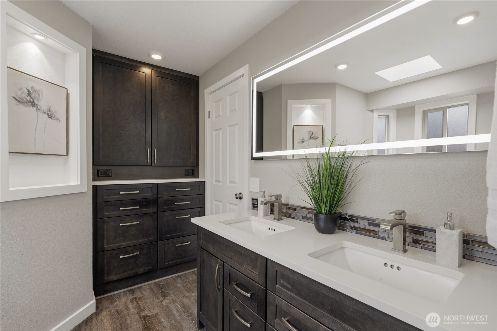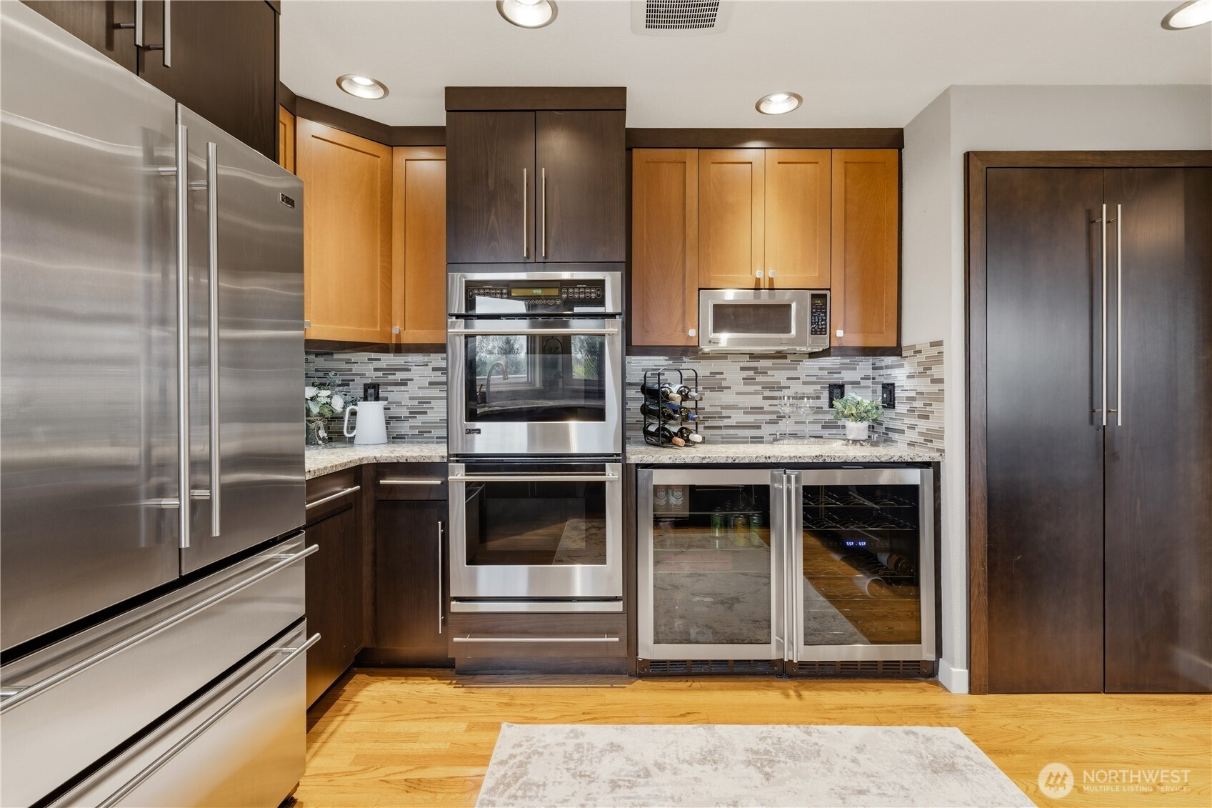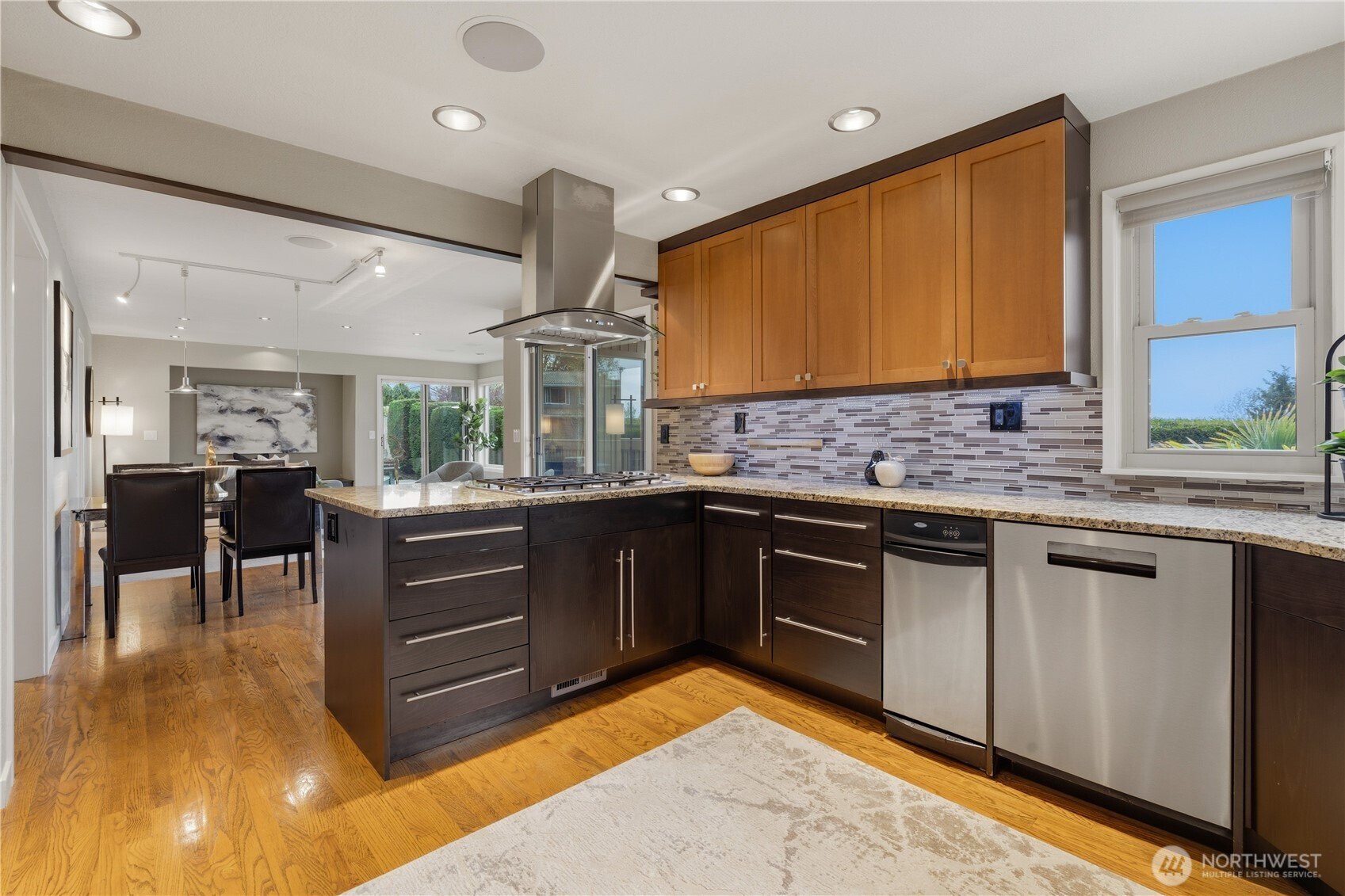 Set on a prime corner lot in Somerset, this beautifully updated 4 bedroom, 3.25 bath home offers 3,517 SF of refined living space, paired with top-rated Bellevue schools and sweeping territorial views. Step inside to a grand entryway with vaulted ceilings and expansive windows that flood the home with natural light. The main level features a tastefully updated kitchen with a 5-burner gas range, granite countertops, wine and beverage cooler, and seamless flow into the living room—an ideal setup for everyday living and entertaining. Two spacious bedrooms connected by a Jack-and-Jill bathroom, along with a powder room, provide flexibility and convenience on the main floor. Upstairs, the primary suite is a true retreat, showcasing expansive views, a private balcony, dual walk-in closets, a cozy fireplace, and an updated bathroom with a spa-like jetted tub. The lower level is designed for versatility, featuring a home office, an additional bedroom and bathroom, a flexible bonus space, and a fully equipped professional home theater. Thoughtful updates enhance the home’s comfort and efficiency, including a new roof, new windows, central A/C, along with multi-zoned smart-controlled lighting and integrated audio/video entertainment. Enjoy the outdoors in the fully fenced, level backyard that is private, serene, and perfectly positioned to capture beautiful views and stunning sunsets. Ideally located, just minutes to DT Bellevue, Factoria, freeway access, shops and restaurants.