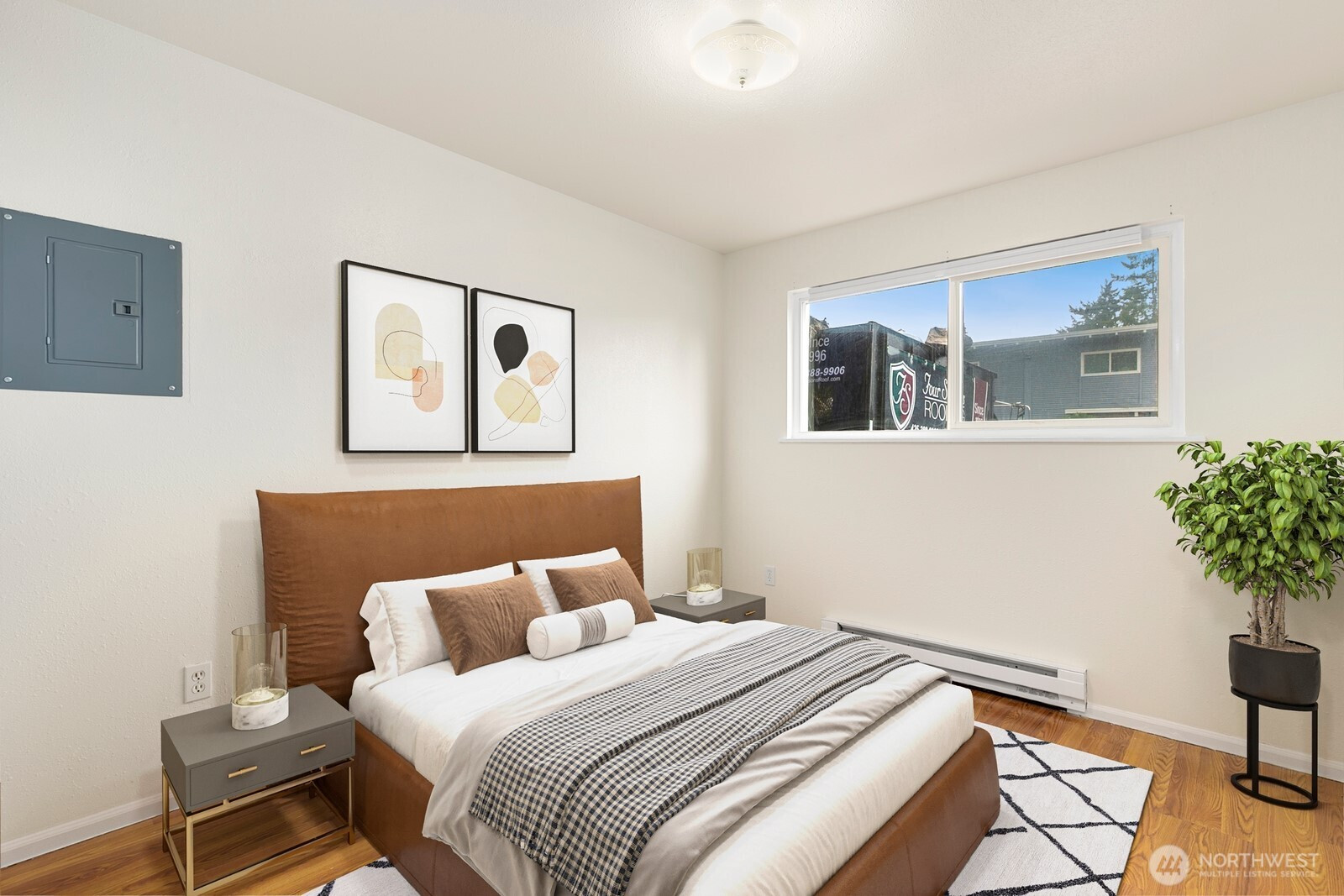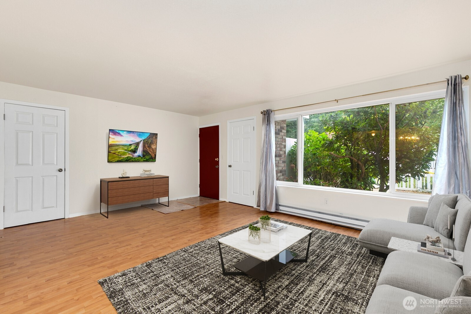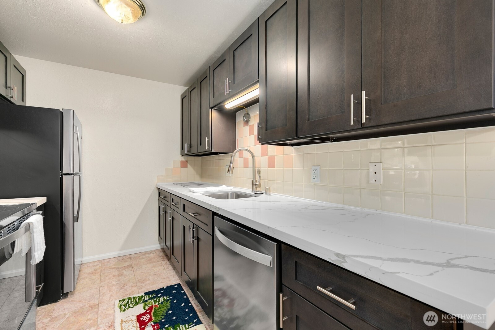 Prime Bellevue location! This ground level condo features an updated kitchen with granite counters and new appliances, as well as a bright and airy living room. Dining area off the kitchen and living room. Condo floor plan provides two spacious bedrooms and one full bath. Outdoor amenities include a swimming pool, a separate lounging pool, tennis courts, and a clubhouse. The HOA covers area maintenance, garbage, lawn care, and water/sewer. One assigned parking space with lots of guest parking available. Near bus lines, Newport Hill and Crossroads shopping, library. Access to top-rated schools. No rental restrictions.