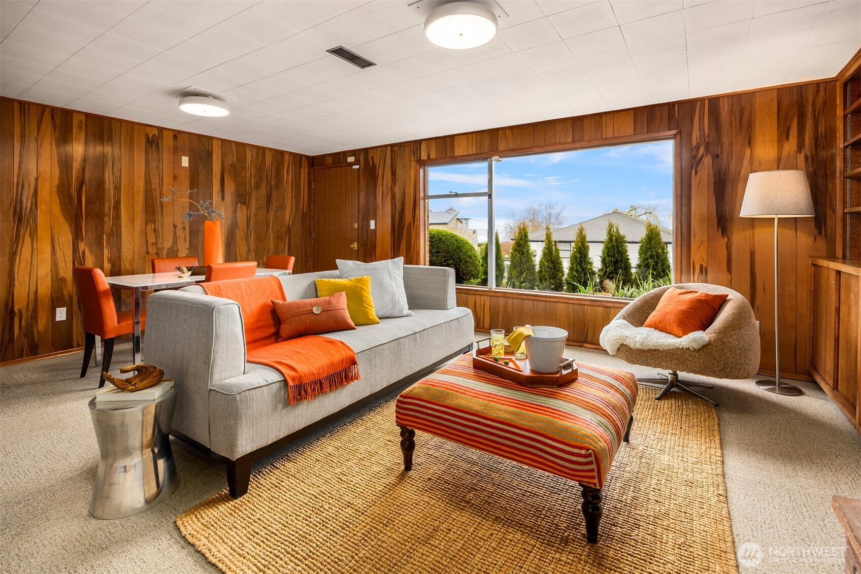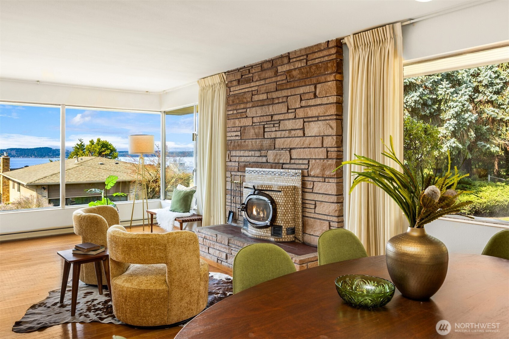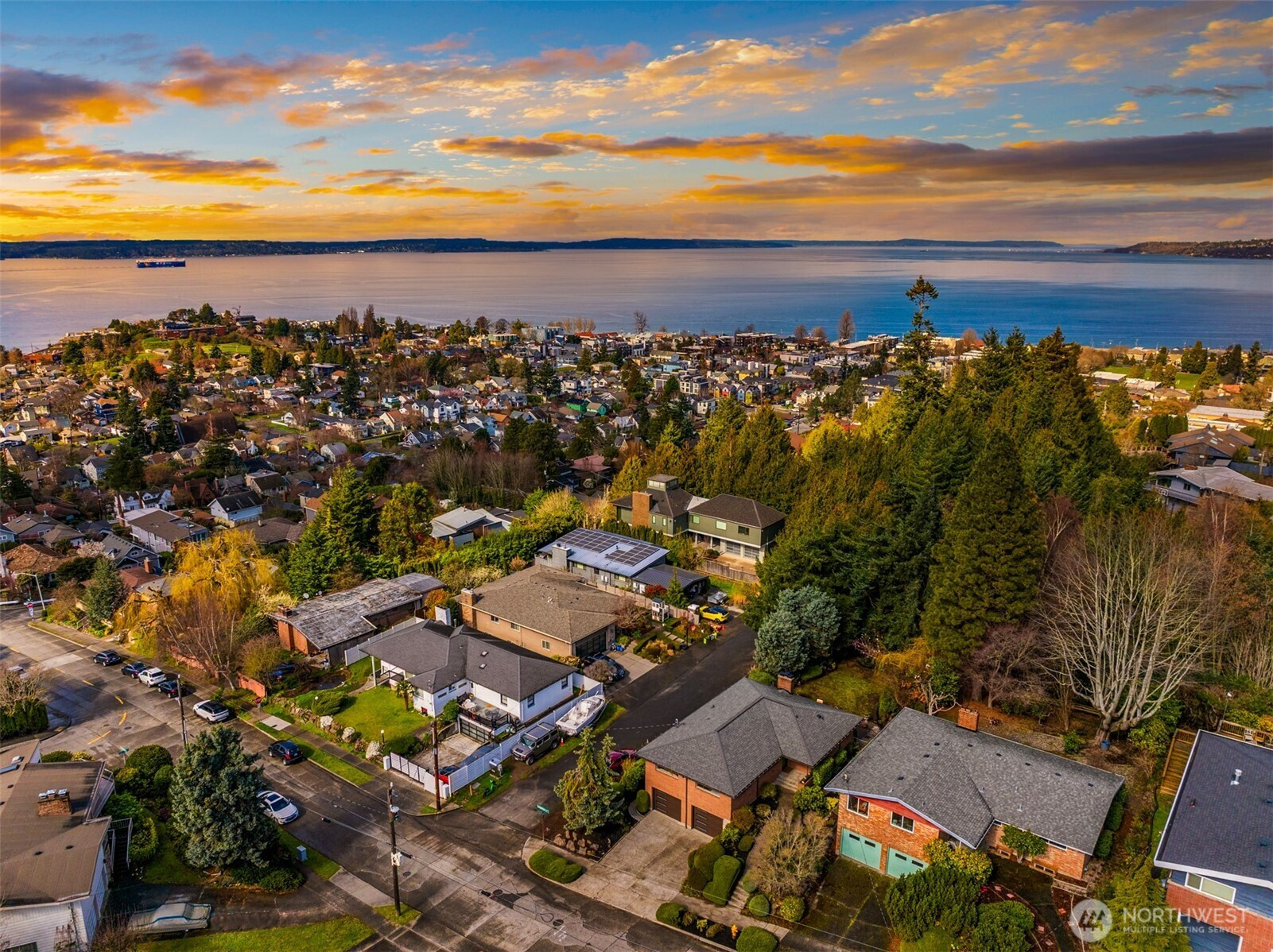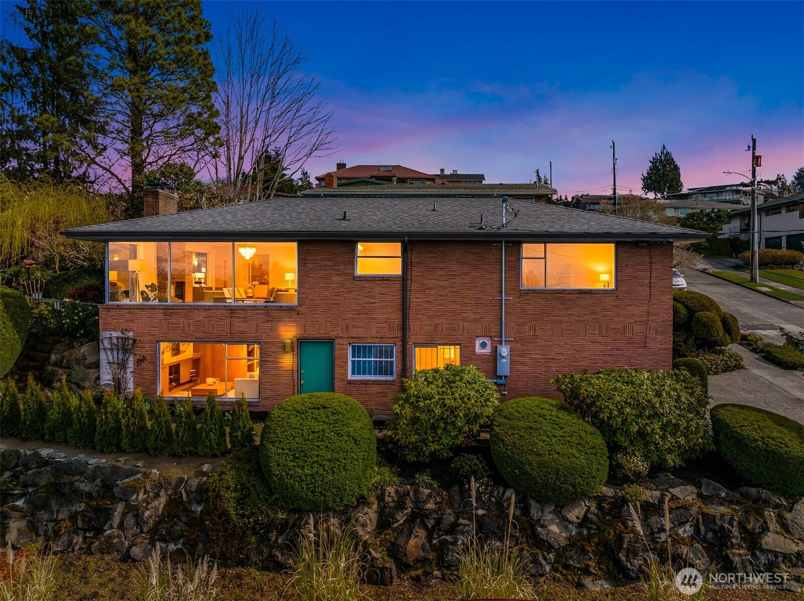 Jaw-dropping views of Puget Sound and the Olympics steal the show from this handsome mid-century perched up proudly on a corner lot in Alki. A cozy covered entry welcomes you inside where gleaming hardwoods, a custom built-in desk and warm architectural details immediately set the tone. Expansive great room is the heart of the home where massive windows deliver unforgettable year-round sunsets views. Updates include a refreshed kitchen that nicely respects the home’s mid-century roots, brand new appliances, new light fixtures, fresh paint, updated electrical, plumbing and much more (see complete list of improvements). Feel the cozy mid-century magic with custom wood built-ins, two wood-burning fireplaces and a dreamy rec room. Sip your morning coffee in the light-filled breakfast nook, gather in the dining room overlooking the beautiful backyard and relax in the spacious, private yard. Ample room to garden, entertain and spread out, with even more Olympic views to enjoy. The two-car garage features new garage doors and a wall between the stalls, making one side ideal for a shop, studio or creative flex space. Just moments from Alki restaurants, the beach, Schmitz Park and Met Market. Offered for the first time in 50 years, this lovingly cared-for mid-century gem is ready for its next generation.