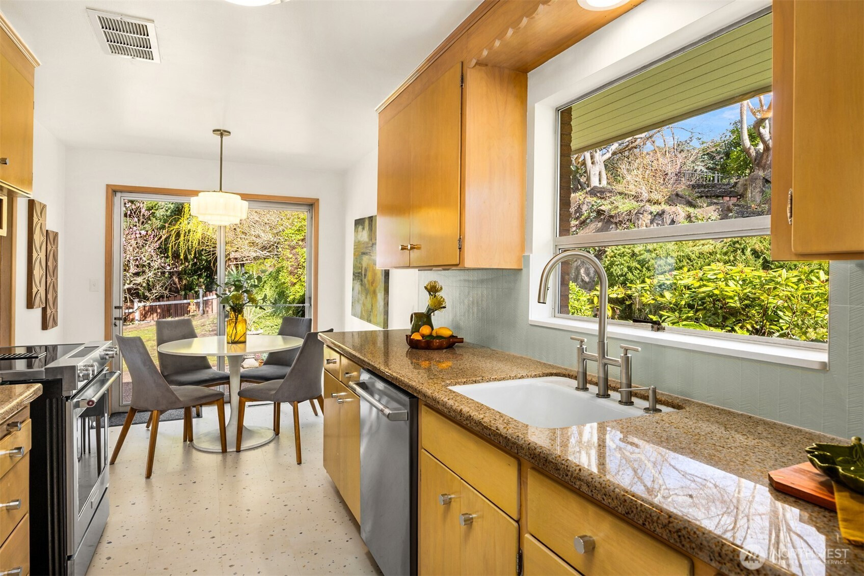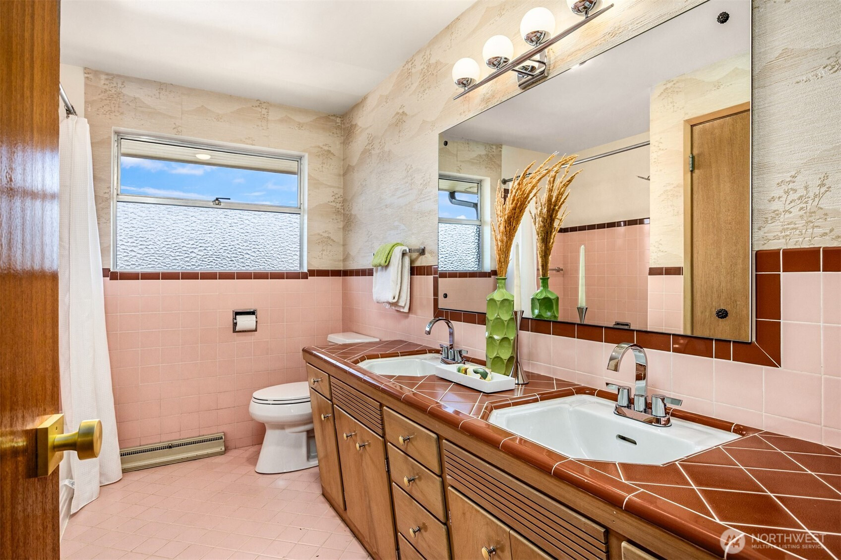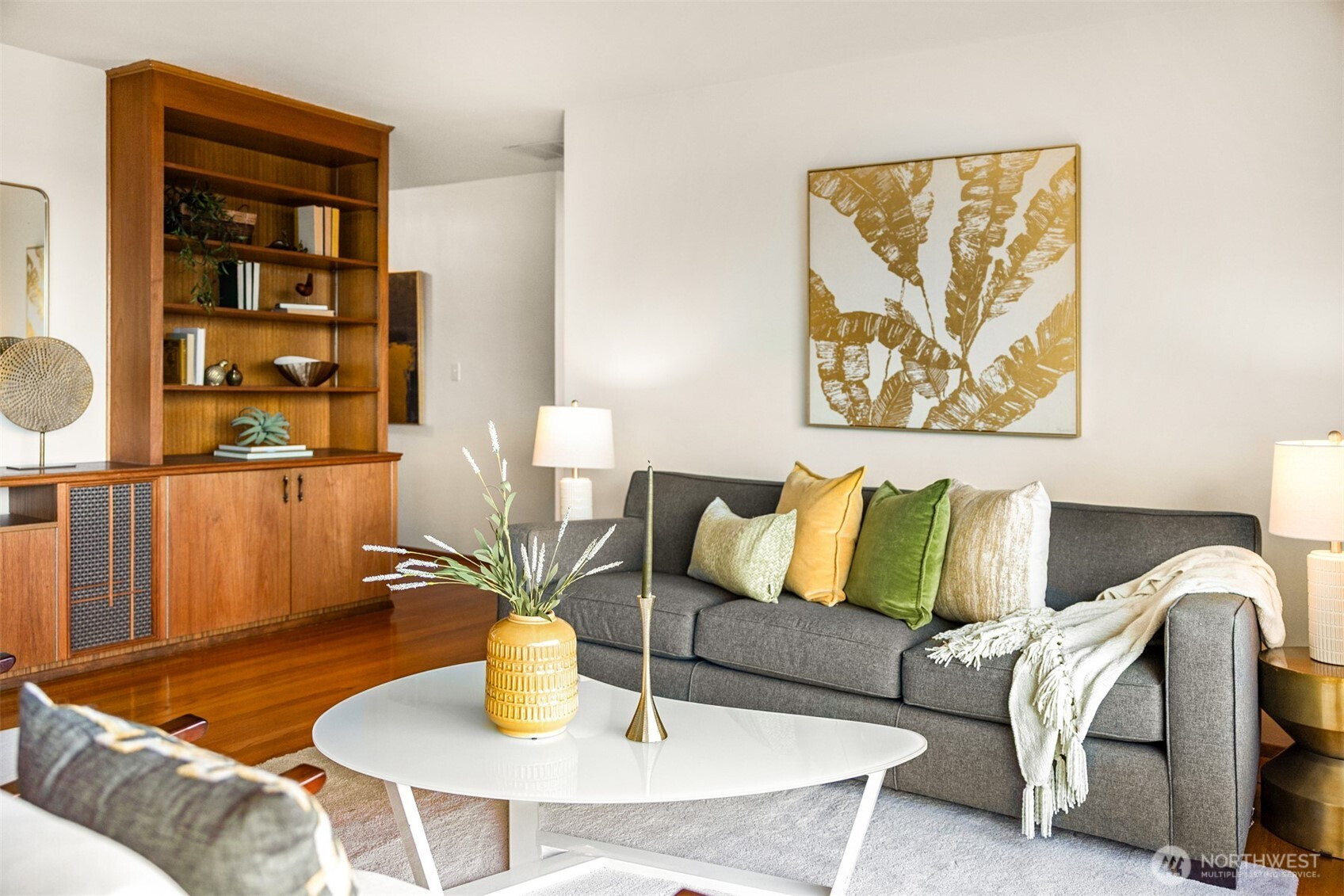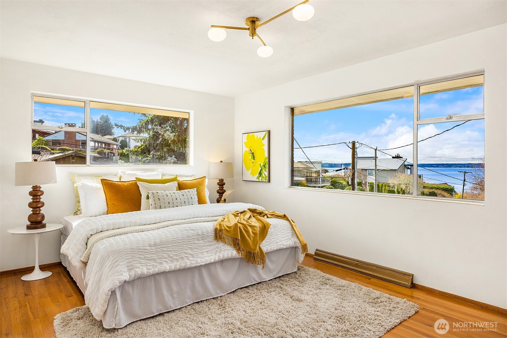 Jaw-dropping views of Puget Sound and the Olympics steal the show from this handsome mid-century perched up proudly on a corner lot in Alki. A cozy covered entry welcomes you inside where gleaming hardwoods, a custom built-in desk and warm architectural details immediately set the tone. Expansive great room is the heart of the home where massive windows deliver unforgettable year-round sunsets views. Updates include a refreshed kitchen that nicely respects the home’s mid-century roots, brand new appliances, new light fixtures, fresh paint, updated electrical, plumbing and much more (see complete list of improvements). Feel the cozy mid-century magic with custom wood built-ins, two wood-burning fireplaces and a dreamy rec room. Sip your morning coffee in the light-filled breakfast nook, gather in the dining room overlooking the beautiful backyard and relax in the spacious, private yard. Ample room to garden, entertain and spread out, with even more Olympic views to enjoy. The two-car garage features new garage doors and a wall between the stalls, making one side ideal for a shop, studio or creative flex space. Just moments from Alki restaurants, the beach, Schmitz Park and Met Market. Offered for the first time in 50 years, this lovingly cared-for mid-century gem is ready for its next generation.