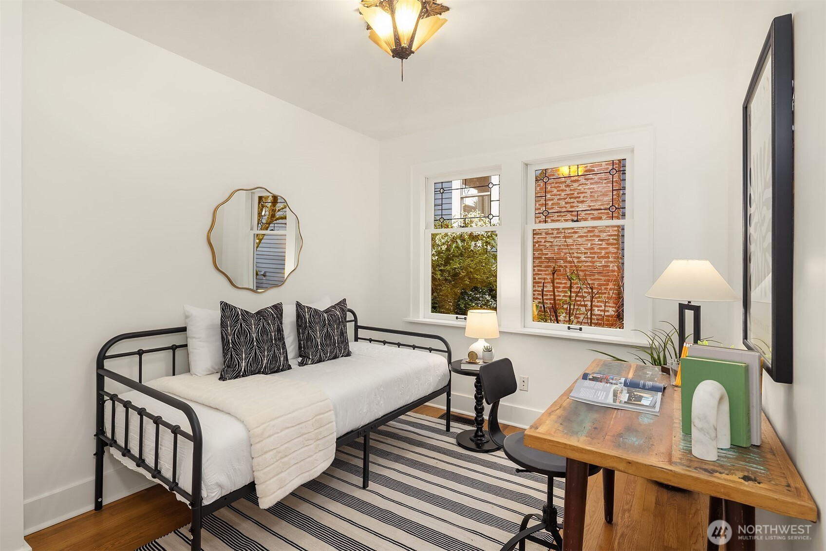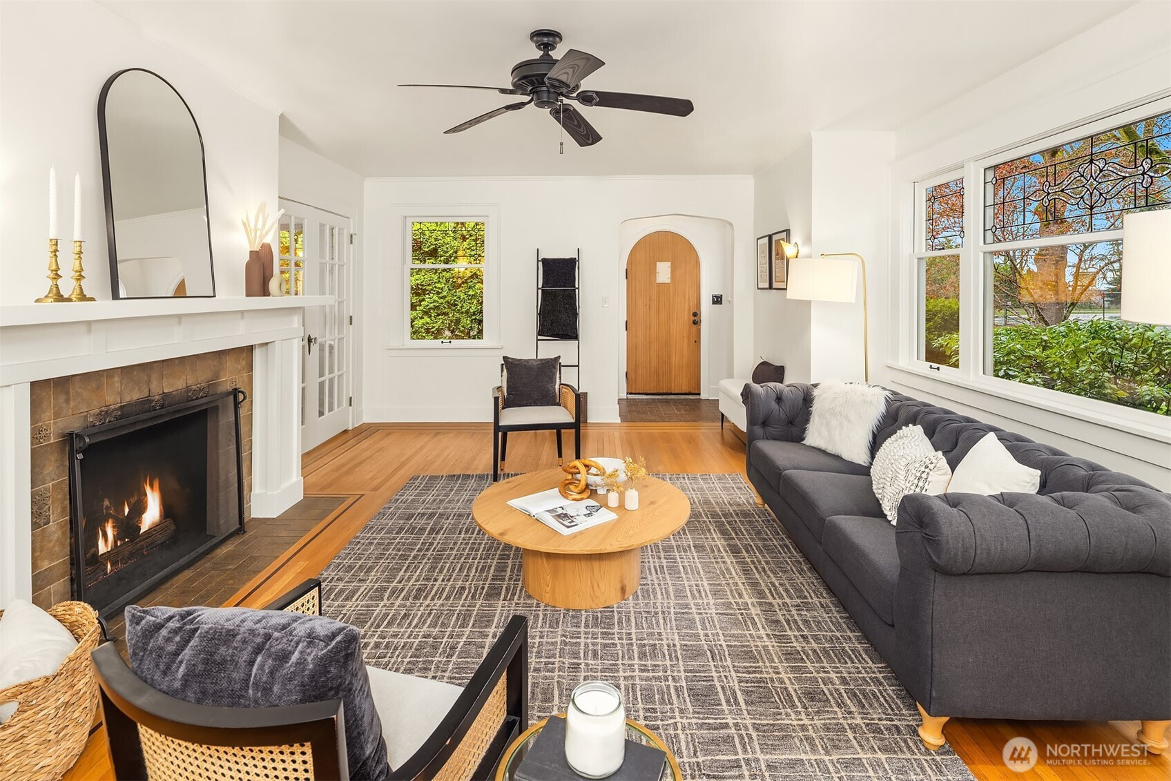 With a deep and meaningful history, this home is a story unto itself. Built for an attorney and opera singer, then passed along to the next generation when the time came, then to the current owner in 2007. Fall in love with soaring ceilings, sunken front garden, carefully procured light fixtures and restored built-ins, JAS redesigned kitchen and octagon shaped dining room. Western sunlight sparkles through stained glass windows as you read on a cozy sofa by a crackling wood fire. Variegated maple trees provide canopy, privacy, and a lush focal point from the west, while the back portion of the lot has space for gardening and a fabulous deck for grilling and recreating. The lower level offers income potential as a spacious, bright, two bedroom / one bathroom apartment, but it also easily incorporates into the core unit as a family room, office, guest room, etc. DO NOT miss the attic; one ascent of the ladder and you’ll be fantasizing about what it could become. The detached garage is the ideal hobby space with a dedicated electrical panel (220V) and offers off-street parking, while the loft above is waiting for you to give it a new identity. Beyond the utterly charismatic house and glorious grounds, you’ll be treated to one of most charming, quietly bustling neighborhoods in Seattle, with Mio Posto, Met Market, Bryant Park, U-Village, Bryant Elementary and dozens of other sweet destinations at your fingertips.