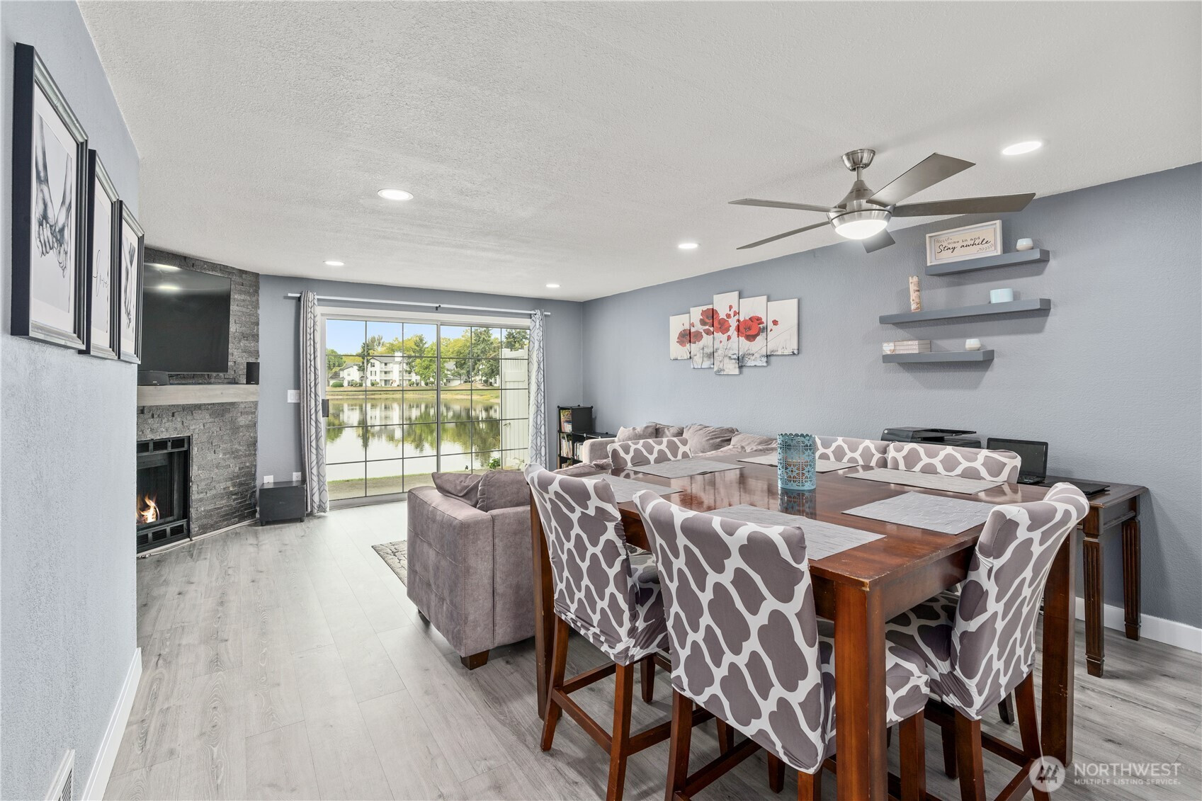 Back on Market Buyers got cold feet no fault of Sellers. Rare available Lakes community unit on lakeside with one of the best lake views. The home has been completely updated, control all the newer Samsung appliances via smart phone.The touch sensitive lighting throughout the home can set the mood. You will love the Primary Bedrooms vaulted ceiling with stunning views of the lake below.The primary bath has a beautiful walk-in shower, heated mirror with a bluetooth connected ceiling fan to play your favorite tunes while showering.The 2nd Bedroom is also very spacious with vaulted ceilings and updated bath. Sit on the patio relax watching eagles fish and wild life such as otter swim. Home is 5 minutes away from I-5 and 167 great for commuters.New electrical panel installed 3/8/2026 HOA to repair drywall prior to closing. Hurry on out!