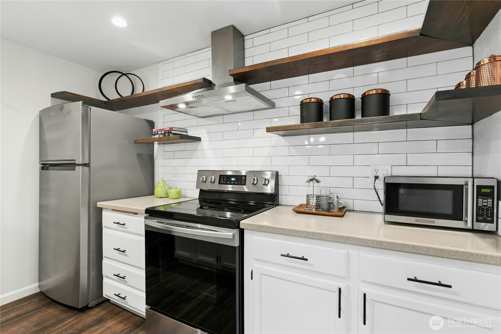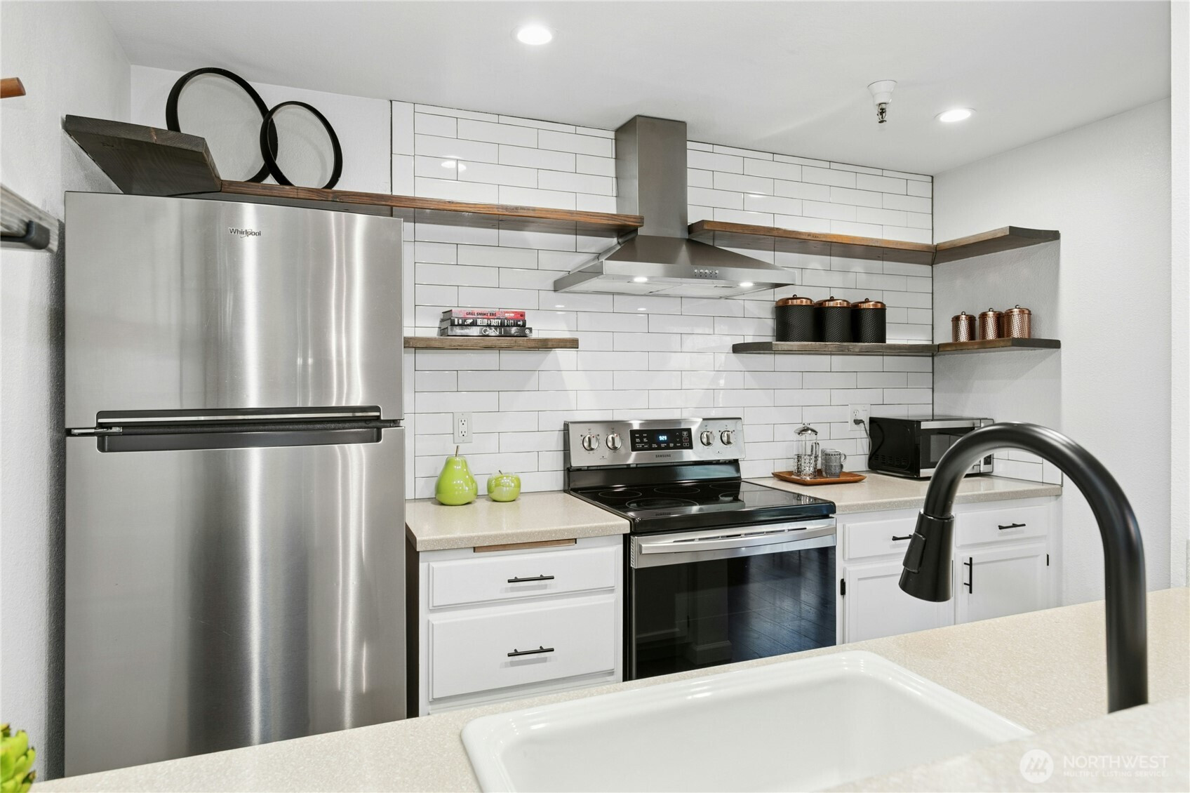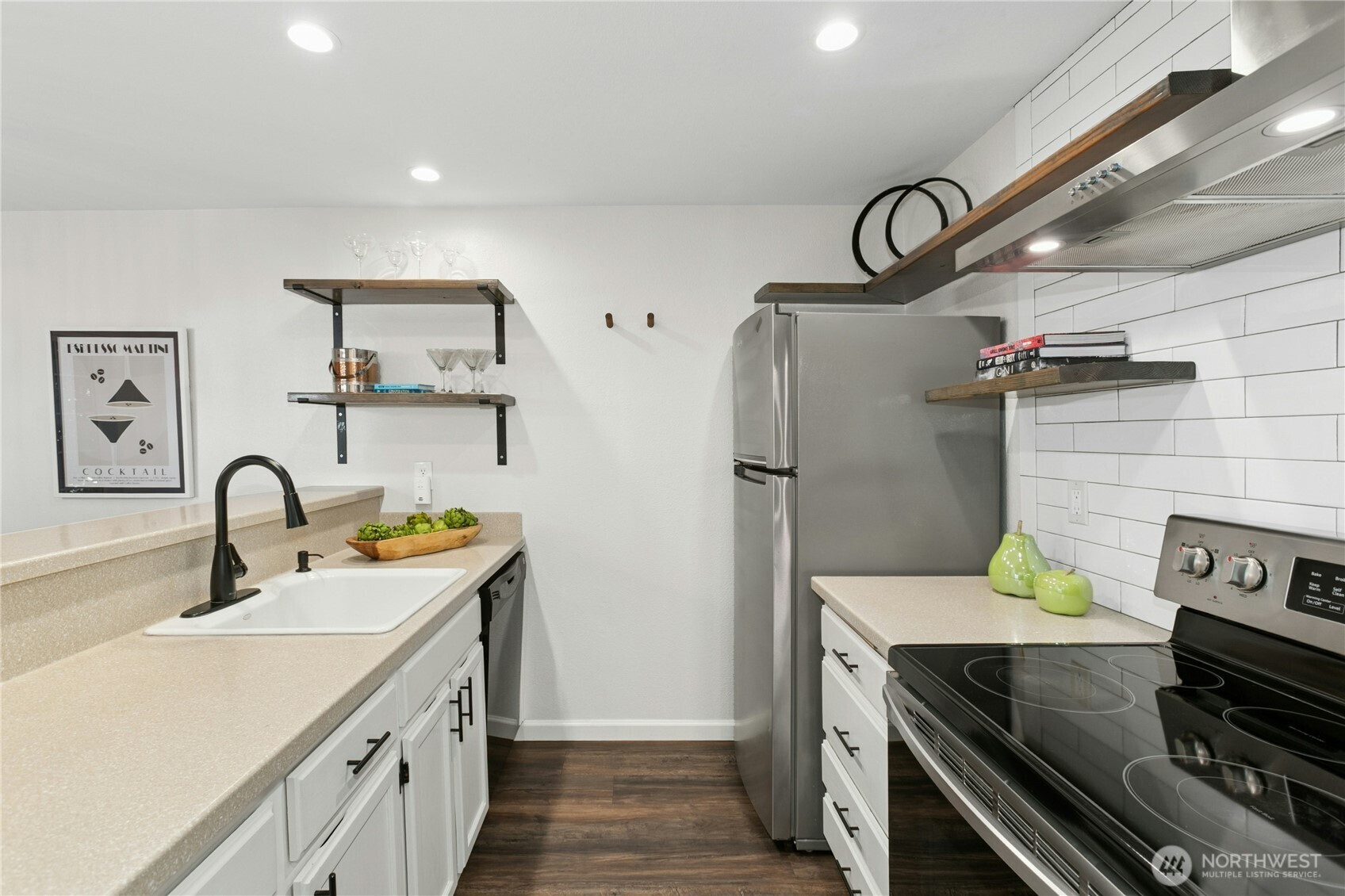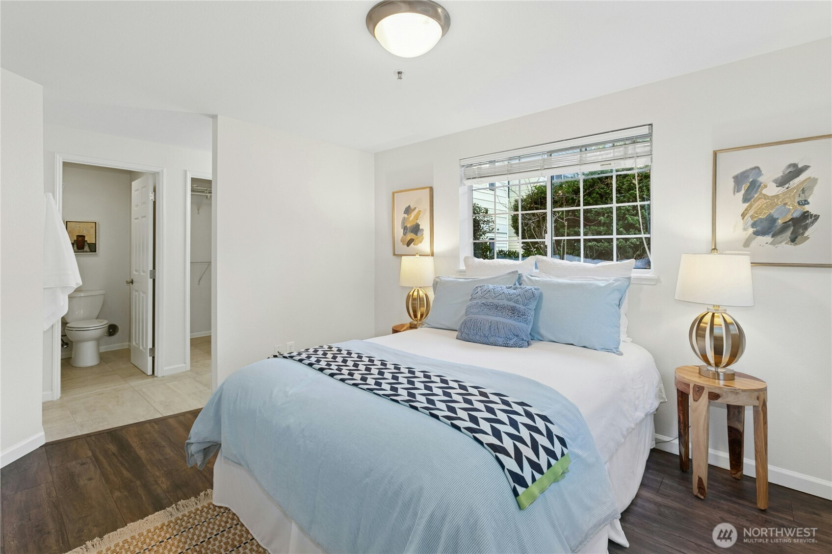 Beautifully updated, level living calls from whisper-quiet location within Issaquah Crown...Supremely walkable to the best eateries, shopping, theatre and trails around! This move-on-in-ready condominium home is picture perfect thanks to on-point durable flooring, soft designer hues, solid surfaces, sparkling appliances and sleek fixtures throughout with just a nod to soft contemporary. Wood burning fireplace anchors the large-scale living room; Owner's suite with huge walk-in and thoughtfully imagined en suite; Chef's center with uber-cool tile wall & floating shelves; A guest room large enough to serve double-duty as in-home work space; Full guest bathroom; Storage at every turn; Laundry center; Mechanized shades in the gathering & dining rooms; Greenbelt-protected viewing lanai; Updated (and energy efficient!) heating units...and so much more. Well run Association with deep reserves, too. From here, your commute to prized schools, Bellevue and beyond is a total breeze. Welcome home!