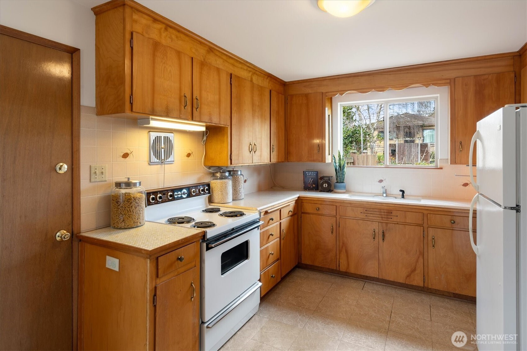 Solid 1959 home perched on a sunny corner lot in sought-after Sunset Hill. A spacious living and dining room welcome you in with warmth and natural light. The kitchen is delightfully kitschy and ready for your vision — the perfect canvas to reimagine and make your own. Upstairs, you’ll find two generously sized bedrooms and the sweetest vintage pink bath, full of charm. The lower level offers a large rec room, half bath, and flexible space for work, play, or guests. An attached garage provides excellent storage, plus abundant street parking for friends and gatherings. Outside, the sunny patio invites afternoon drinks and easy evenings. Come settle in and make it home.