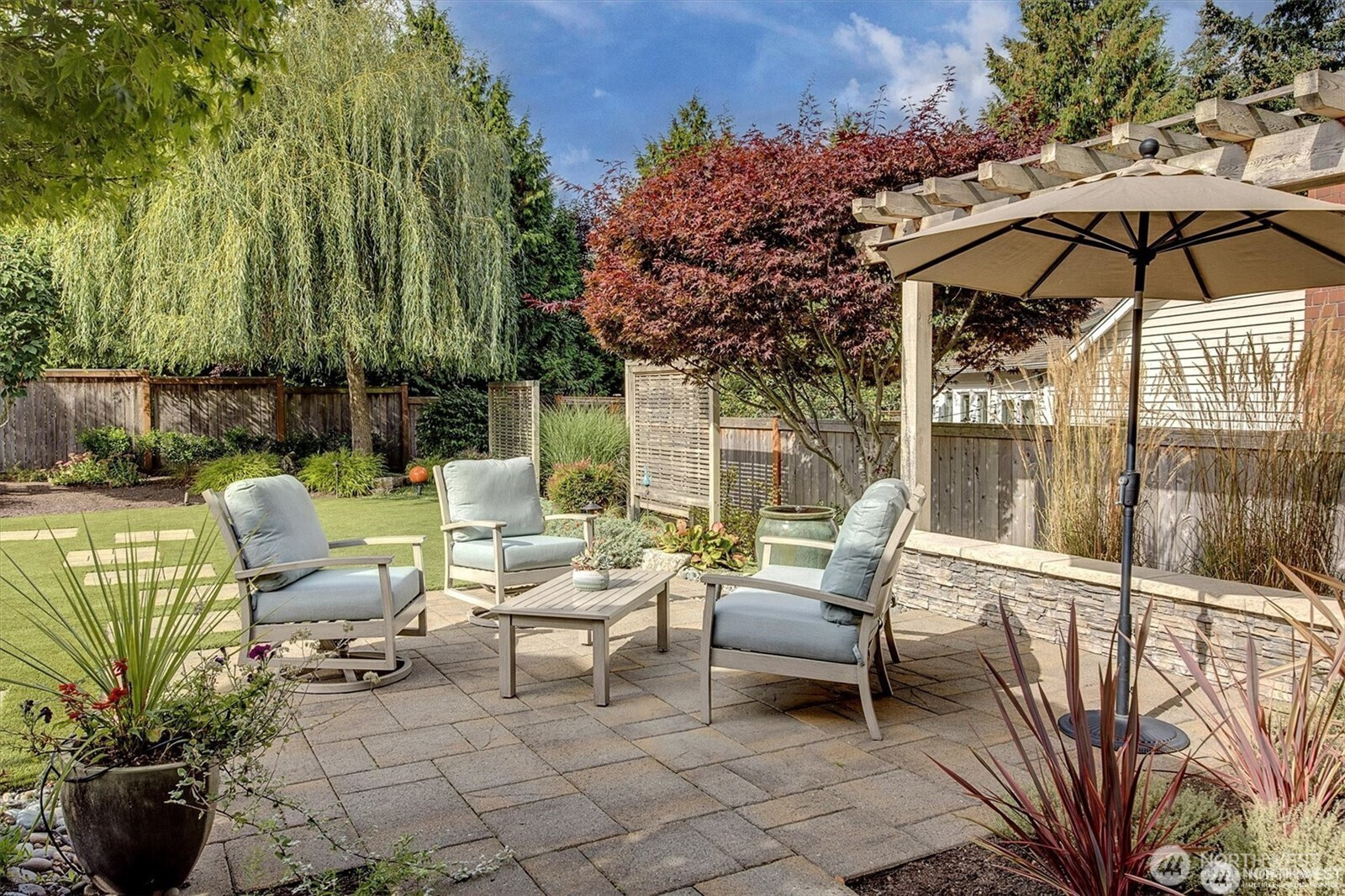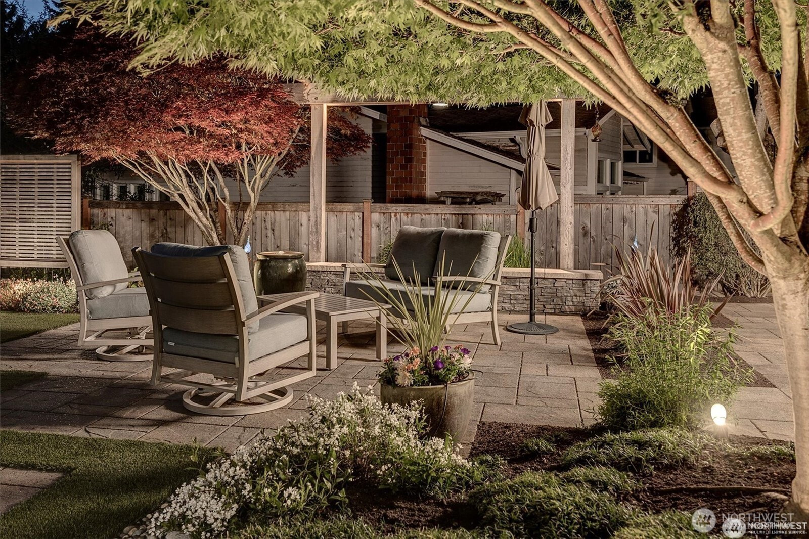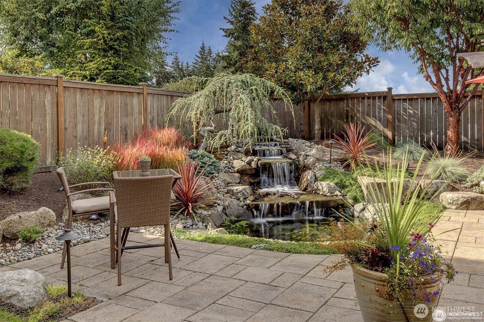 Beautifully remodeled Houghton home offers 2 levels of spacious living and a lush backyard paradise. Cherry hardwood floors/custom cabinetry, vaulted ceilings, large windows, high-end finishes & lighting. Main level: great room concept of living room & fireplace, dining room, large deck overlooking gardens, gourmet kitchen with granite, island, quality appliances. Primary with en suite, plus 2 bdrms & full bath. Lower level: family room & fireplace, covered patio, office, 4th bed, 3/4 bath, laundry, and huge storage room. Private fenced back yard ideal for entertaining: pond with waterfall, seating areas, fire pit, pergolas, irrigation & lighting. 2 car garage. Near Metropolitan Market, Carillon Pt., Google, quality schools, I-405/Hwy 520.