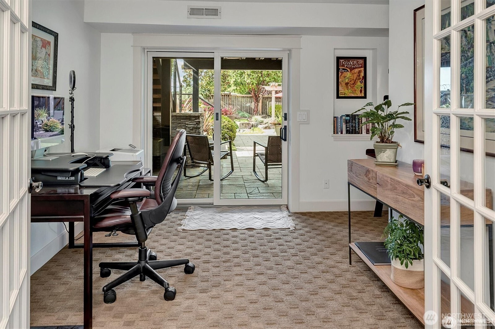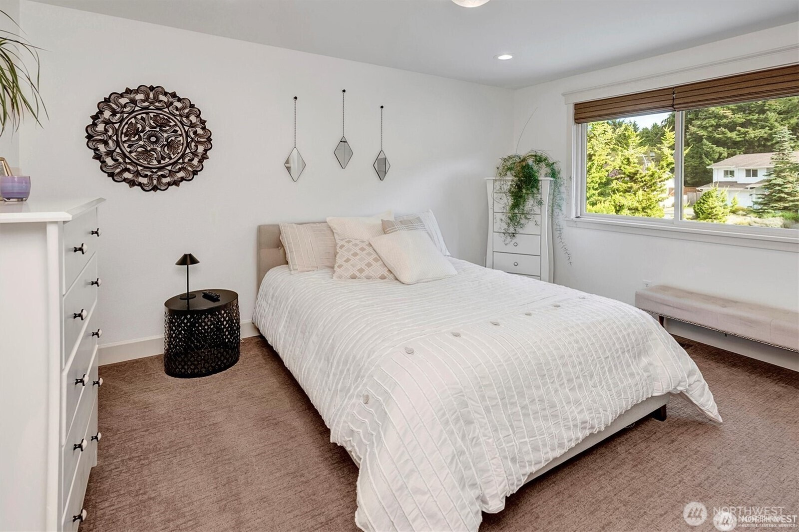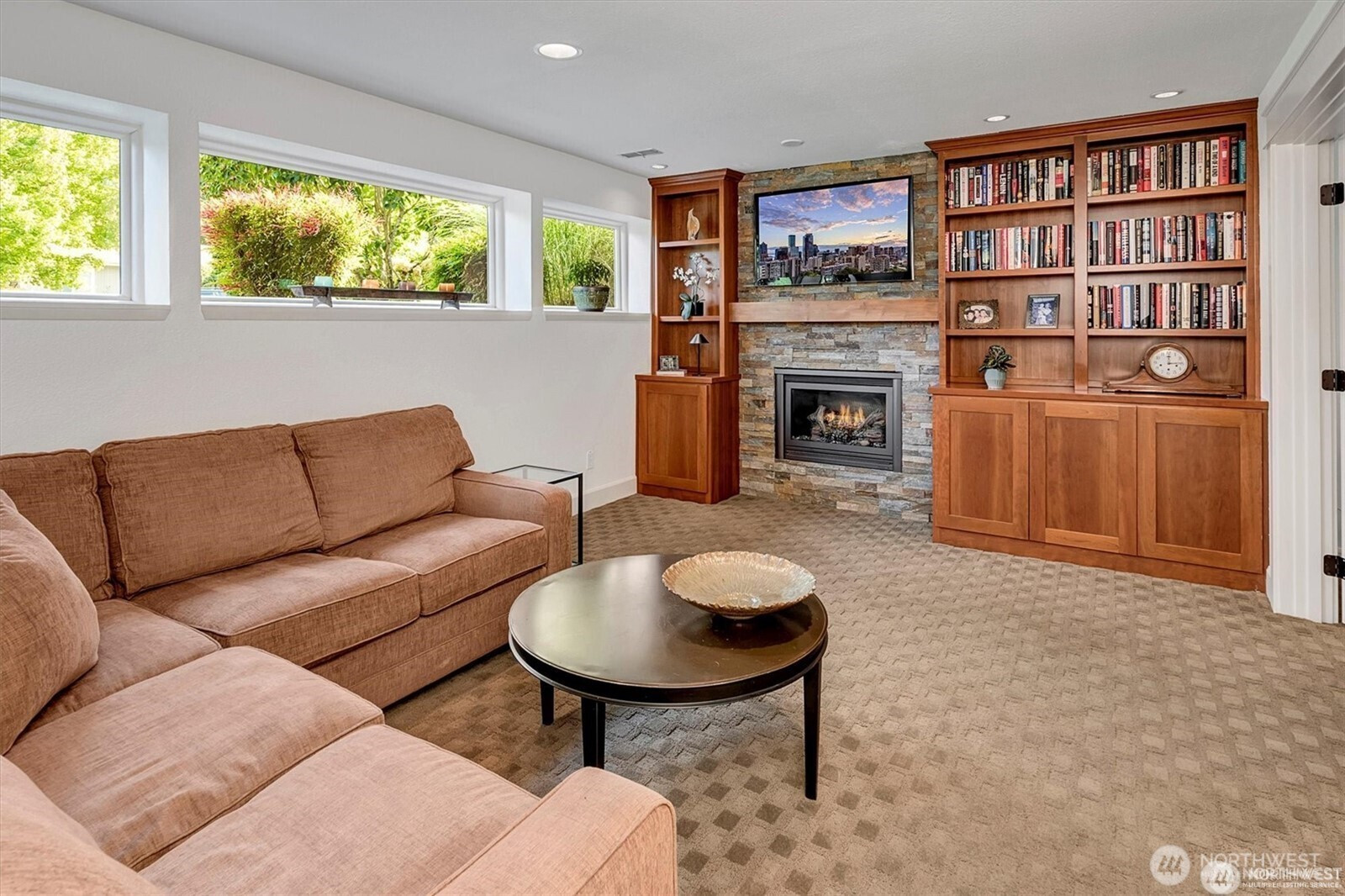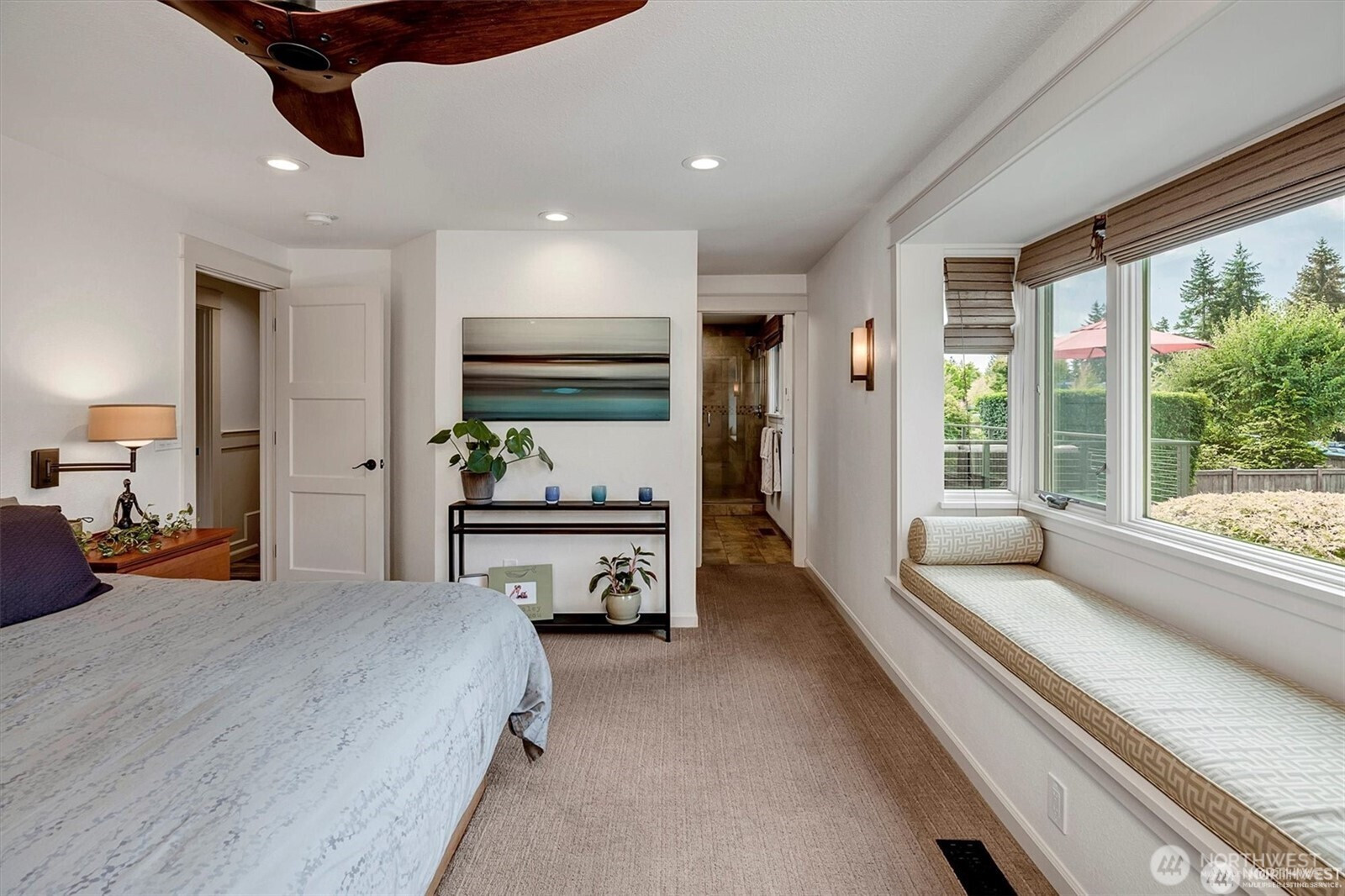 Beautifully remodeled Houghton home offers 2 levels of spacious living and a lush backyard paradise. Cherry hardwood floors/custom cabinetry, vaulted ceilings, large windows, high-end finishes & lighting. Main level: great room concept of living room & fireplace, dining room, large deck overlooking gardens, gourmet kitchen with granite, island, quality appliances. Primary with en suite, plus 2 bdrms & full bath. Lower level: family room & fireplace, covered patio, office, 4th bed, 3/4 bath, laundry, and huge storage room. Private fenced back yard ideal for entertaining: pond with waterfall, seating areas, fire pit, pergolas, irrigation & lighting. 2 car garage. Near Metropolitan Market, Carillon Pt., Google, quality schools, I-405/Hwy 520.
