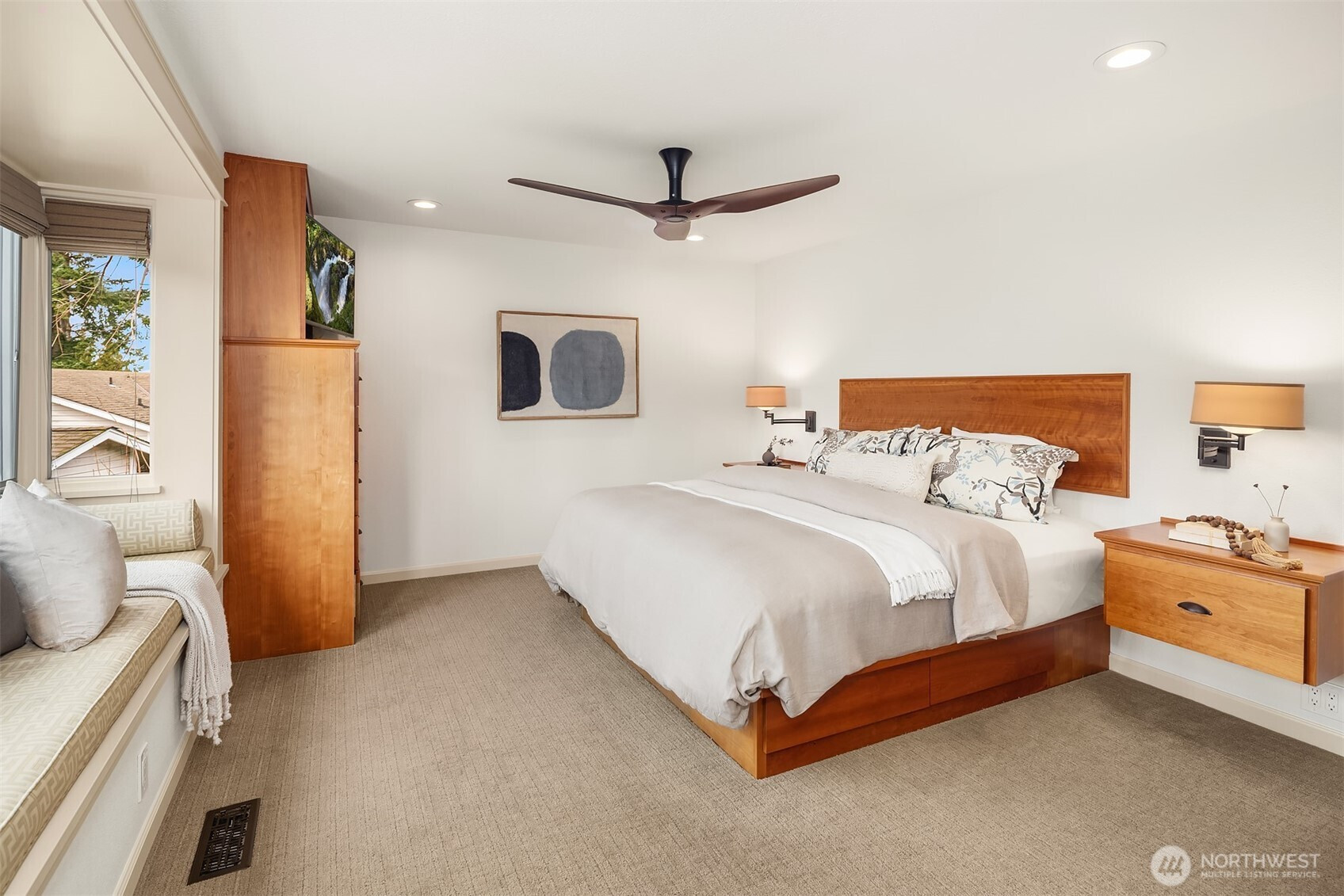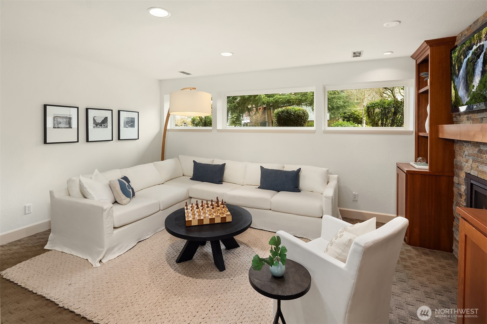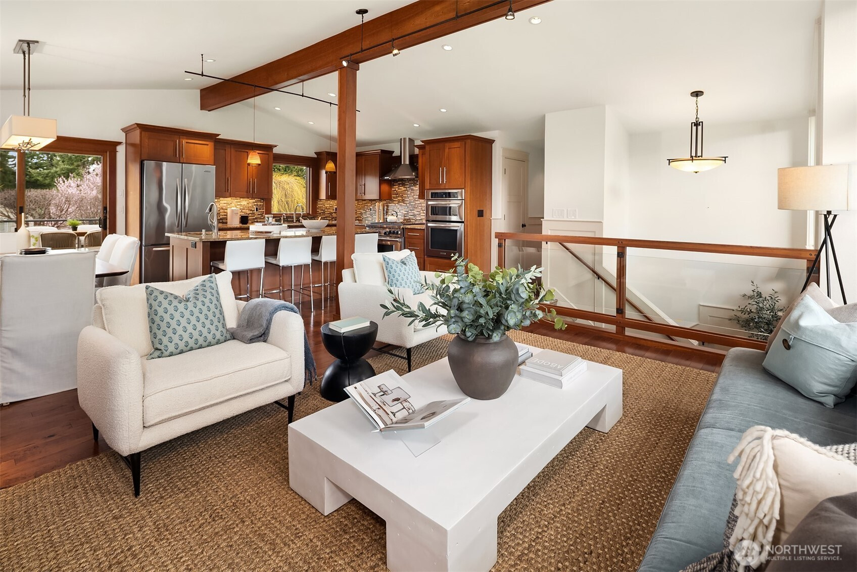 Located in Kirkland’s sought-after Houghton neighborhood, this beautifully remodeled home blends quality craftsmanship w/ warm, livable design across two levels. Custom Andersen windows bring in abundant natural light. Cherry hardwood floors, vaulted ceilings, designer lighting, & thoughtful millwork elevate the interiors. A welcoming great room w/ fireplace flows into the remodeled kitchen featuring custom cherry cabinetry, granite countertops, & top-of-the-line appliances including a 6-burner Wolf range & in-wall double ovens. A generous island provides ample storage. The dining area opens to an expansive deck overlooking the lush backyard, creating seamless indoor-feel. The primary suite offers heated tile floors, walk-in shower, & custom walk-in closet w/ built-in storage. Two additional bedrooms & a full bath complete the upper level. The lower level offers flexible living with family room and fireplace, office with French doors, fourth bedroom, a bath with heated floors, and laundry. Ideal for guests, extended living, or potential mother-in-law use. Outside, the backyard unfolds as a private garden retreat w/ waterfall pond, fire pit, stacked stone seating areas, cedar pergolas, turf lawn, & landscaped grounds w/ irrigation and lighting. Backyard may offer potential for a future DADU under HB1110 (buyer to verify). Minutes to Cross Kirkland Corridor, Carillon Point, Google, downtown Kirkland, waterfront, top-rated Lake Washington schools, & access to I-405 and 520.